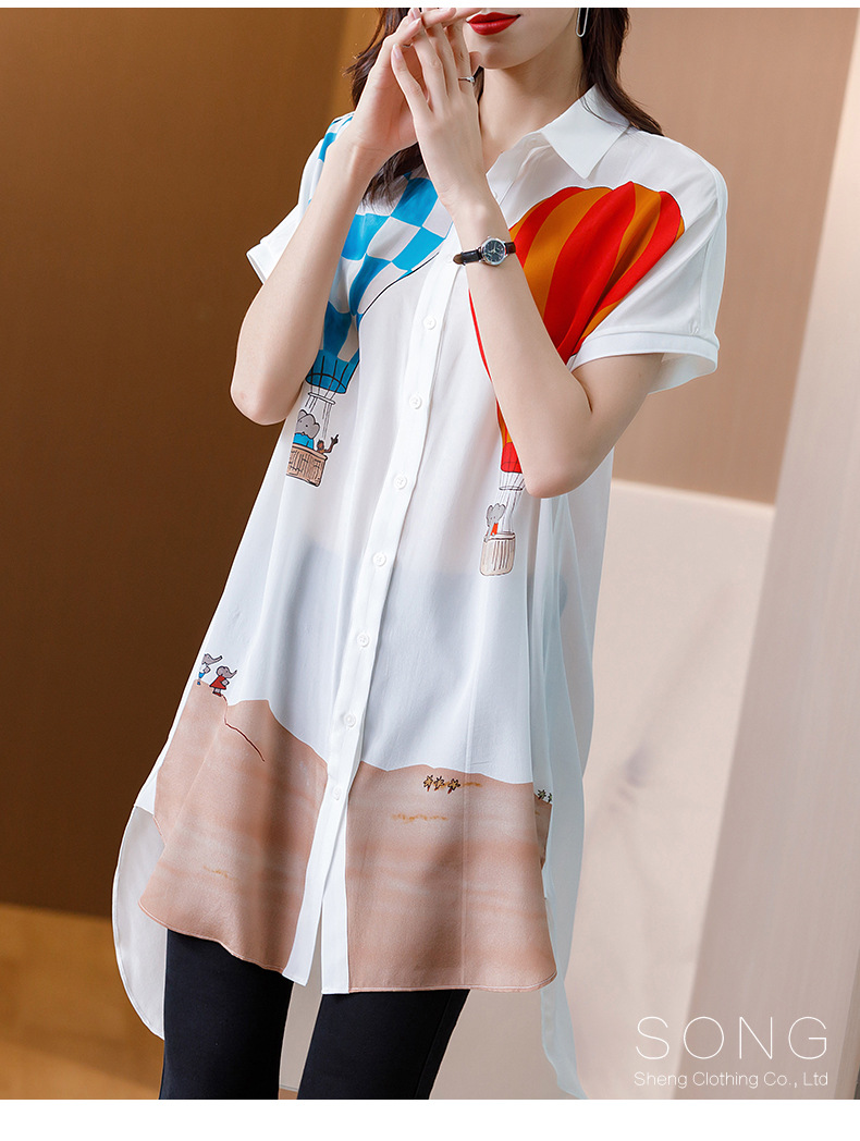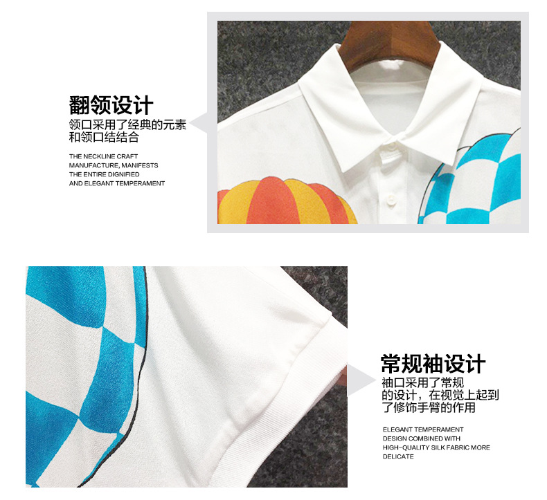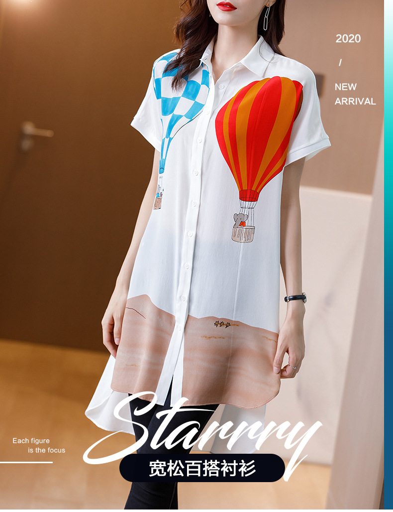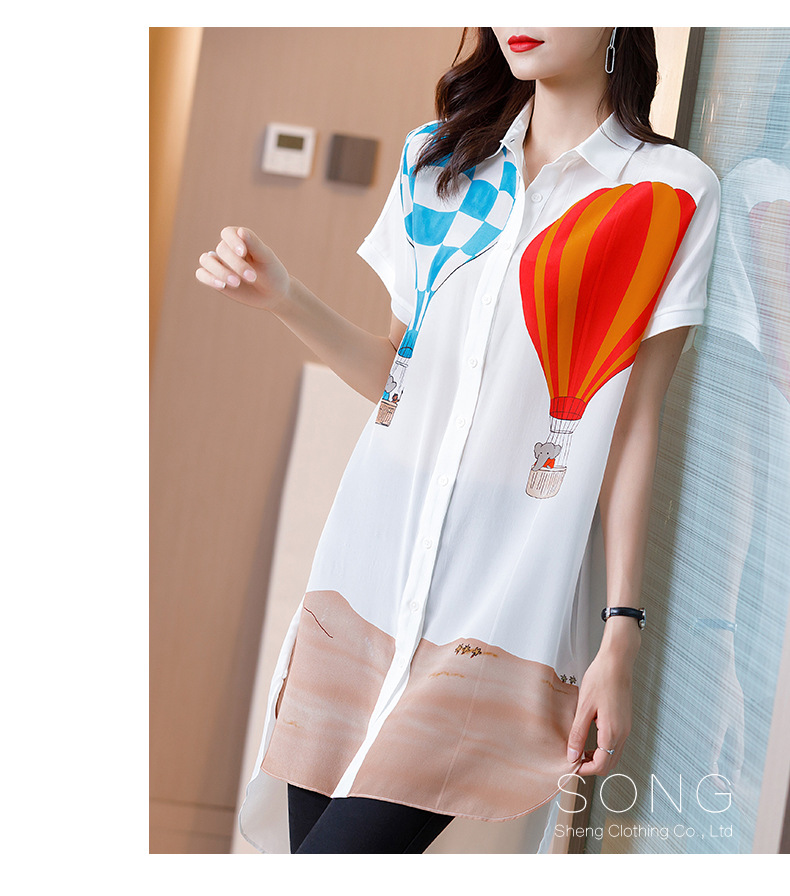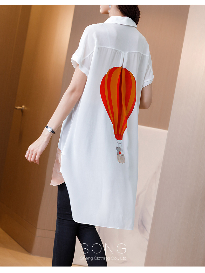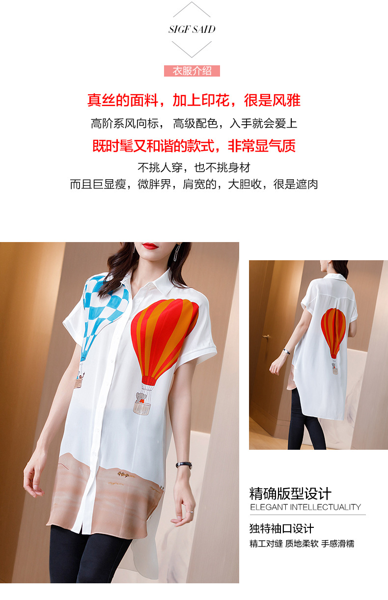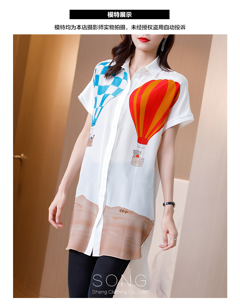 SS-06-2202真丝 上衣短袖气球印花新款宽松半袖衬衫