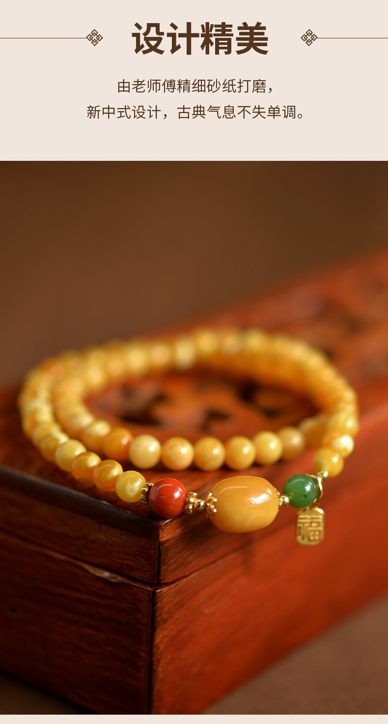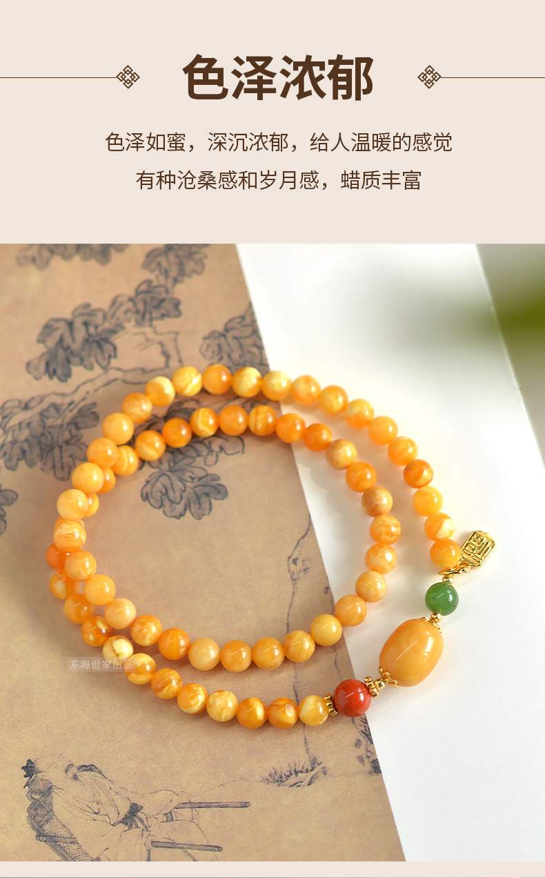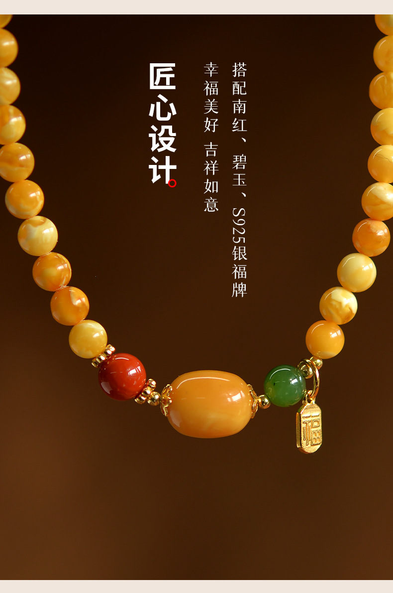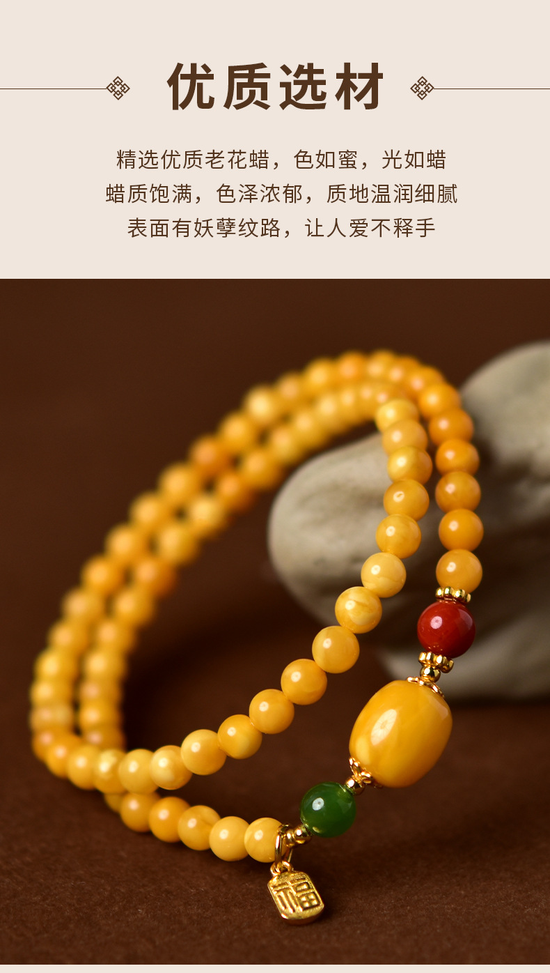 丁摩 天然蜜蜡手串女男老花蜡水晶玛瑙翡翠玉石散珠子吊坠碧玉南红手链5ZF-1125