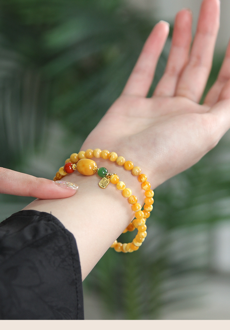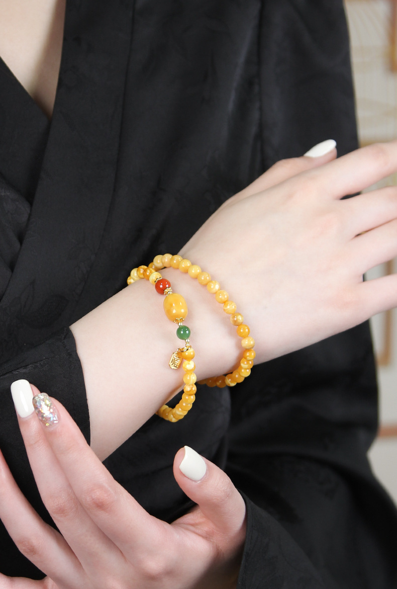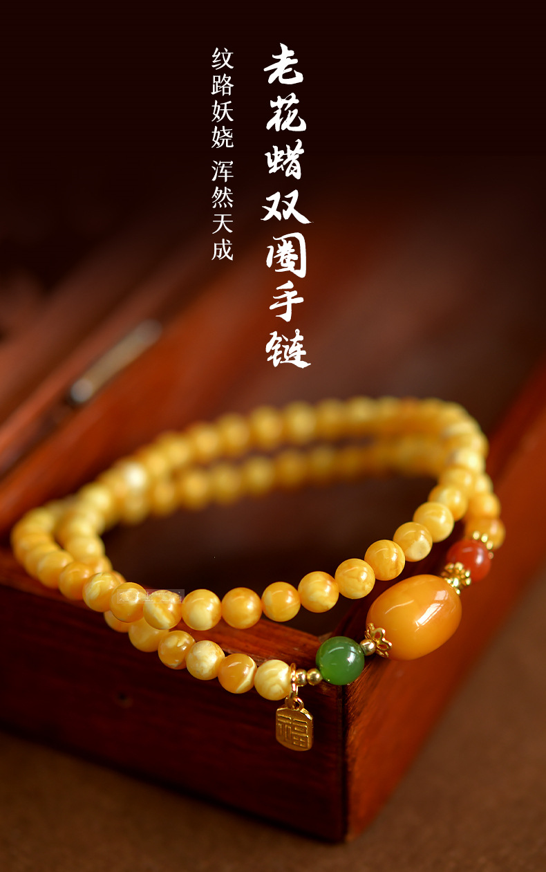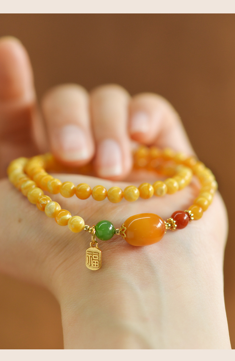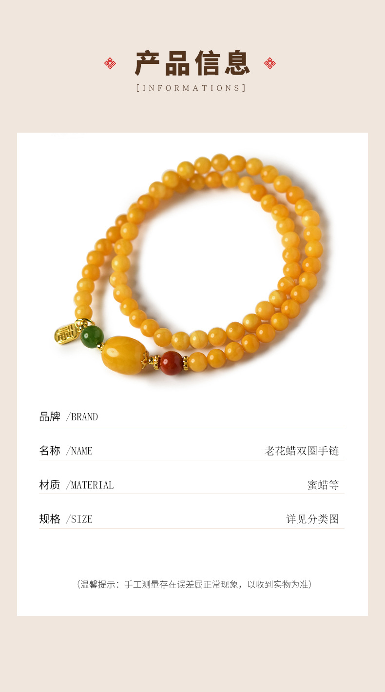 丁摩 天然蜜蜡手串女男老花蜡水晶玛瑙翡翠玉石散珠子吊坠碧玉南红手链5ZF-1125
