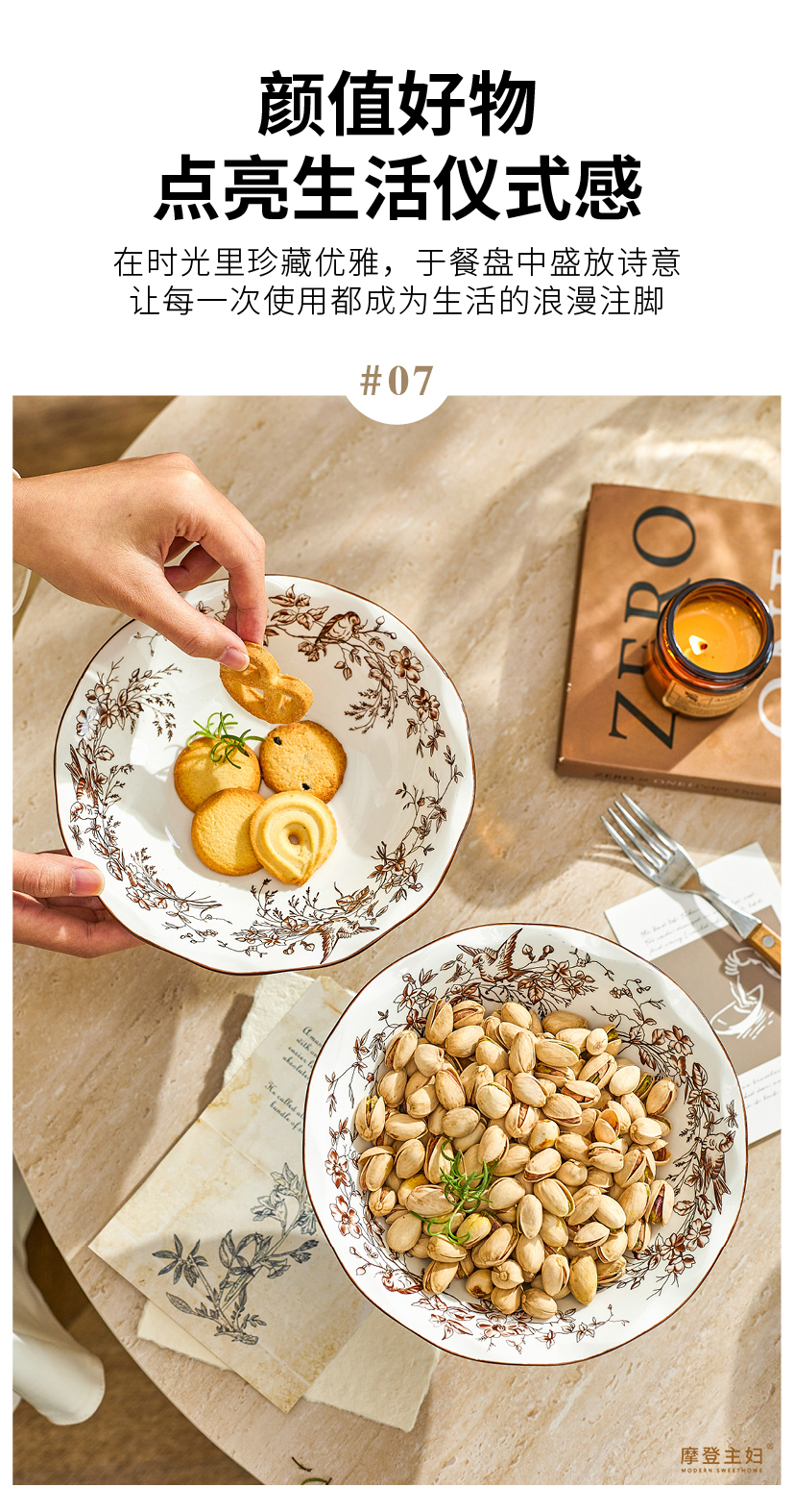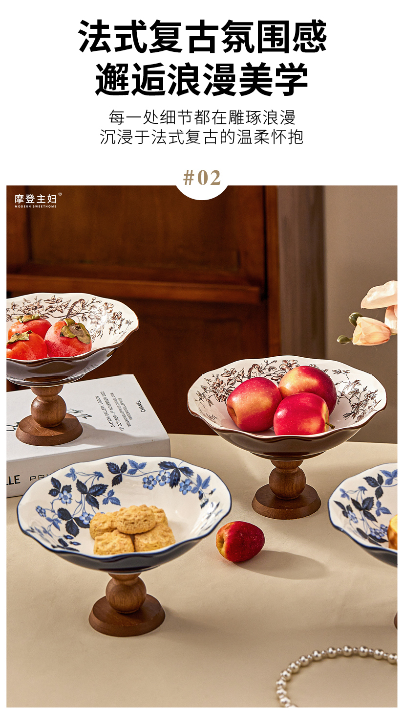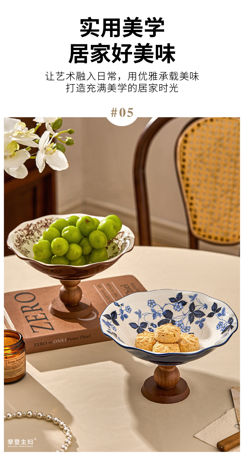 摩登主妇中古风陶瓷水果盘客厅茶几家用2025新款高颜值干果点心盘