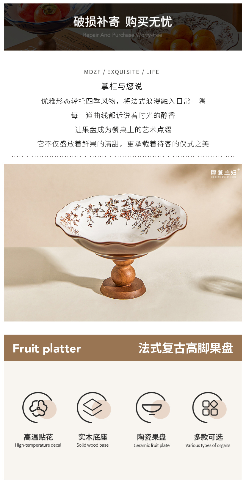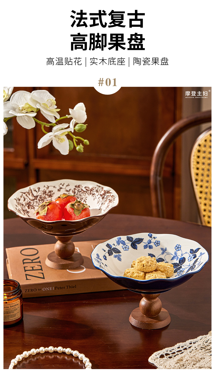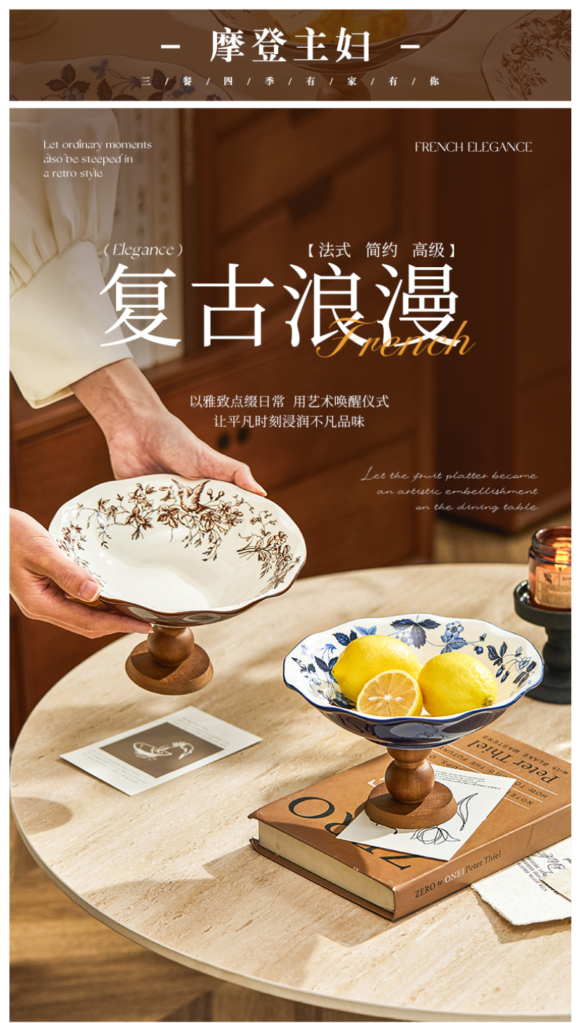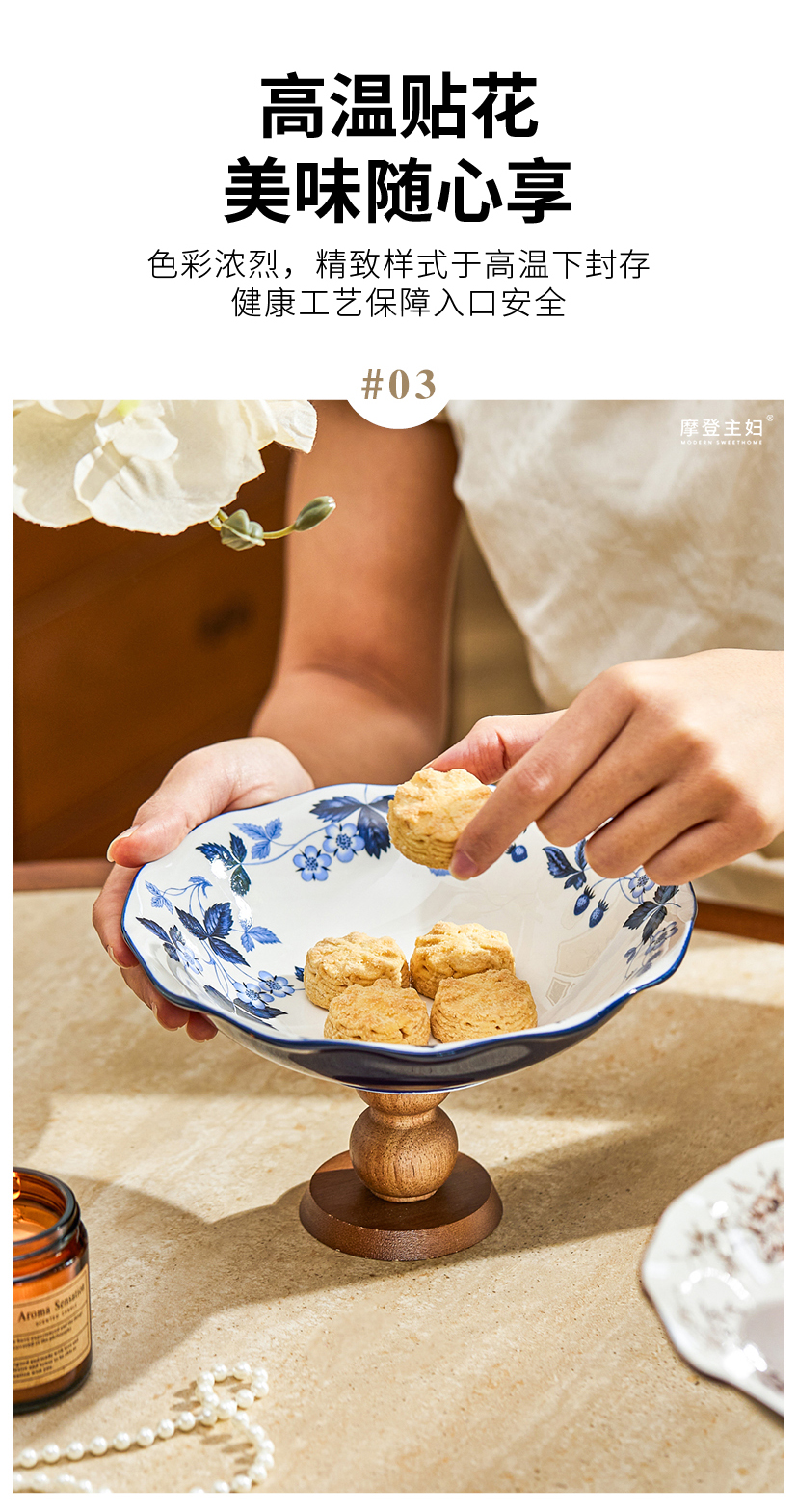 摩登主妇中古风陶瓷水果盘客厅茶几家用2025新款高颜值干果点心盘