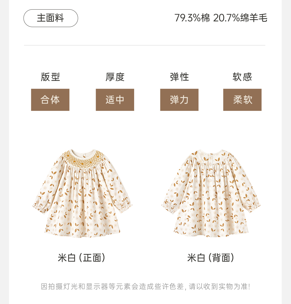 【高定系列】英氏女童连衣裙可爱公主碎花连衣裙新款羊毛裙