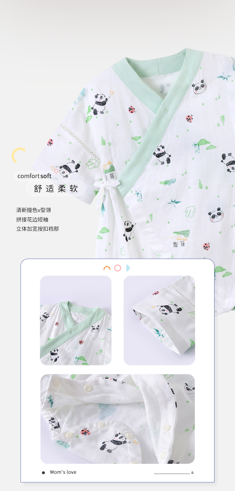 英氏男婴儿连体服男宝宝短袖哈衣绑带和尚服夏季款爬服 YZJNJ22008A