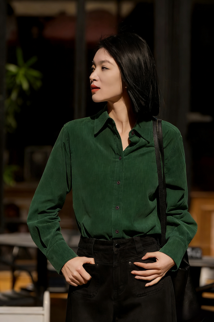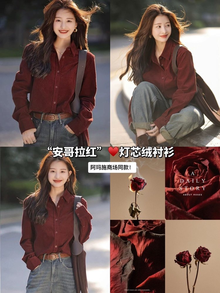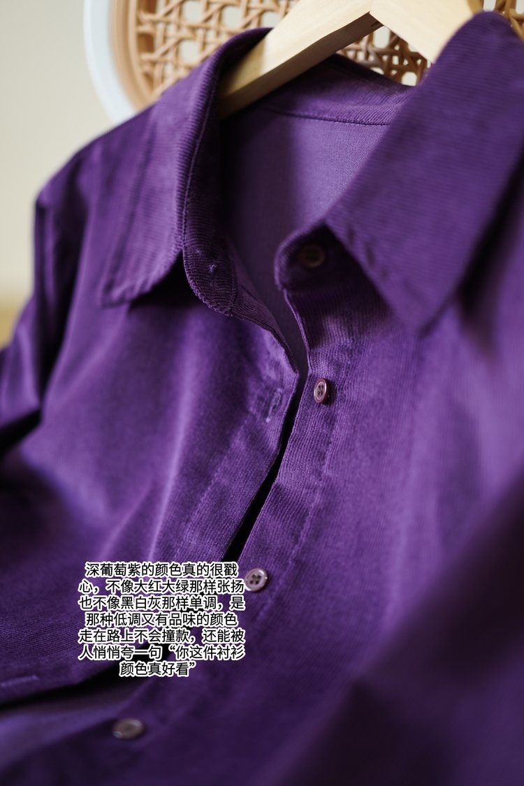 下单3-7天发货!【春季新款】LONGNVFAIR 灯芯绒全棉衬衫 三色可选;百分百全棉衬衫,显白一绝;灯芯绒面料软糯有质感;经典衬衫剪裁不挑身材,可单穿可叠穿