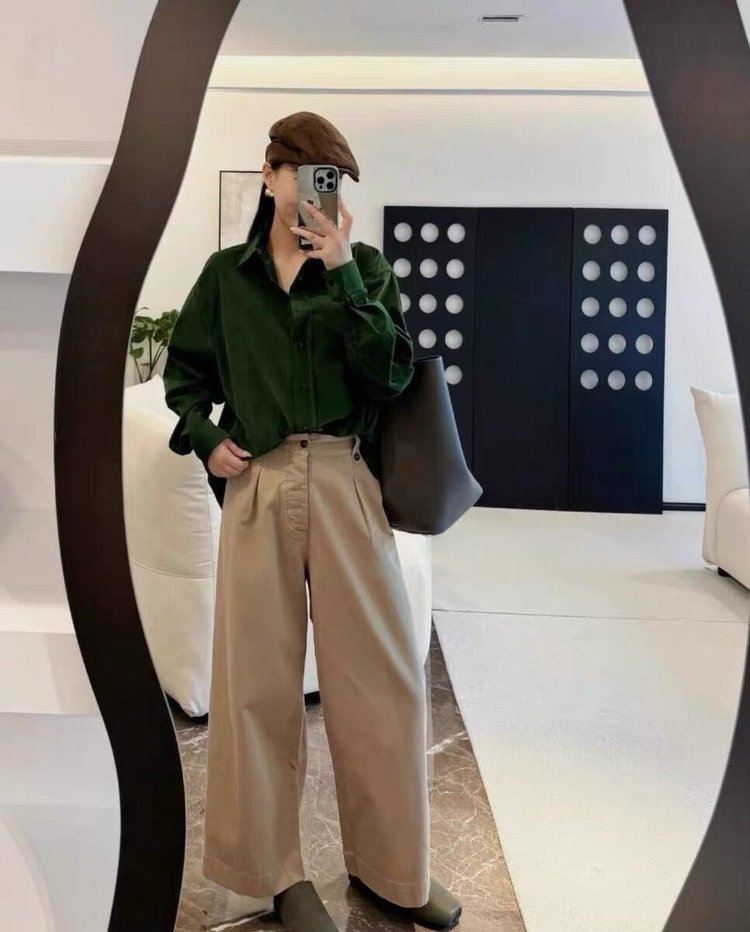 ✅苔藓绿低调显白,随便搭高领针织或T恤都很有层次感,春秋季节穿刚刚好~