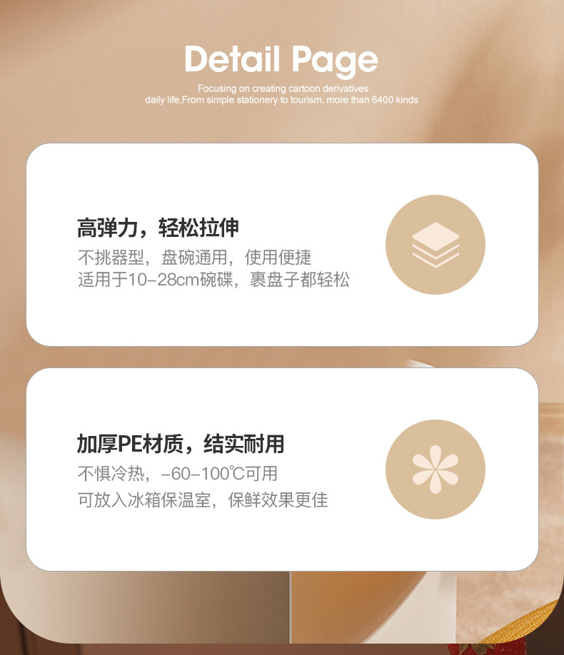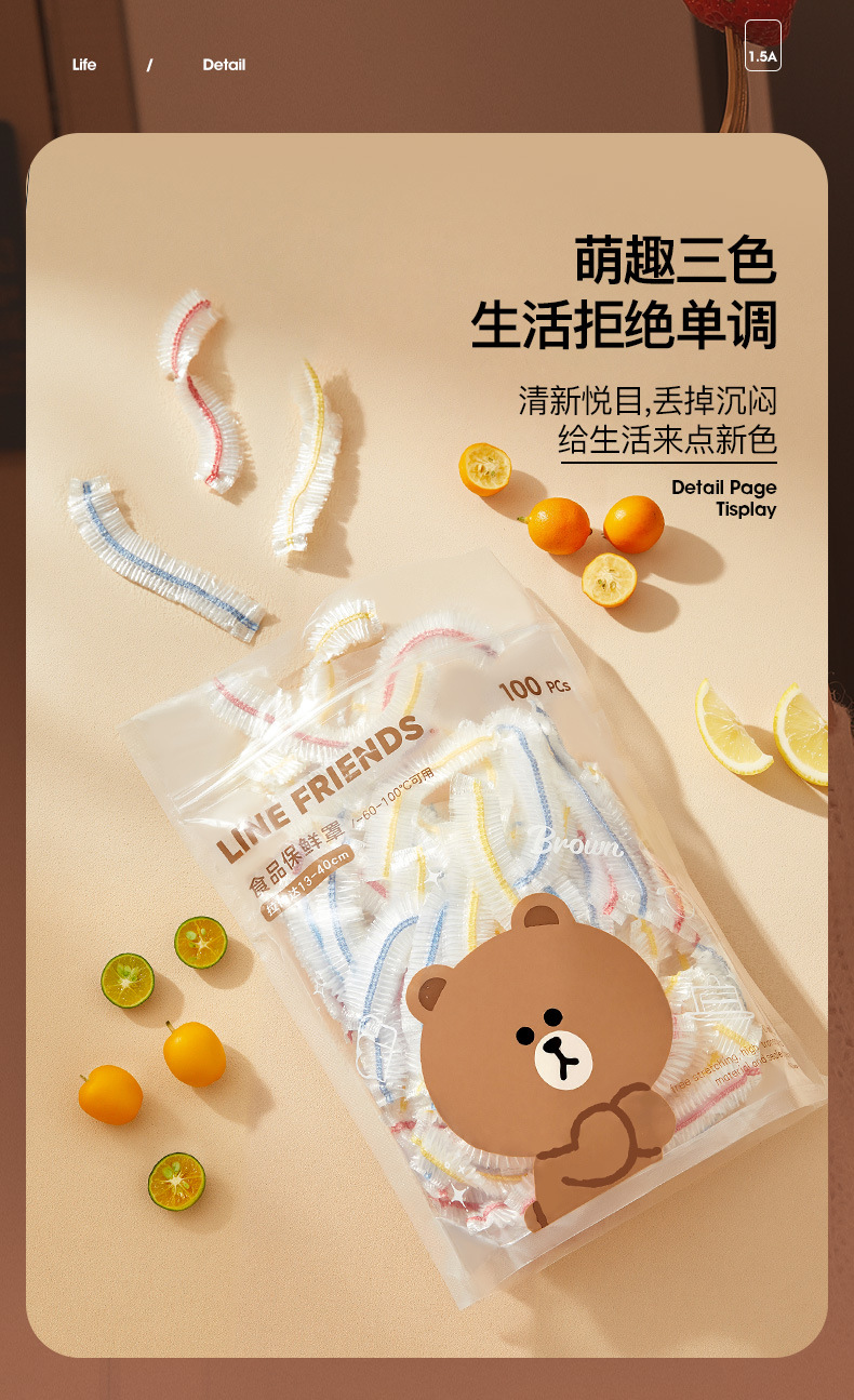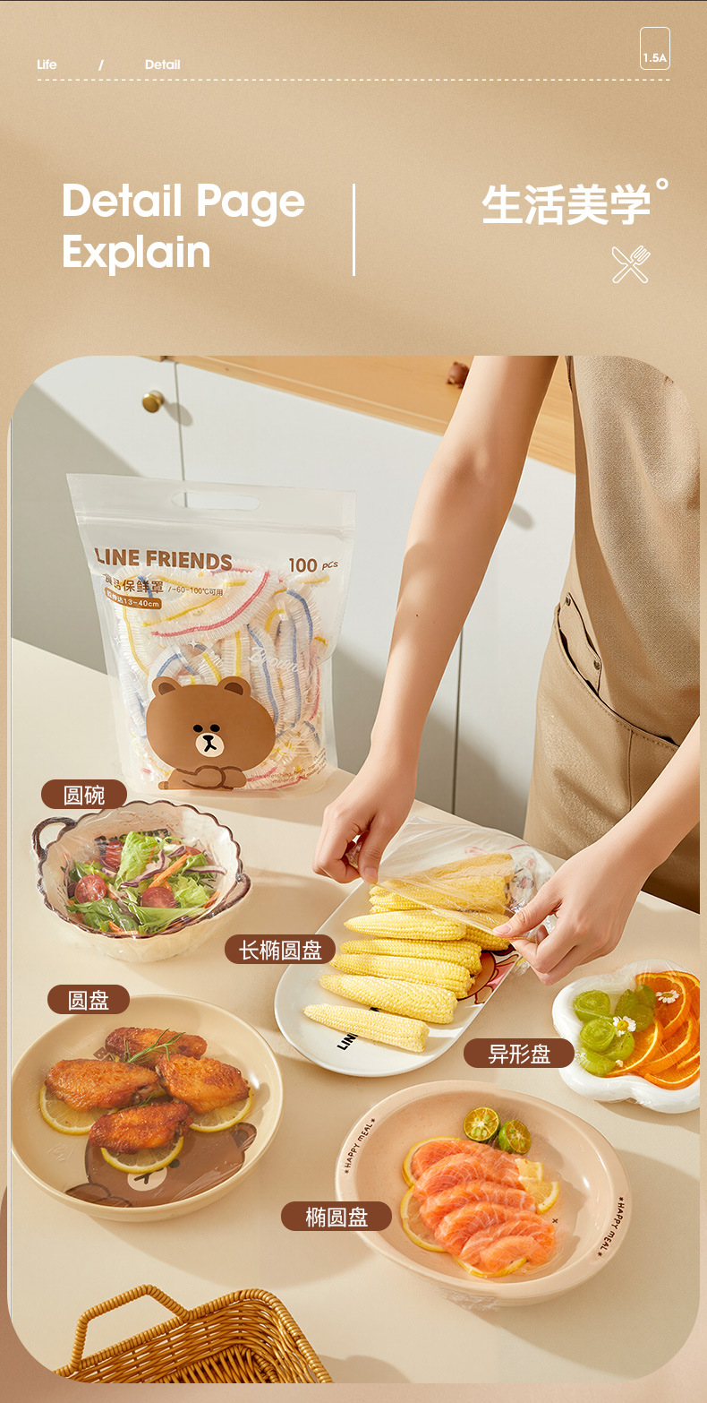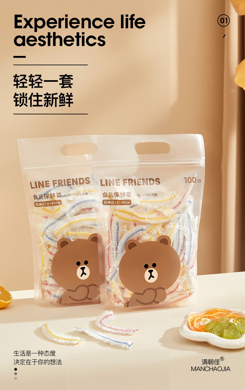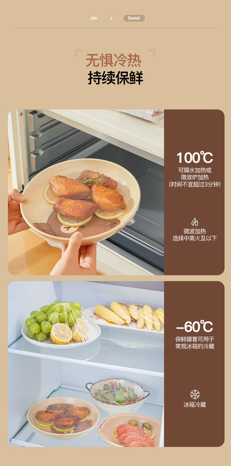 【轻轻一套,锁住新鲜~】布朗熊一次性保鲜膜套 食品级家用加厚 冰箱保鲜套 免撕防尘保鲜罩-QQ
