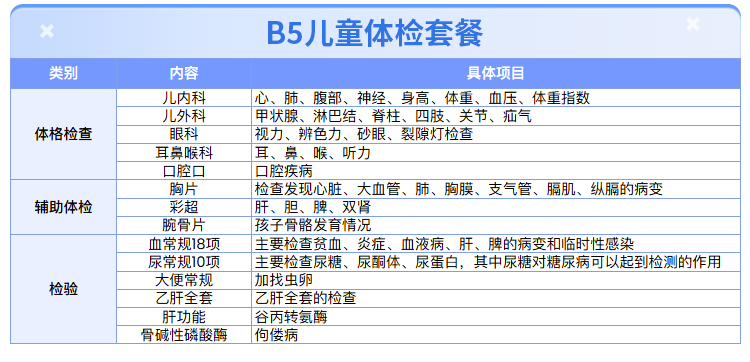 【儿童|精选实用】含胸/腕骨X片+四彩超+乙肝+肝功能+骨碱性磷酸酶 B5