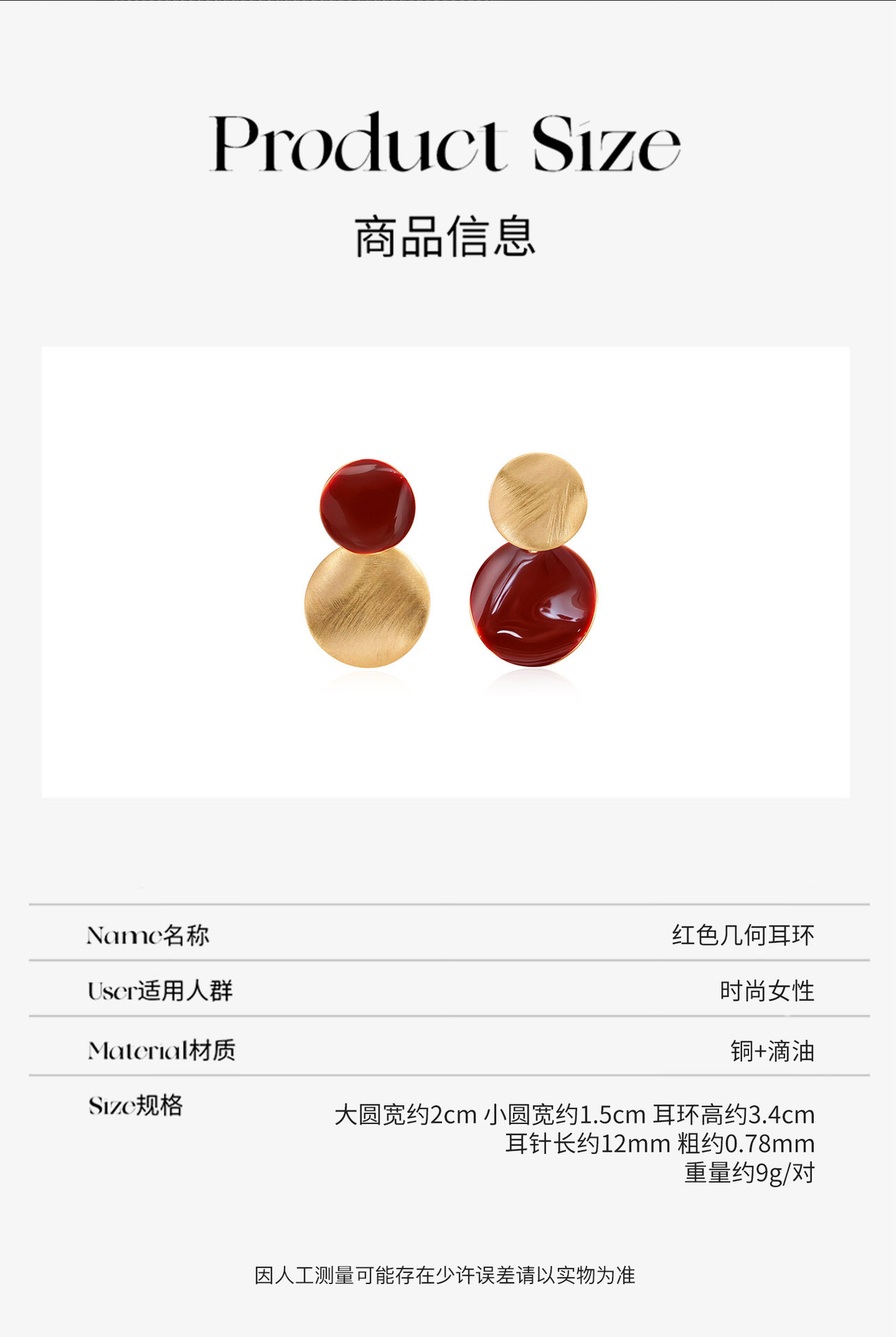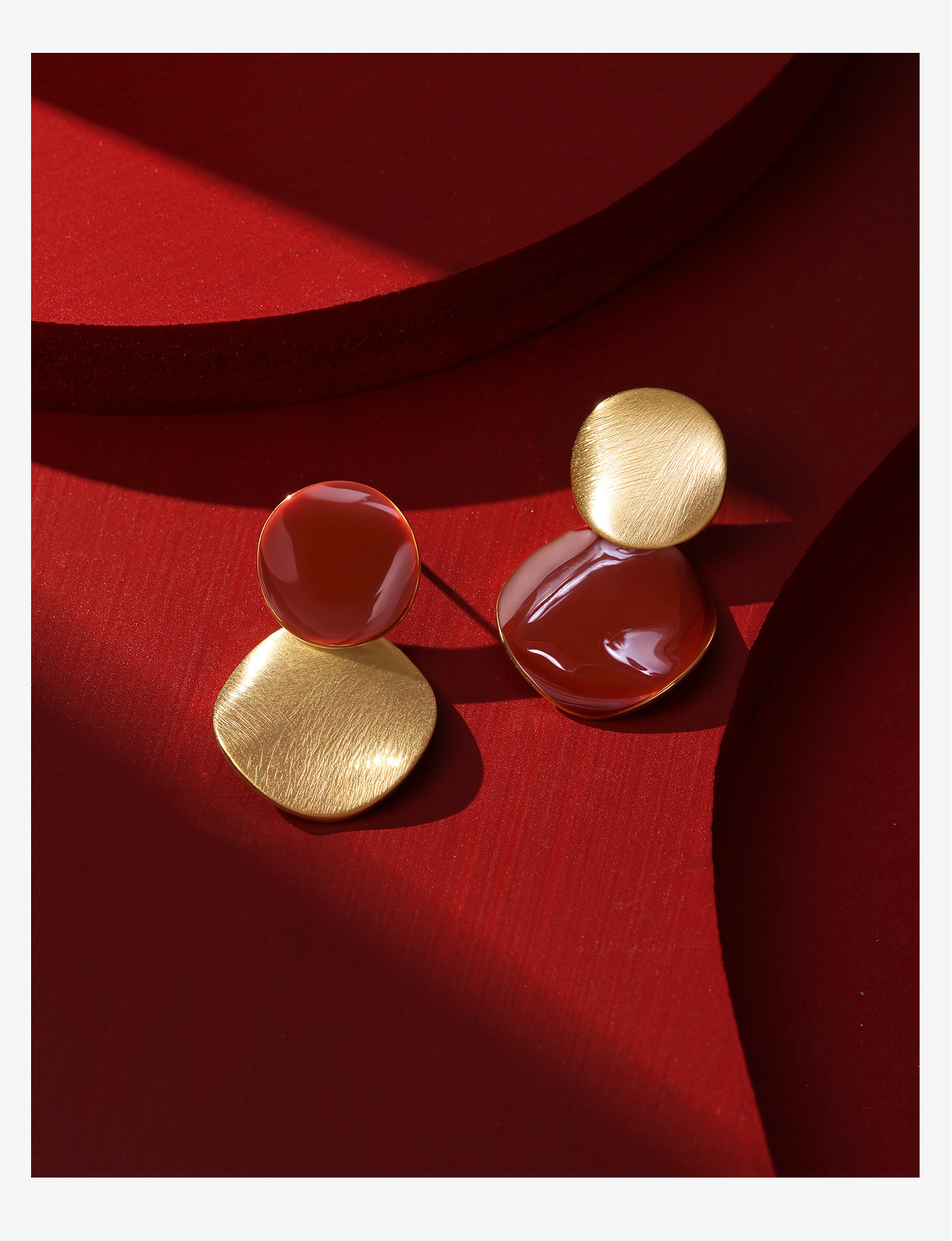 雀说 红色几何耳环轻奢小众高级感冷淡风不规则复古耳饰tfy8540e