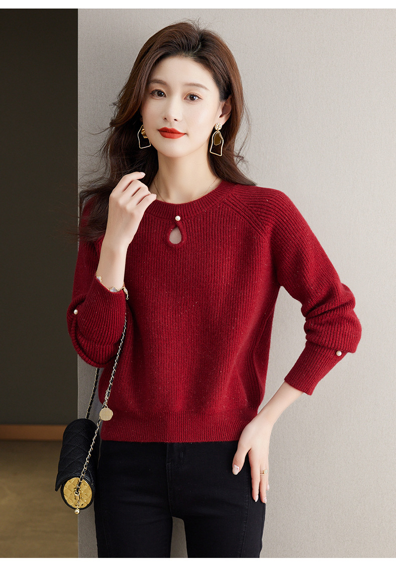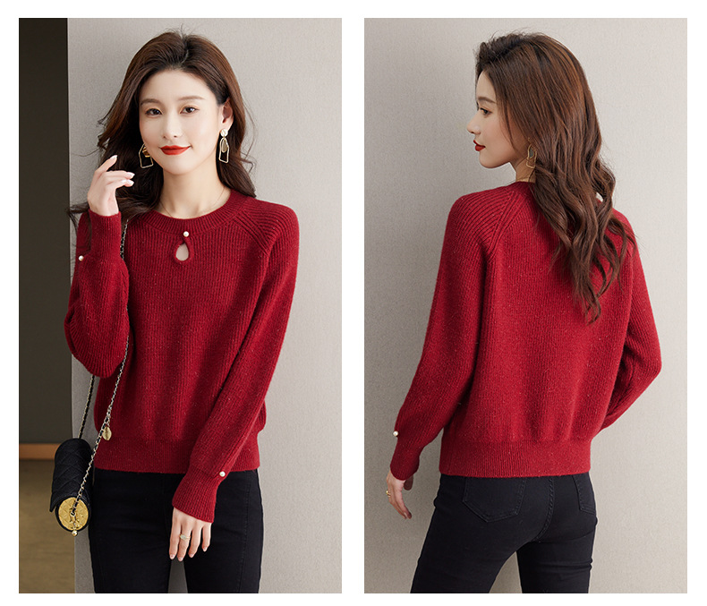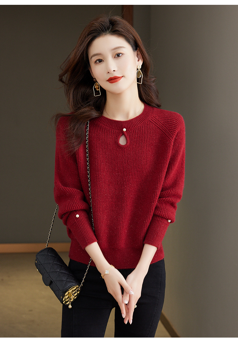 设计感短款毛衣小个子内搭高腰上衣红色针织打底衫CC-27-2395