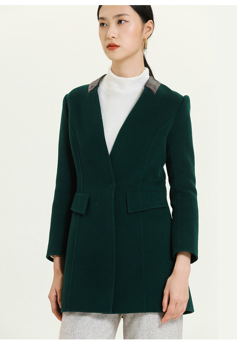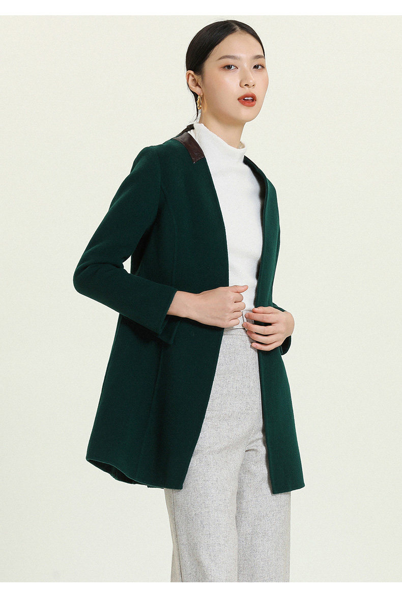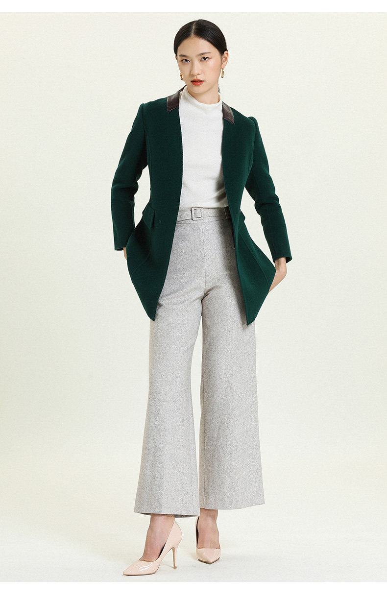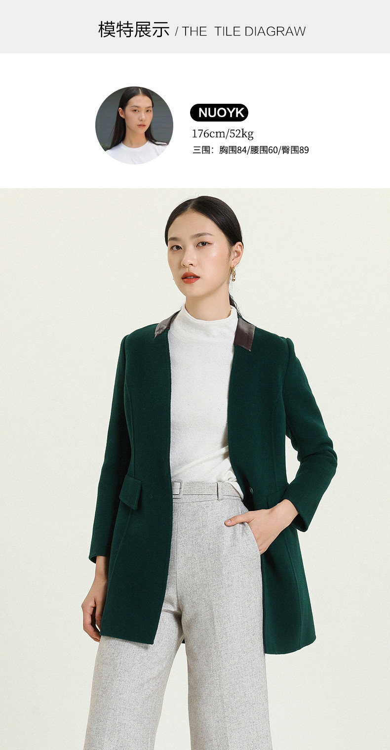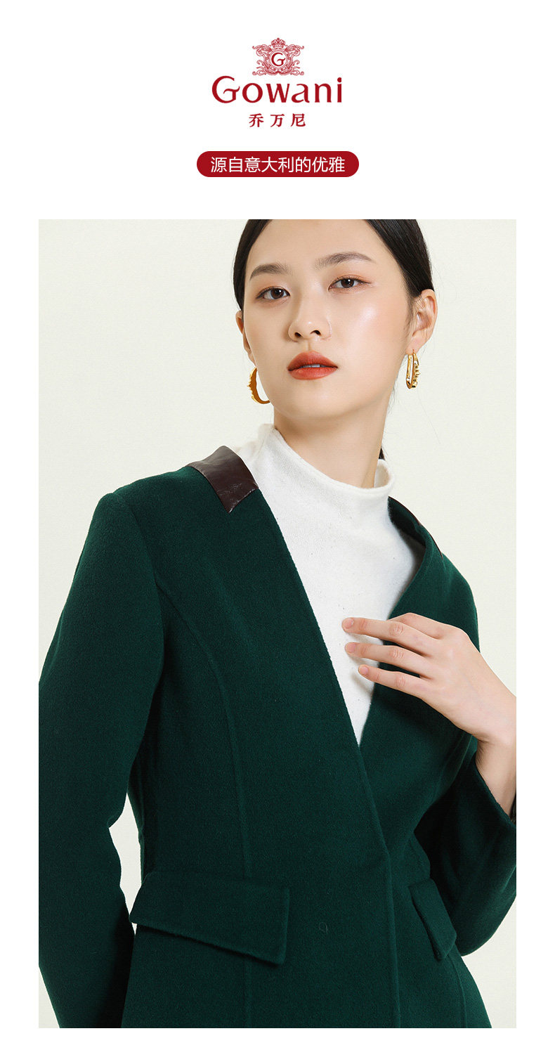 乔万尼冬季毛呢外套女修身中长款长袖大码双面羊毛呢子大衣E144A826
