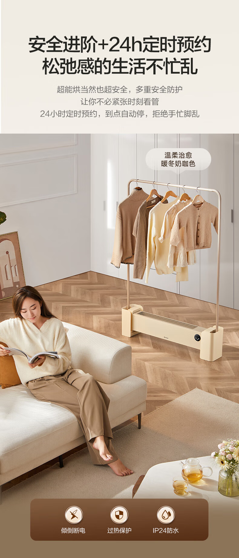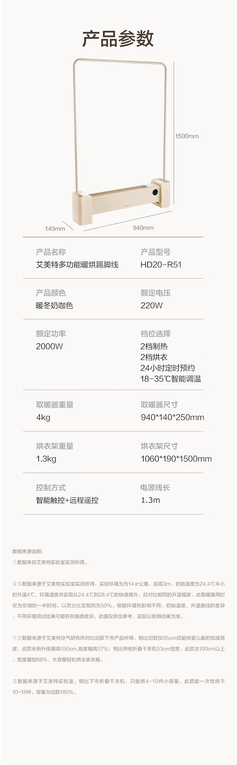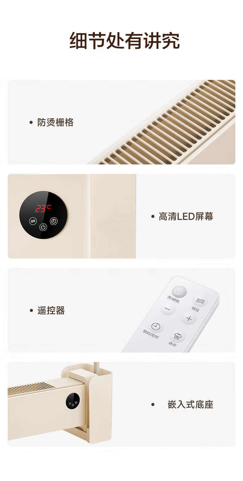 艾美特(Airmate)烘衣架踢脚线家用大面积石墨烯取暖器防水速热移动地暖客厅卧室浴室烘干晾衣架节能遥控电暖气片 多功能烘衣移动地暖【HD20-R51】