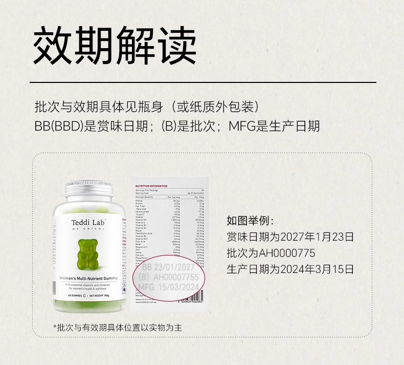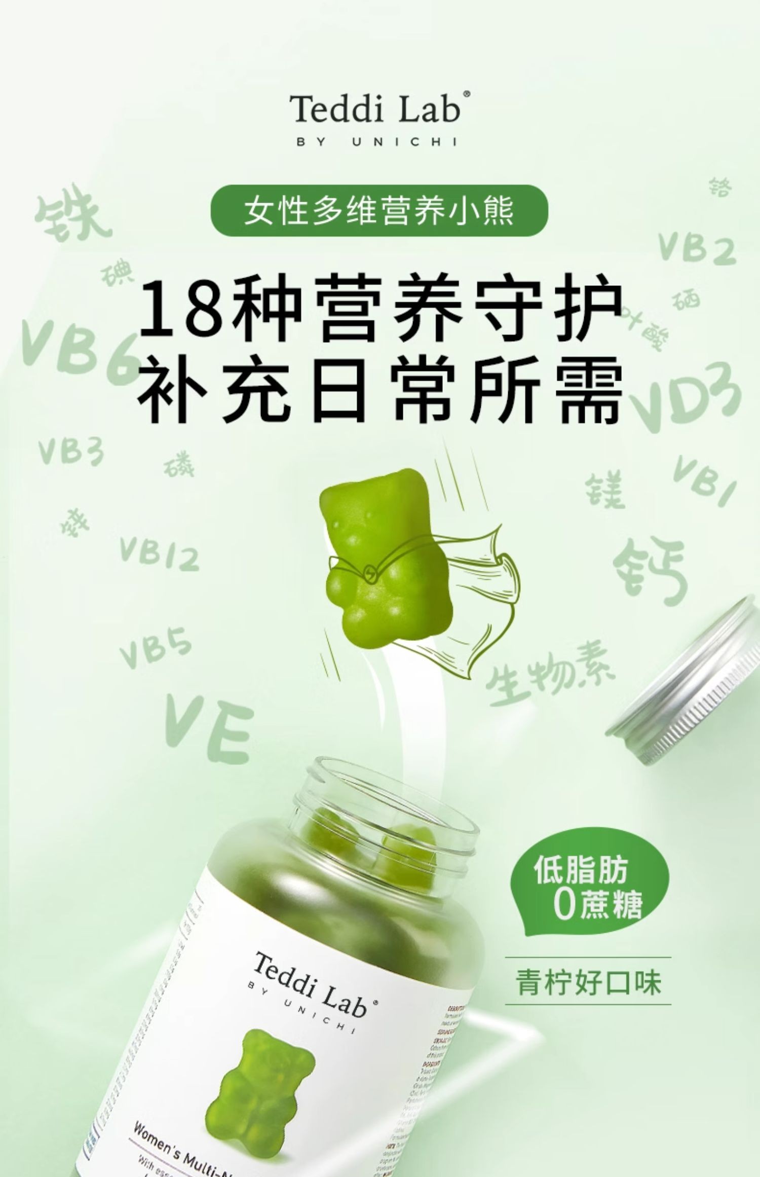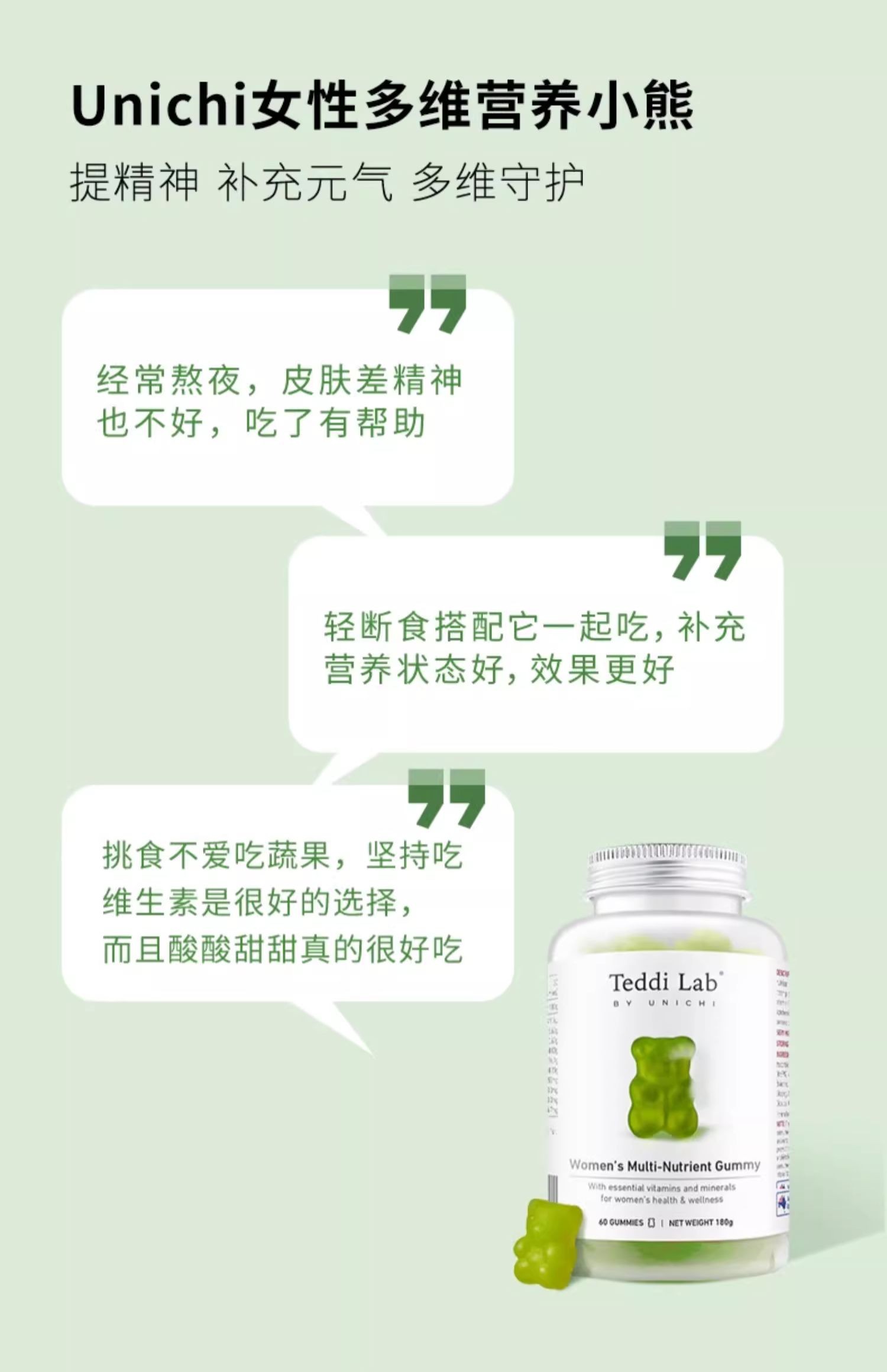 UNICHI抗焦虑咀嚼片、女性多维营养、叶黄素护眼、南非醉茄、褪黑素睡眠、烟酰胺玫瑰果亮肤、苹果醋小熊软糖60粒【保税直发】