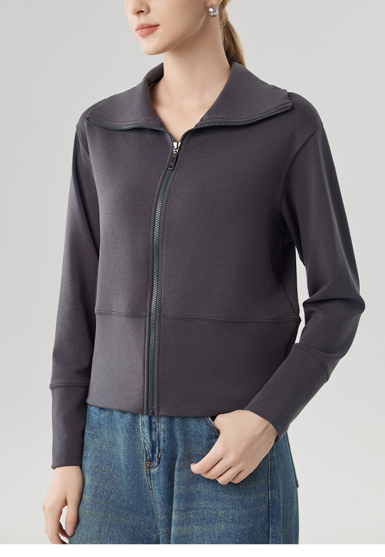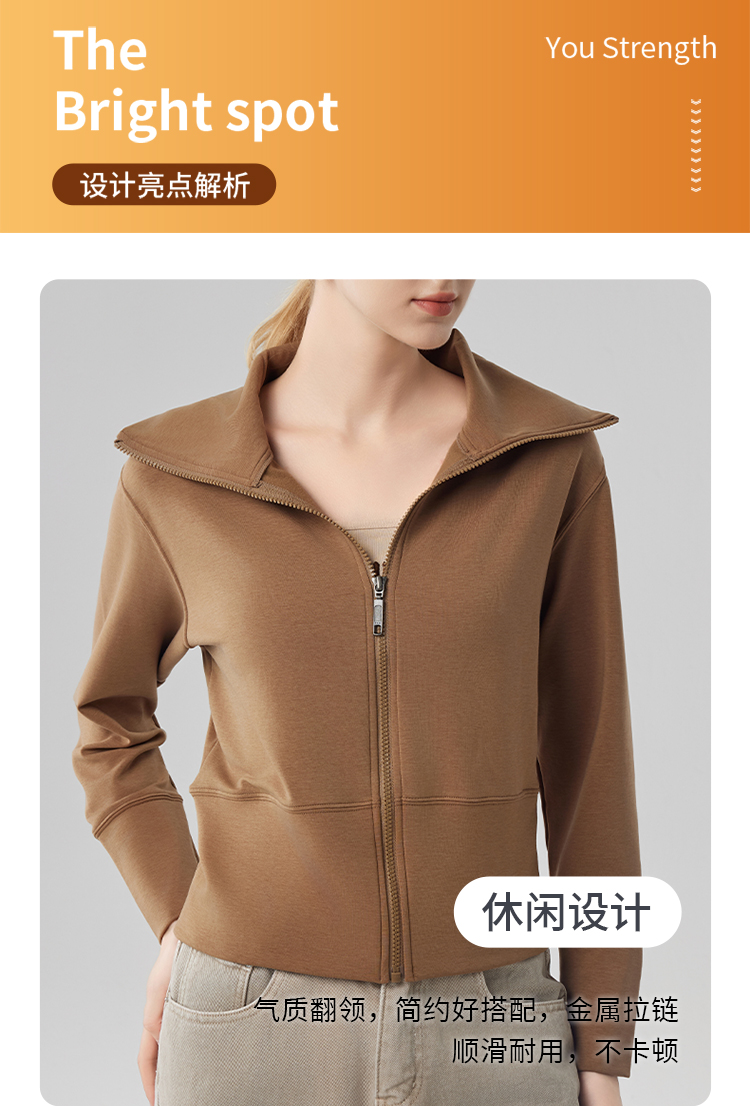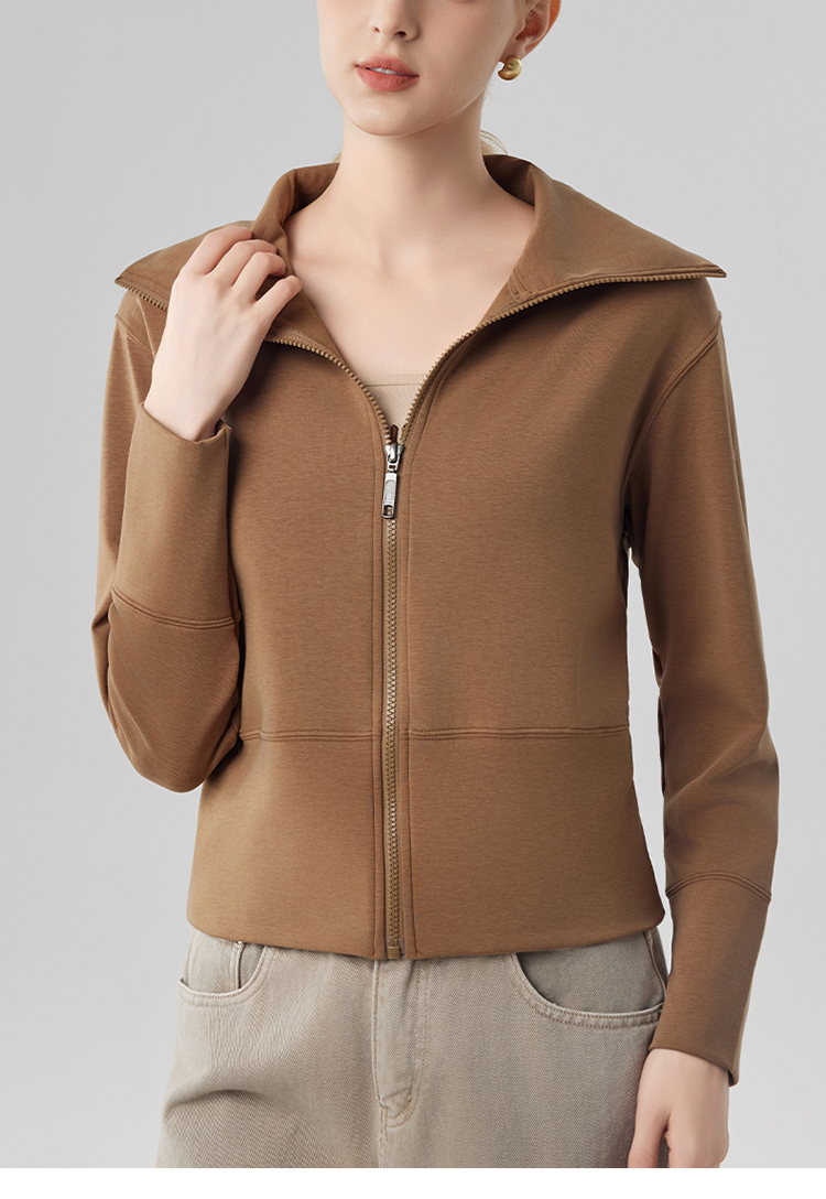 跃牌【砂洗空气层系列】女砂洗全拉链翻领外套W11G2