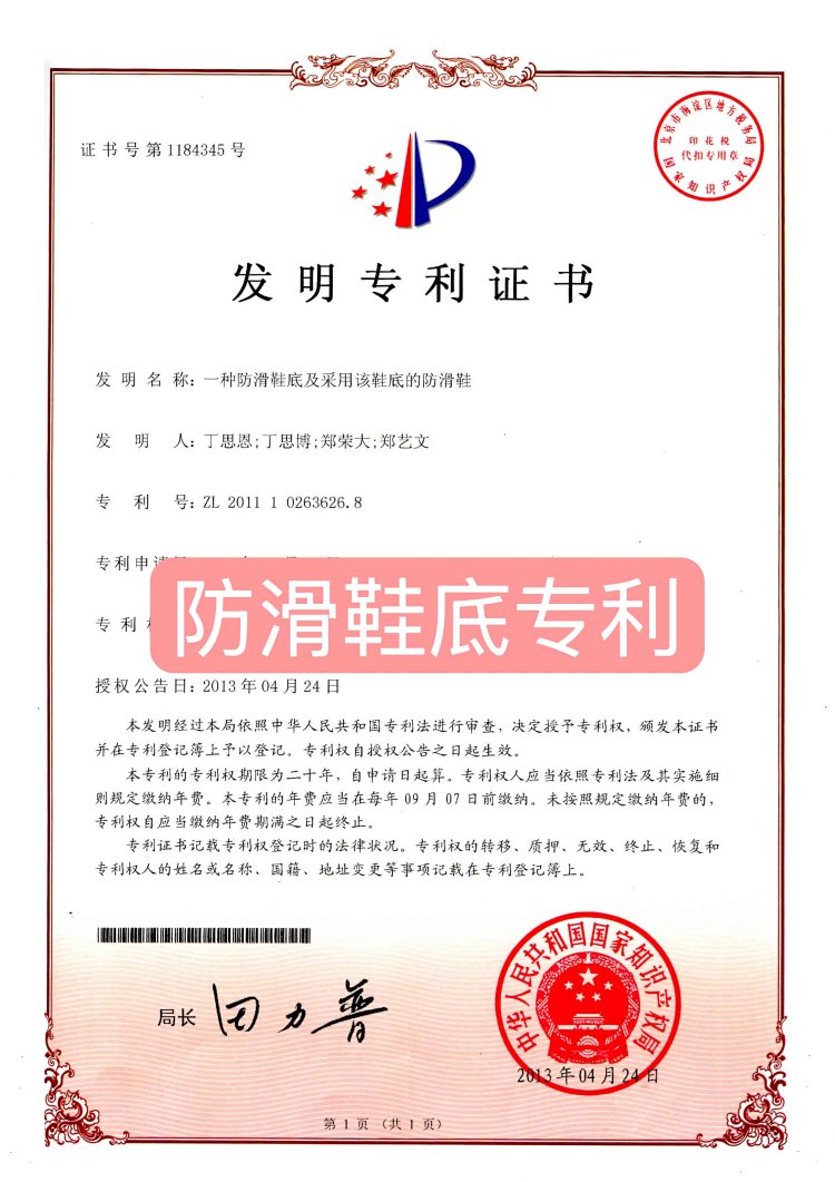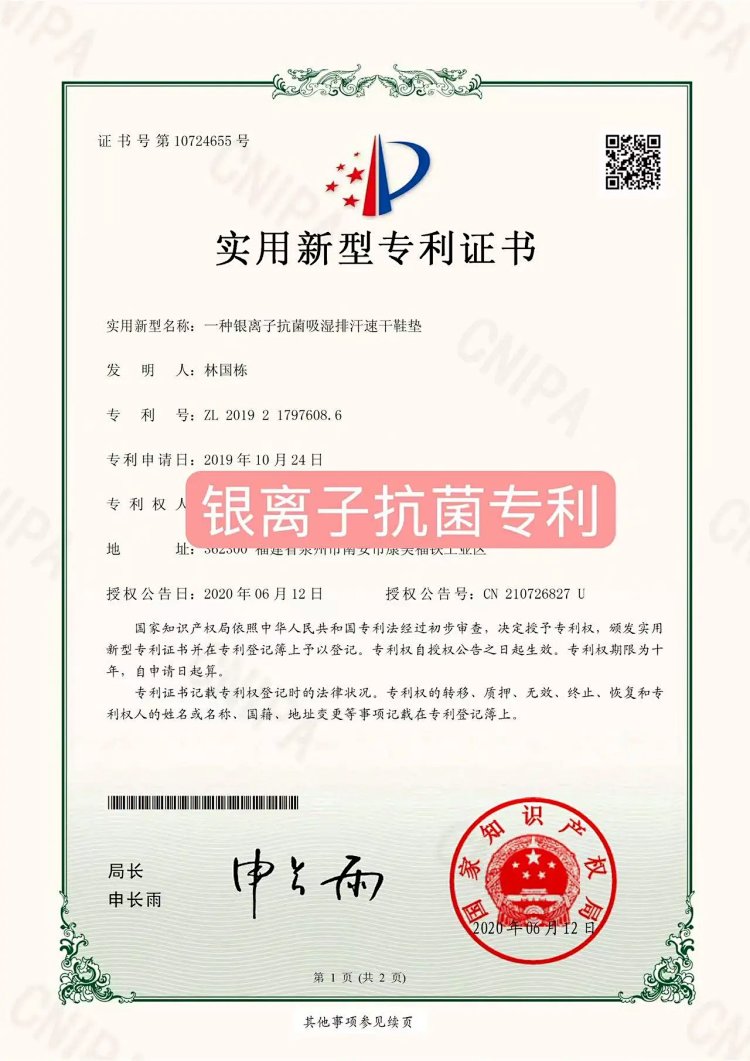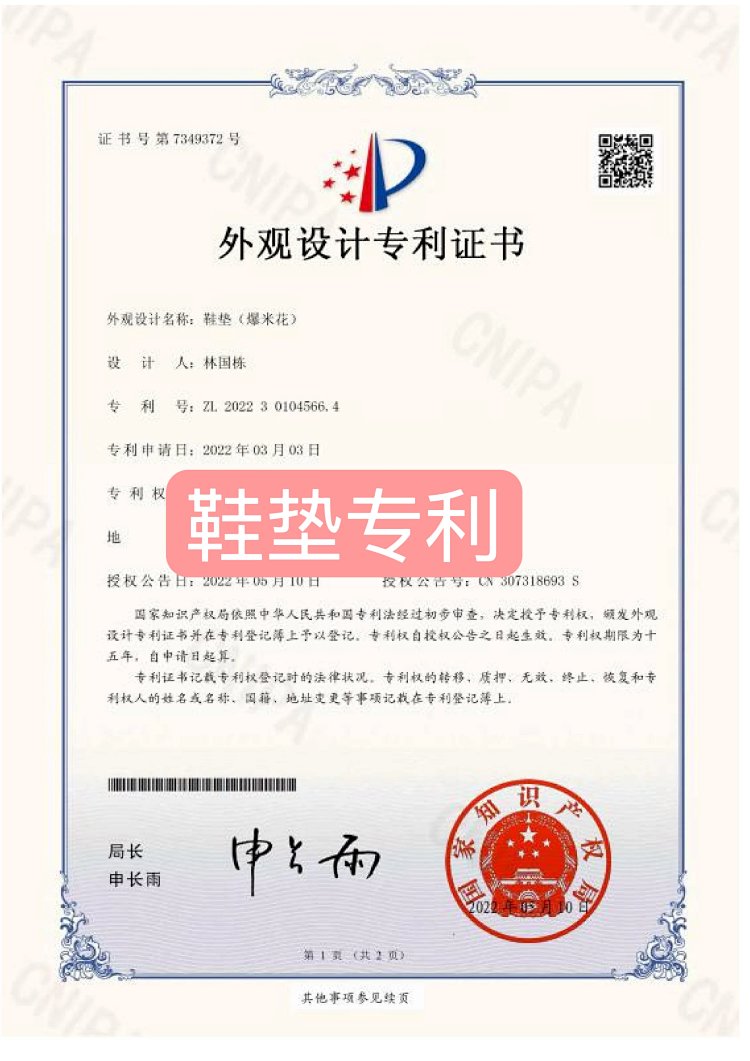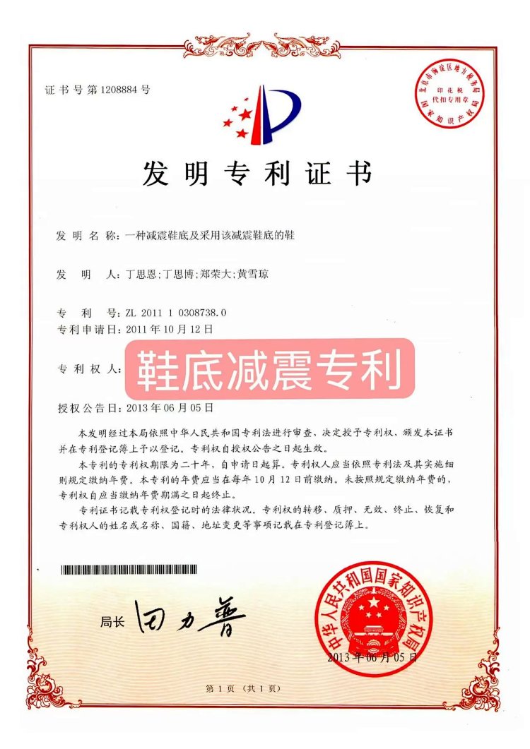 带来更好的耐磨性和回弹性。(附专利发明证书)