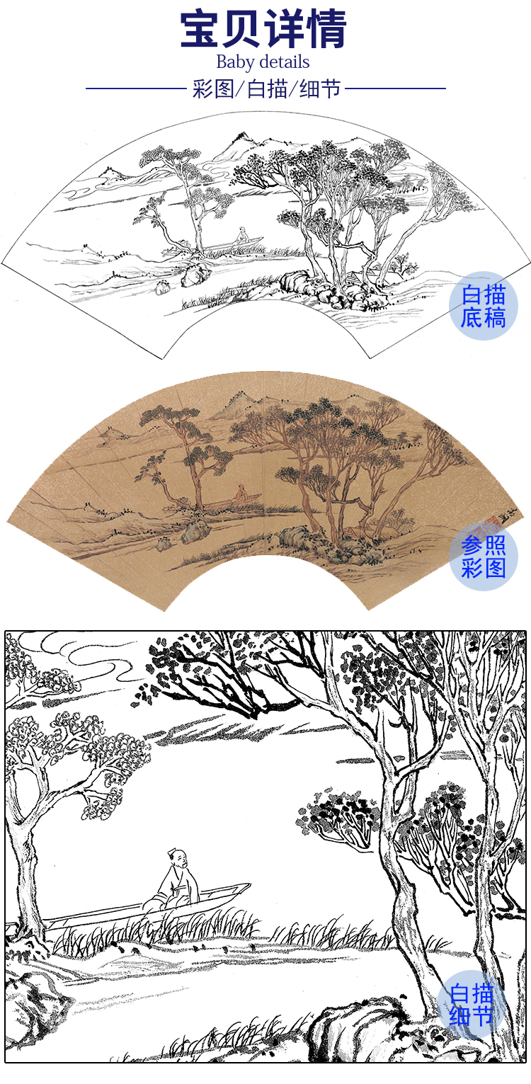 工笔画白描底稿 山水人物扇面小品 明 文徵明 SR32