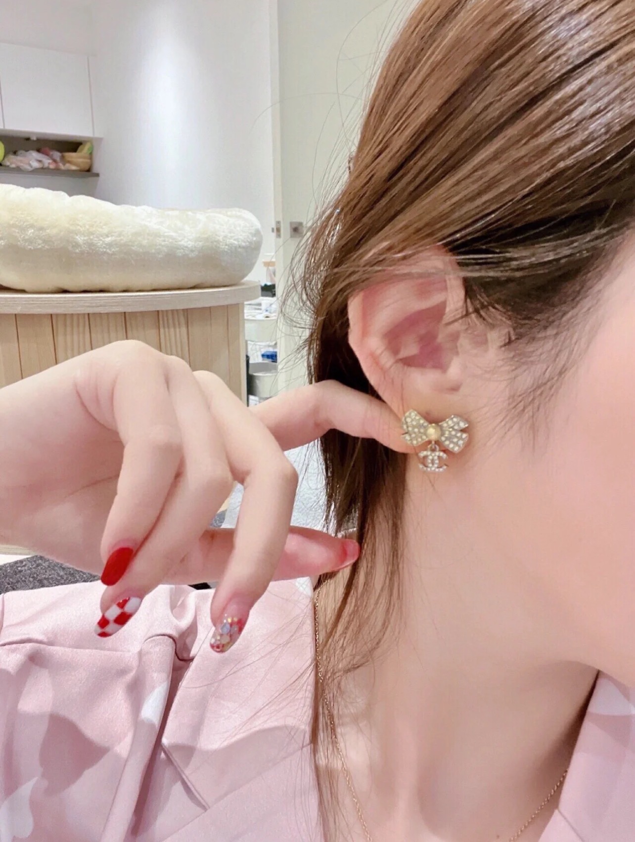 小巧美丽的满钻香奈儿蝴蝶结小耳环,真的是让人看了爱不释手