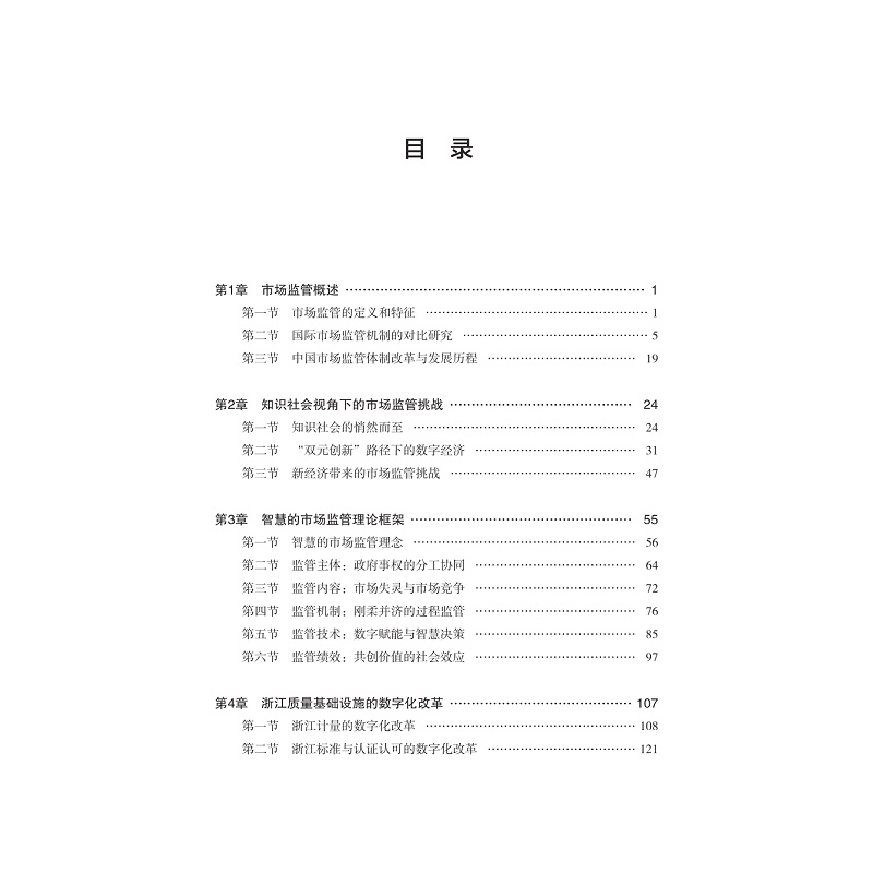 “求是智库”丛书系列,“浙江省数字化改革系列丛书”之一种。本书聚焦数字赋能政府监管,共分为三部分:首先,市场监管概述。通过概述综合行政管理、计量、标准、认证认可、产品质检、食药安全、特种设备检验检测,阐述我国市场监督管理部门的核心职能配置。其次,智慧的市场监管理论构建。结合世界格局快速变化,以及新技术带来的新产业、新模式、新业态、新技术,分析新经济的典型特征与市场监管的潜在应对路径,应用浙江省案例,探析智慧市场监管体系的实现路径。最后,应对新经济的智慧市场监管。结合智慧经济、银发经济、低碳经济的发展现况,前瞻性地探析创新的智慧市场监管体系在未来应用的可行性。