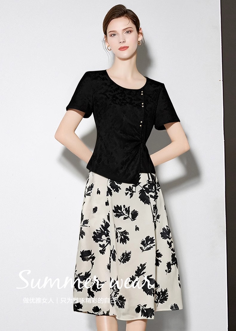 「自」全新升级全新升级【铂金会员266/天猫359/差价93】(99852)洛诗琳2025新款高级时尚气质休闲女士短袖女装两件套