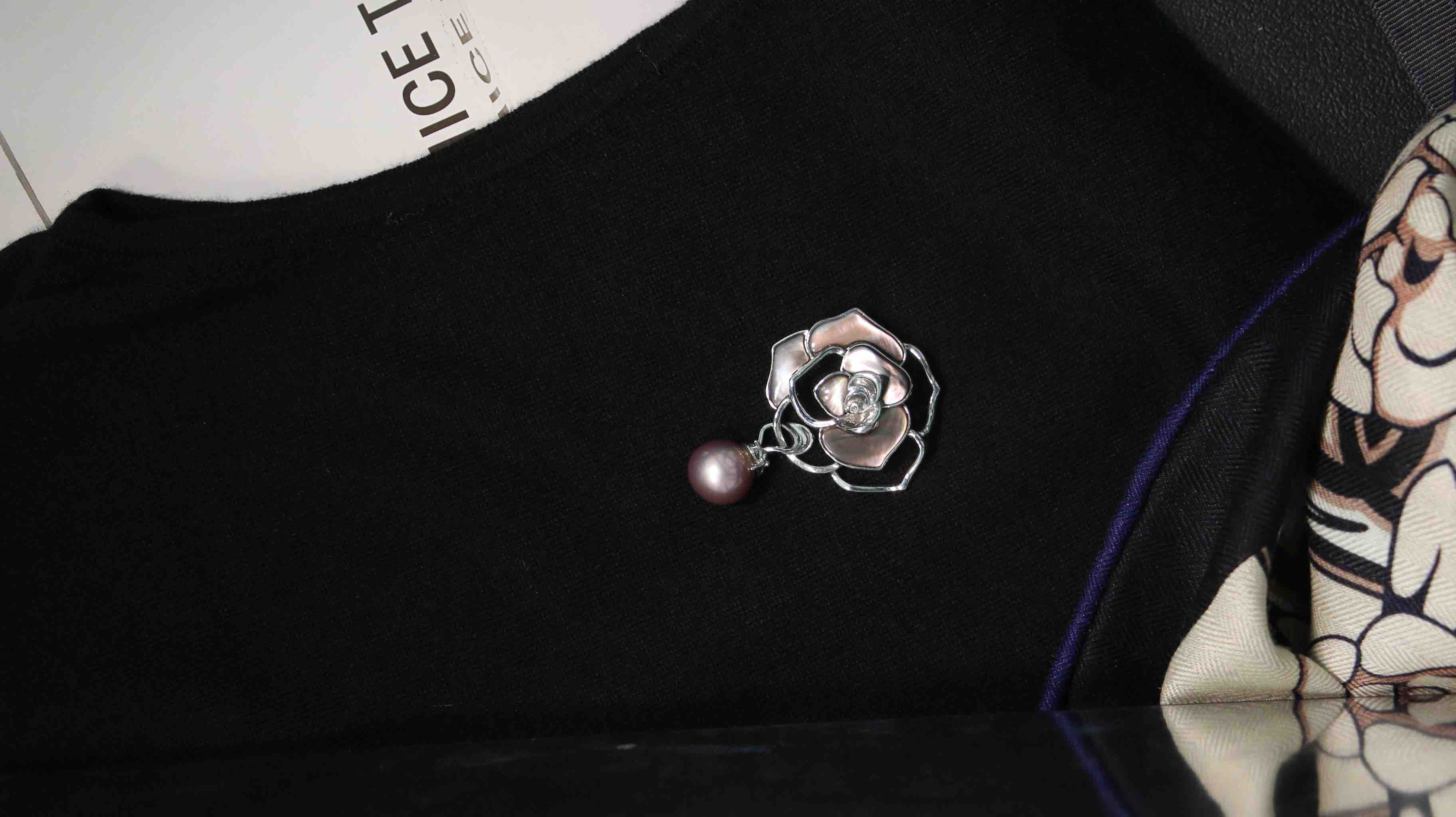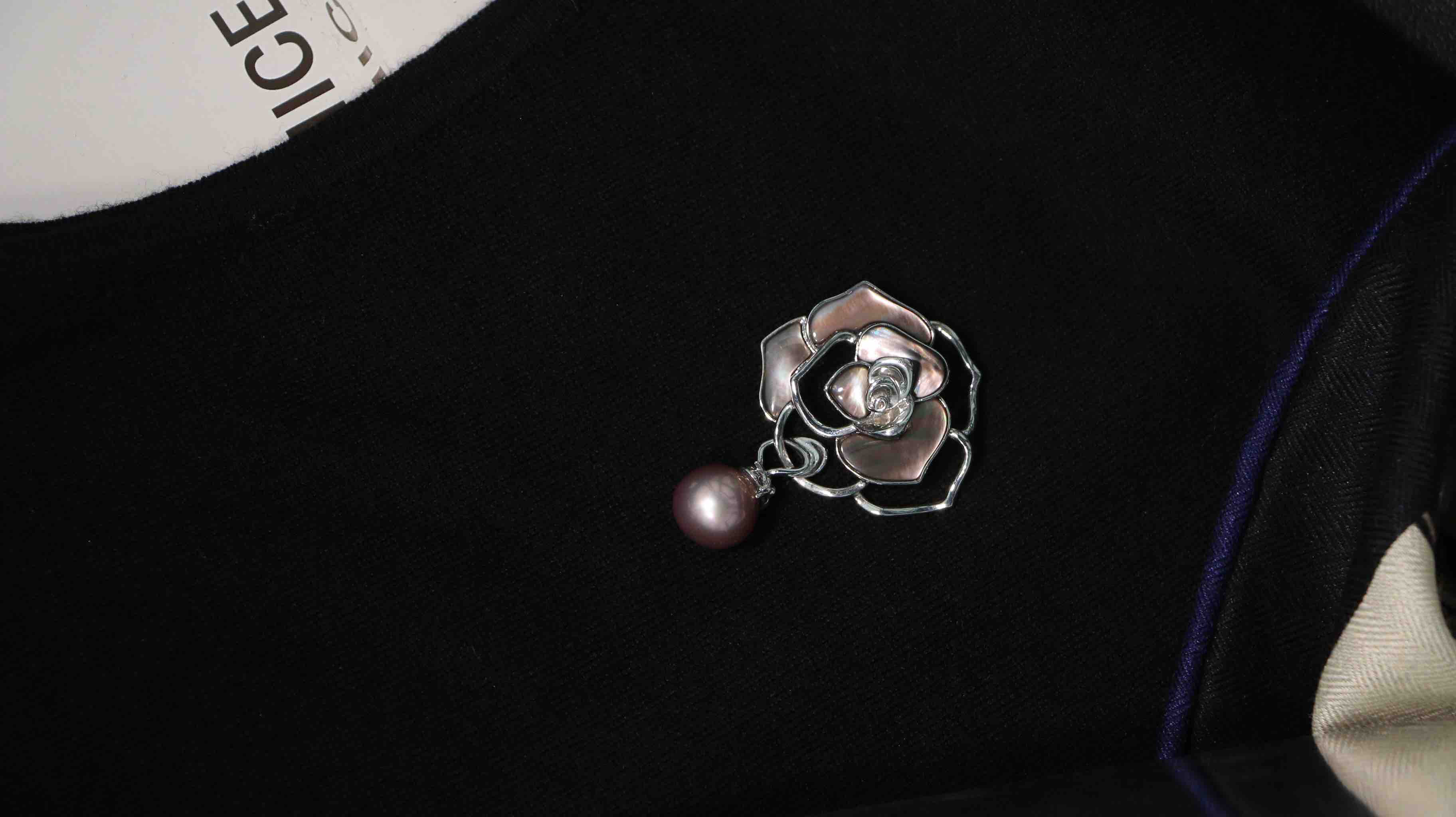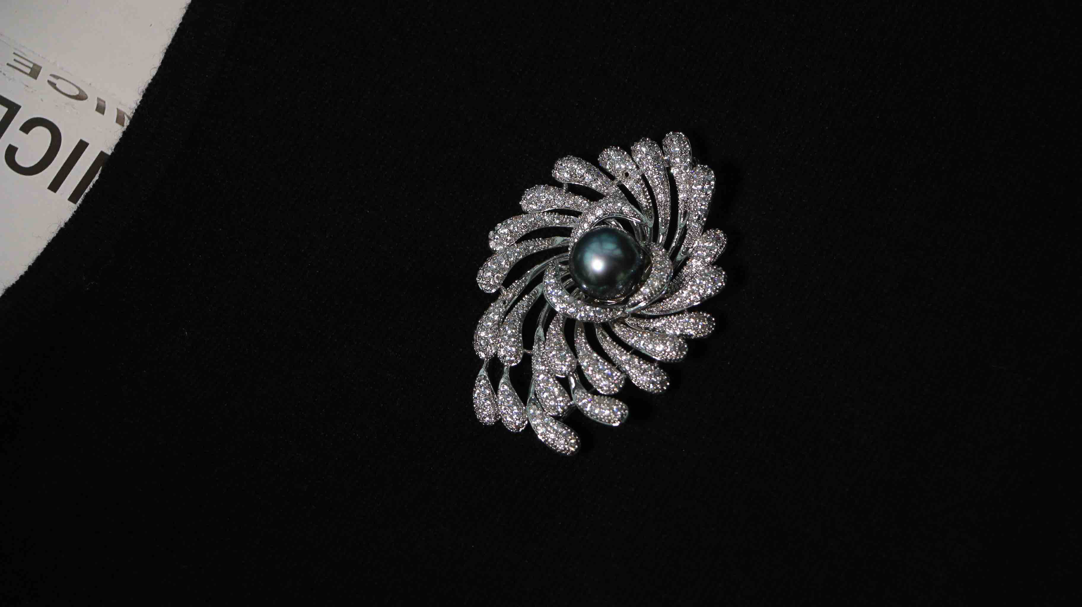 澳白珠10-11mm,镶嵌后面无暇,胸针整体约5*5.5cm。