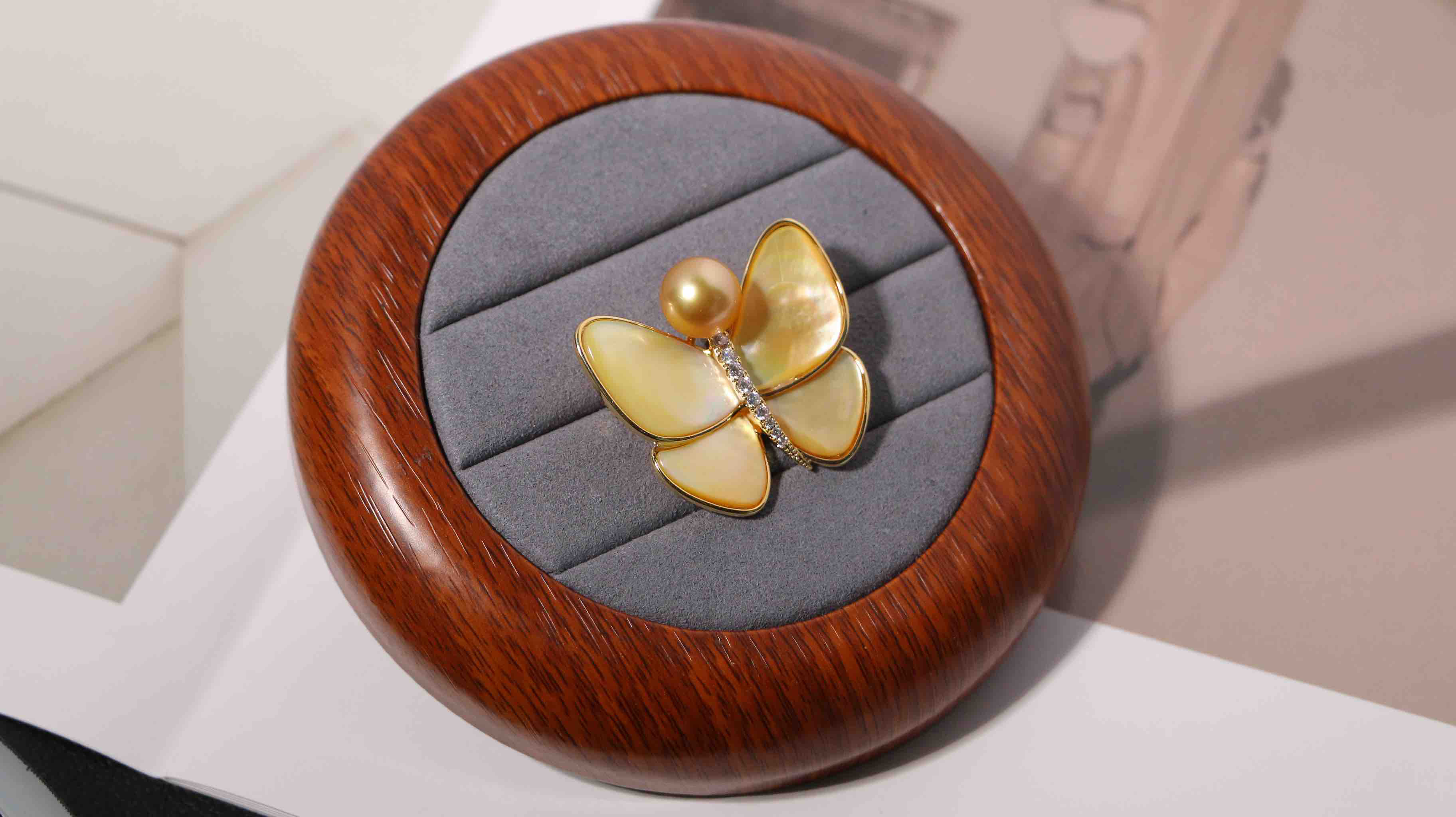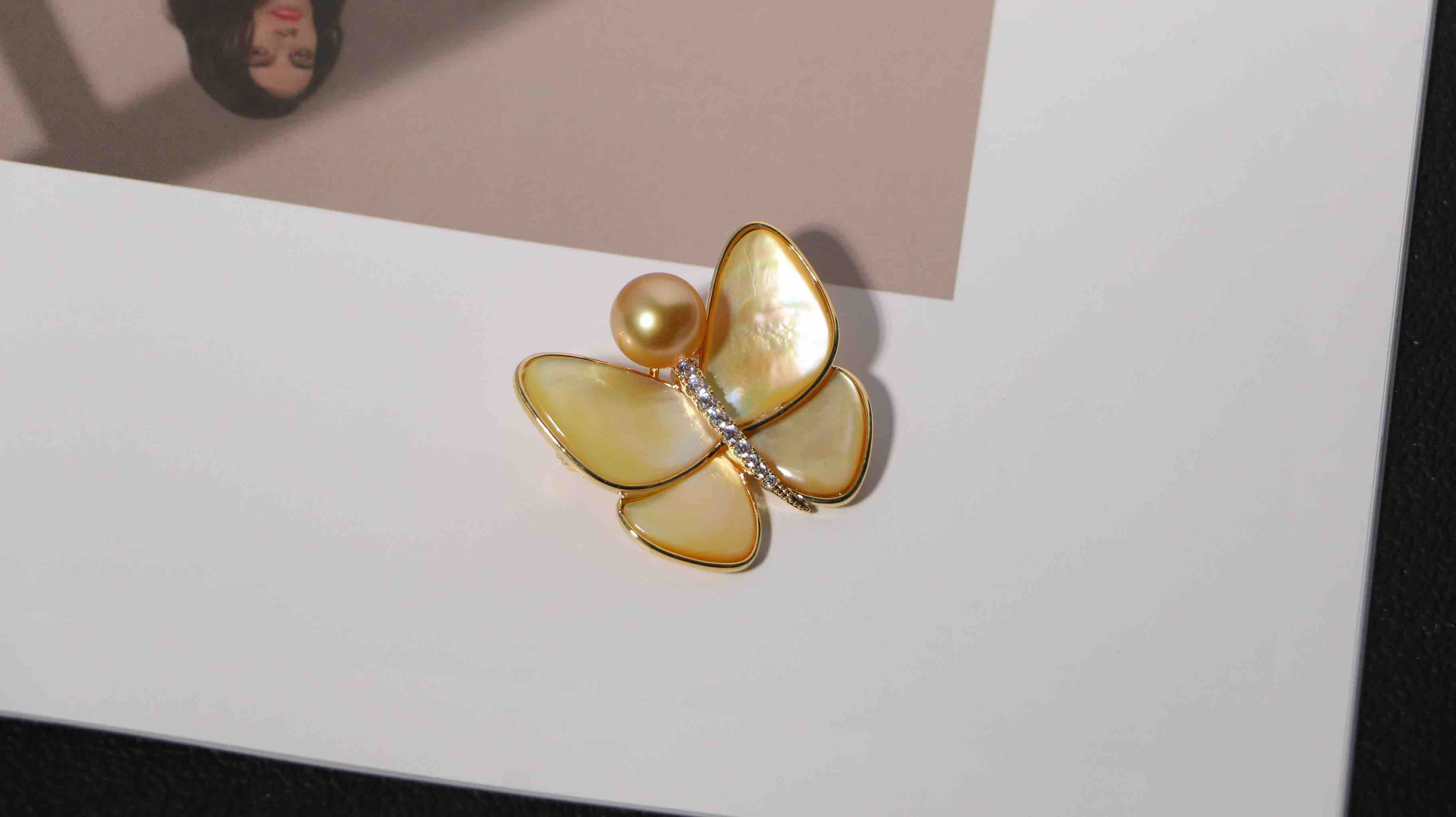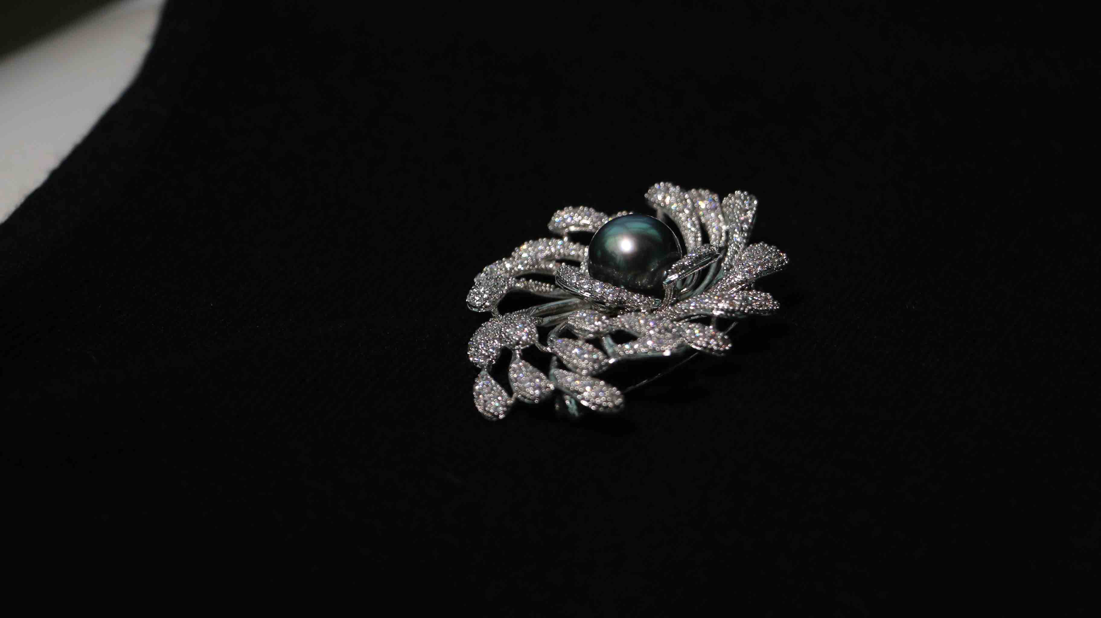 澳白珠10-11mm,镶嵌后面无暇,胸针整体约5*5.5cm。