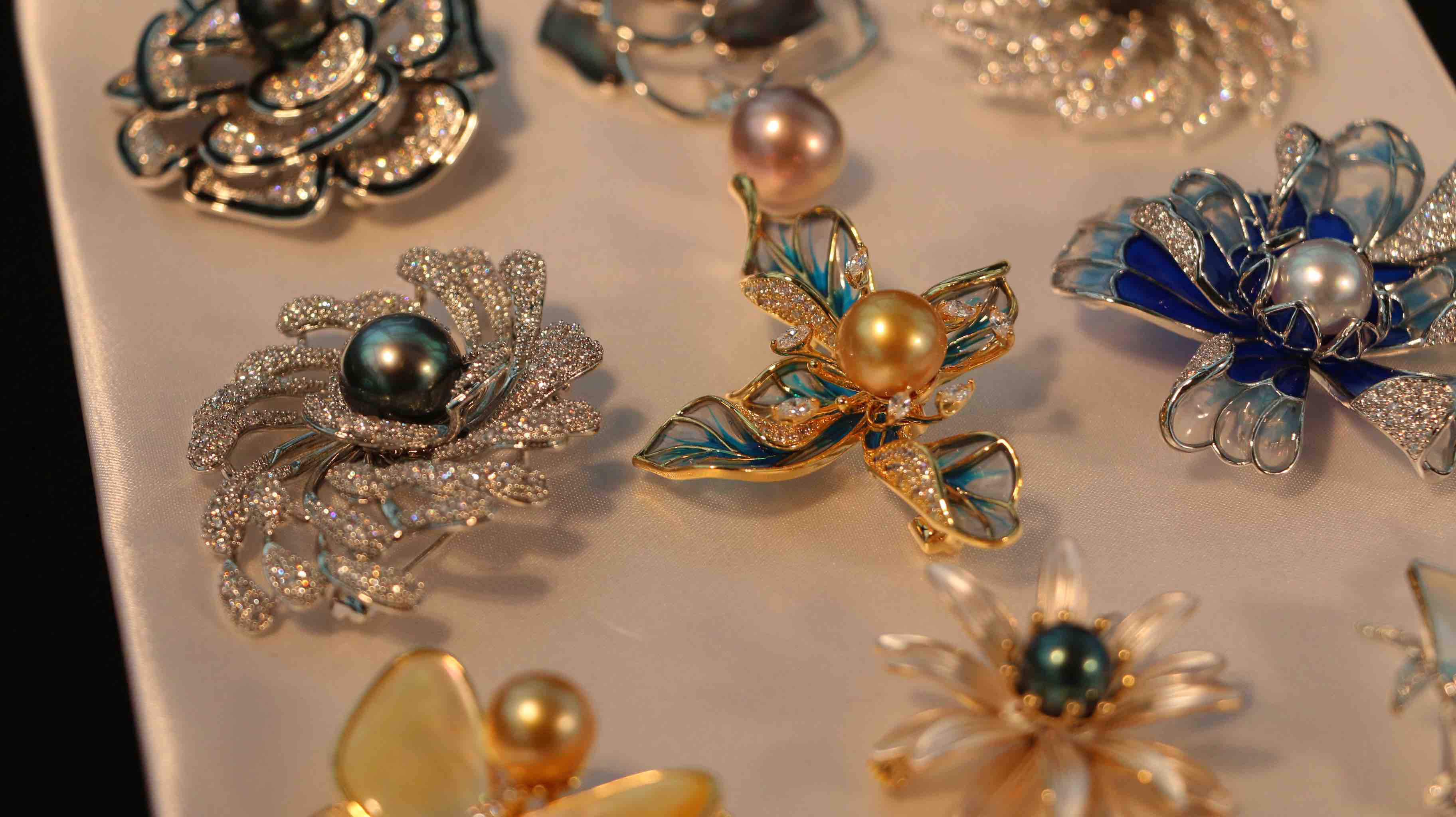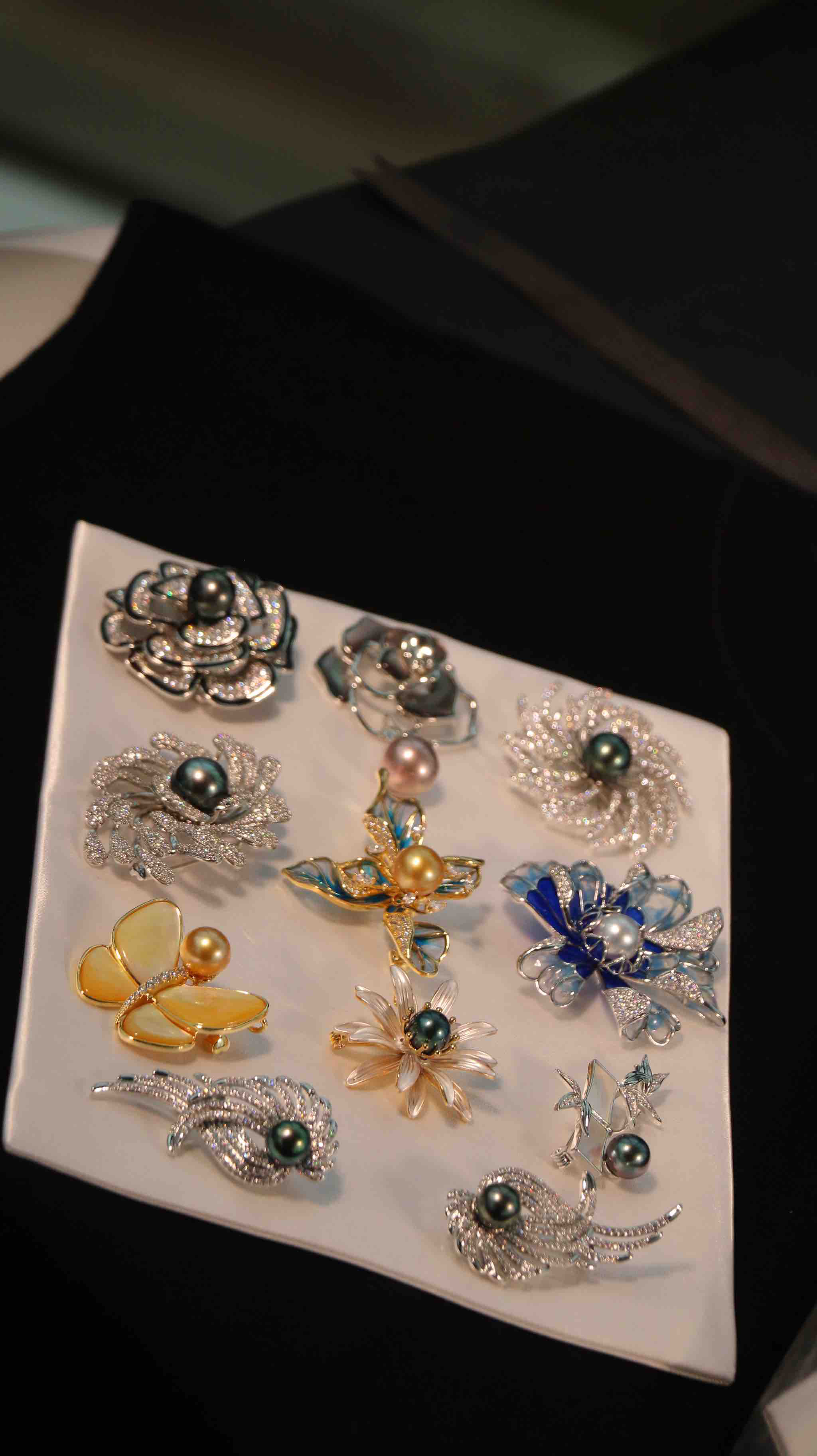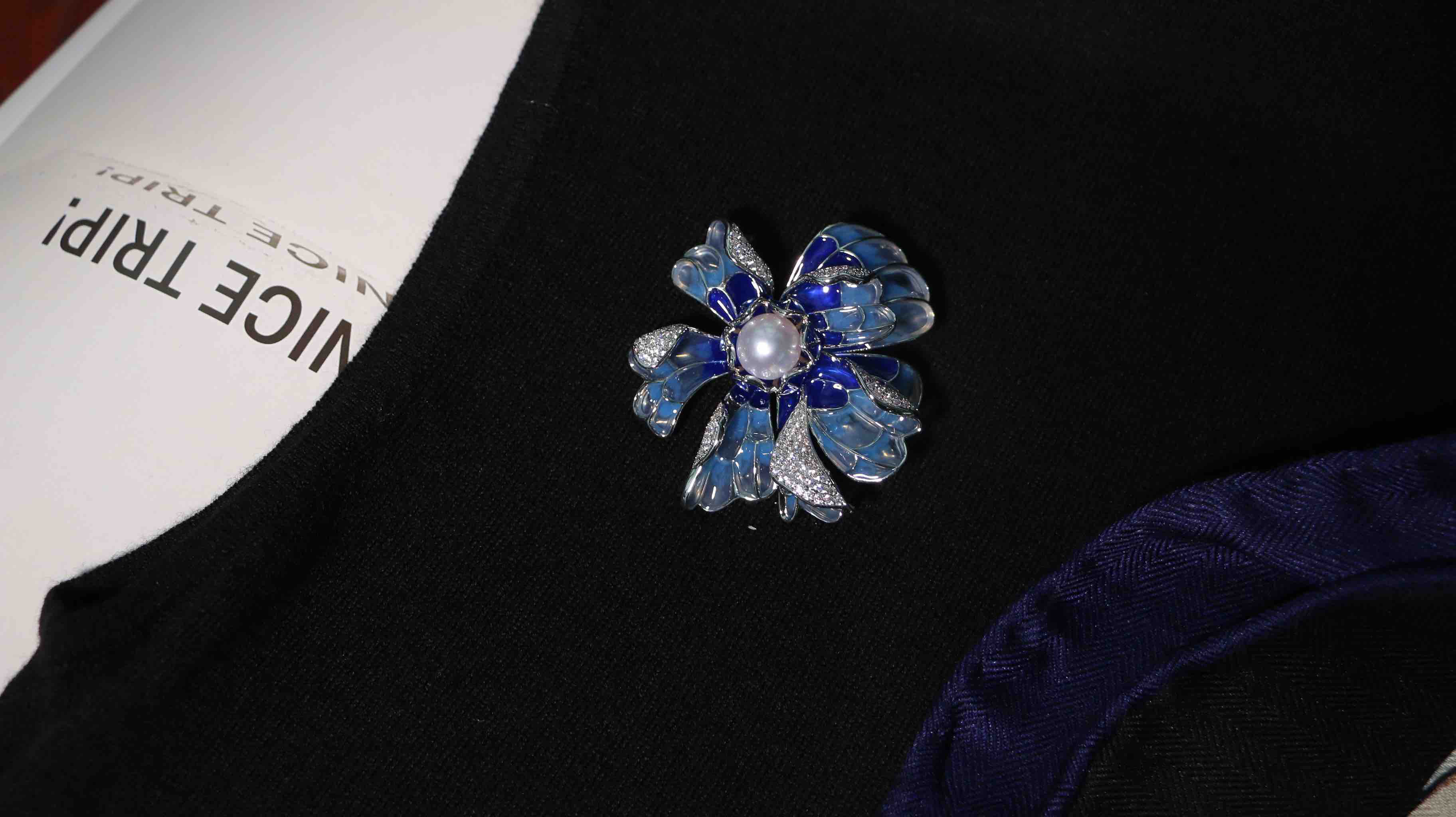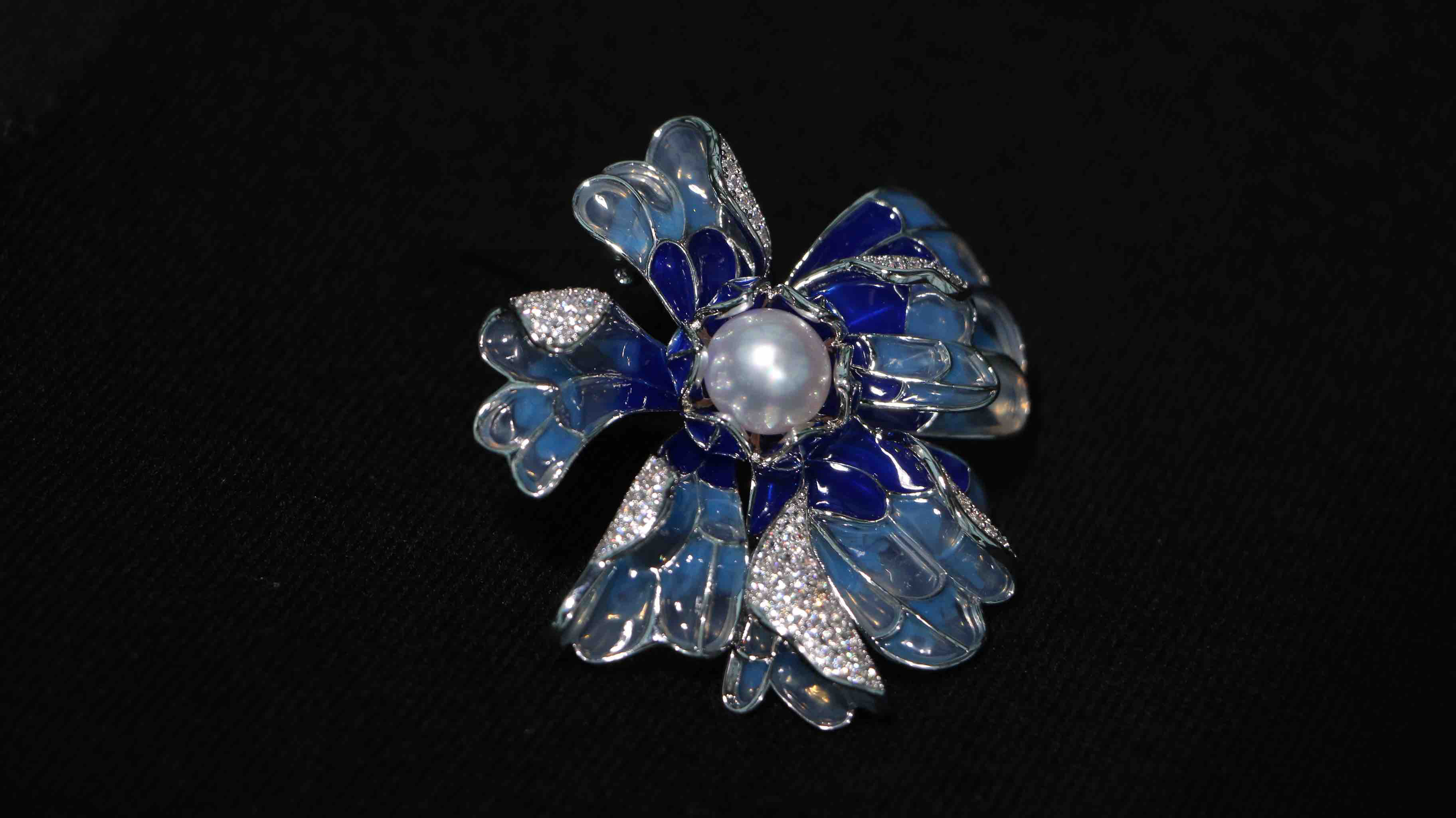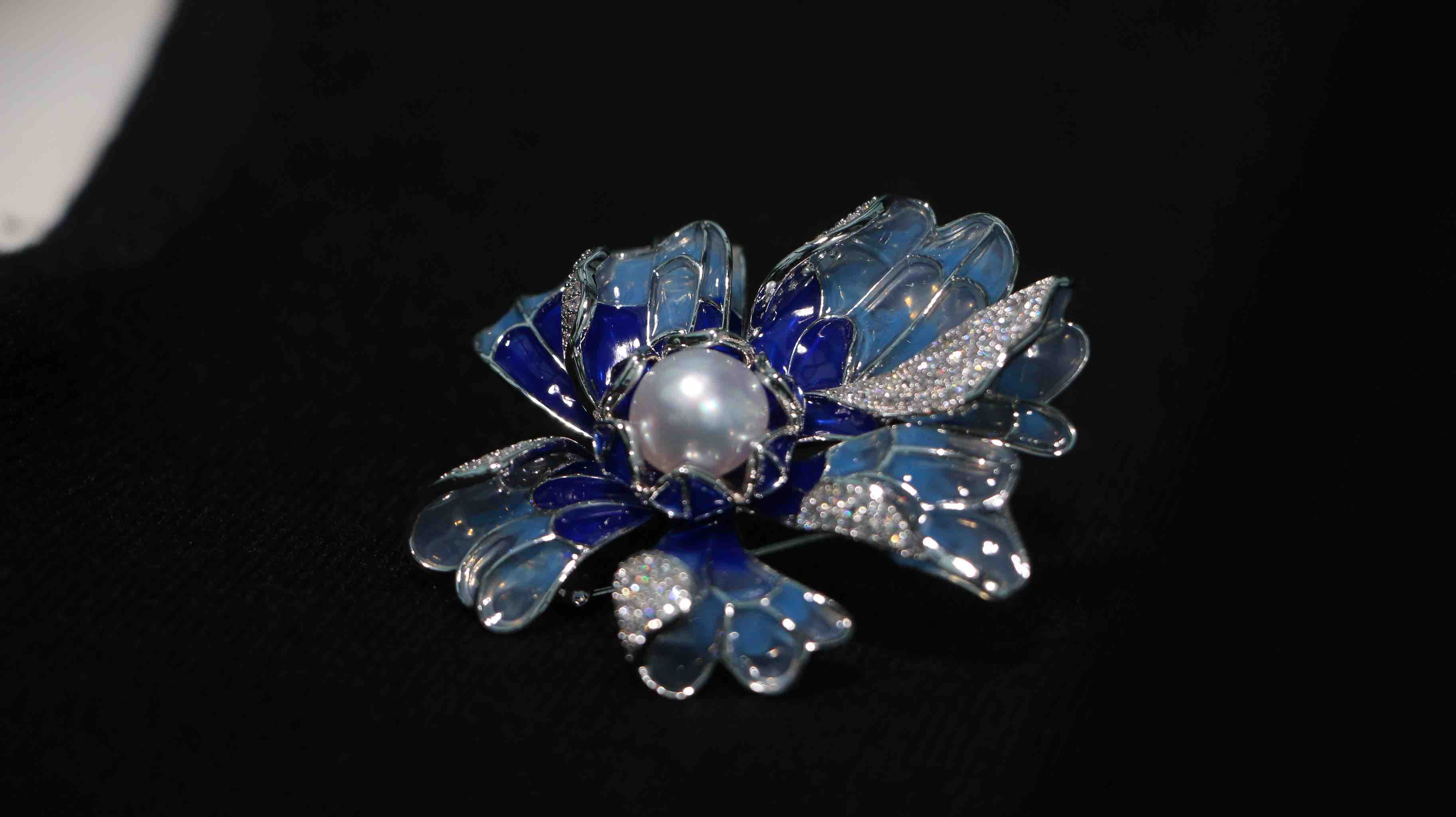 纯天然海水澳白珍珠镶嵌,琉璃质感珐琅工艺,冰蓝花,