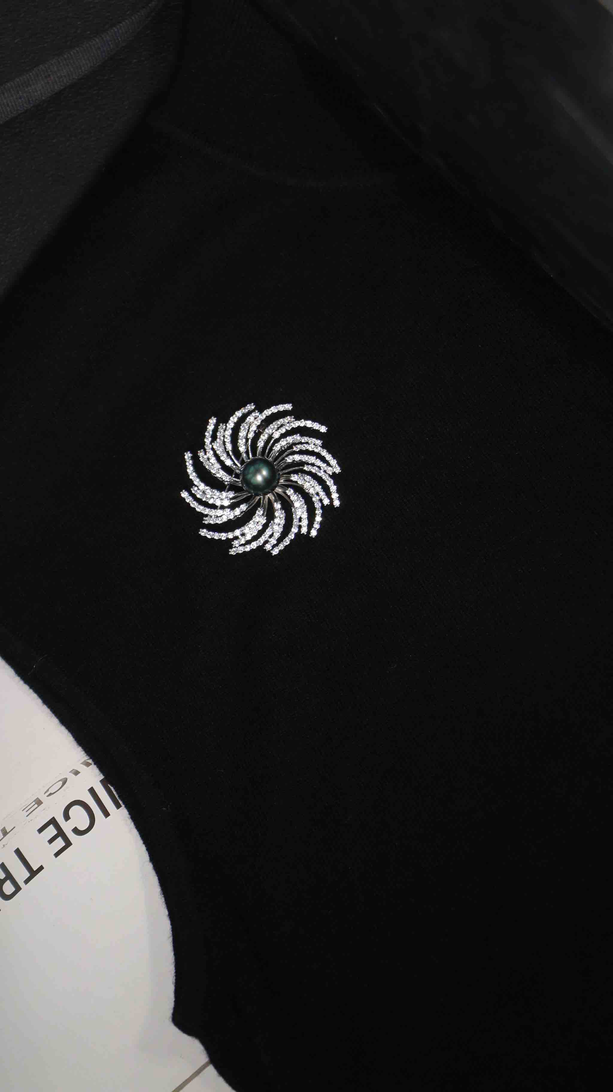 大衣绝配!烟花,大溪地珠11-12mm,胸针整体约4.5*6cm。