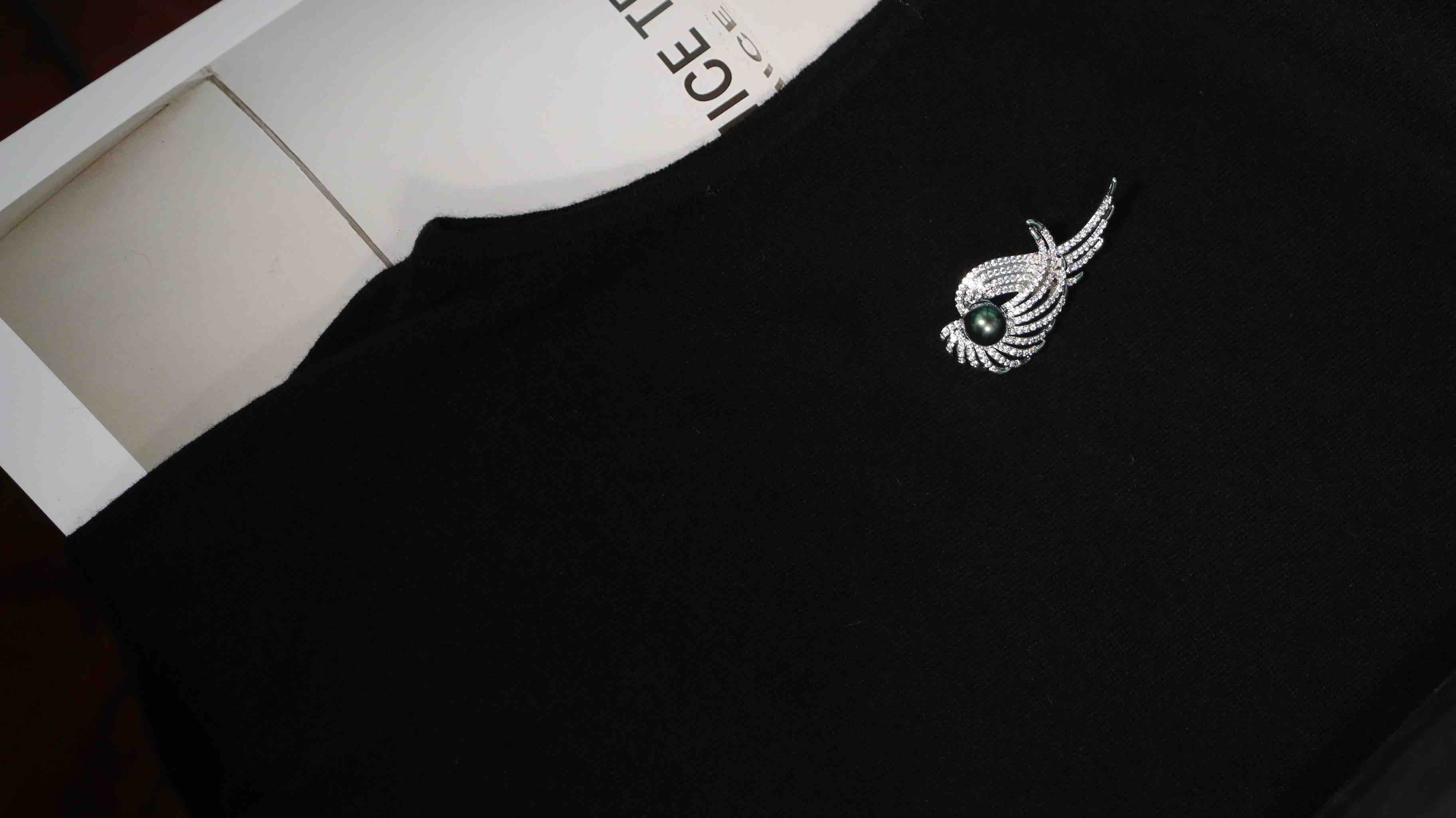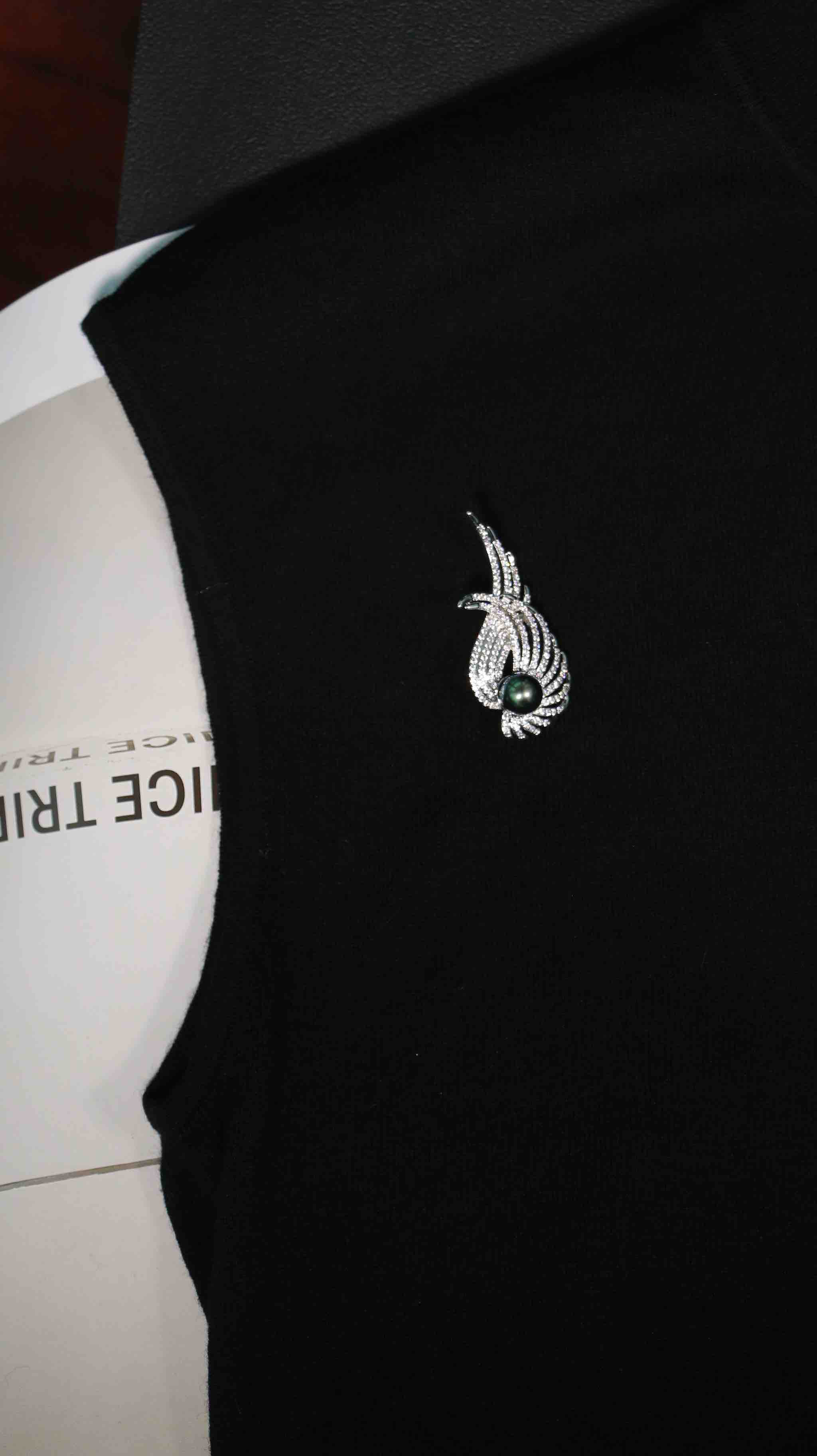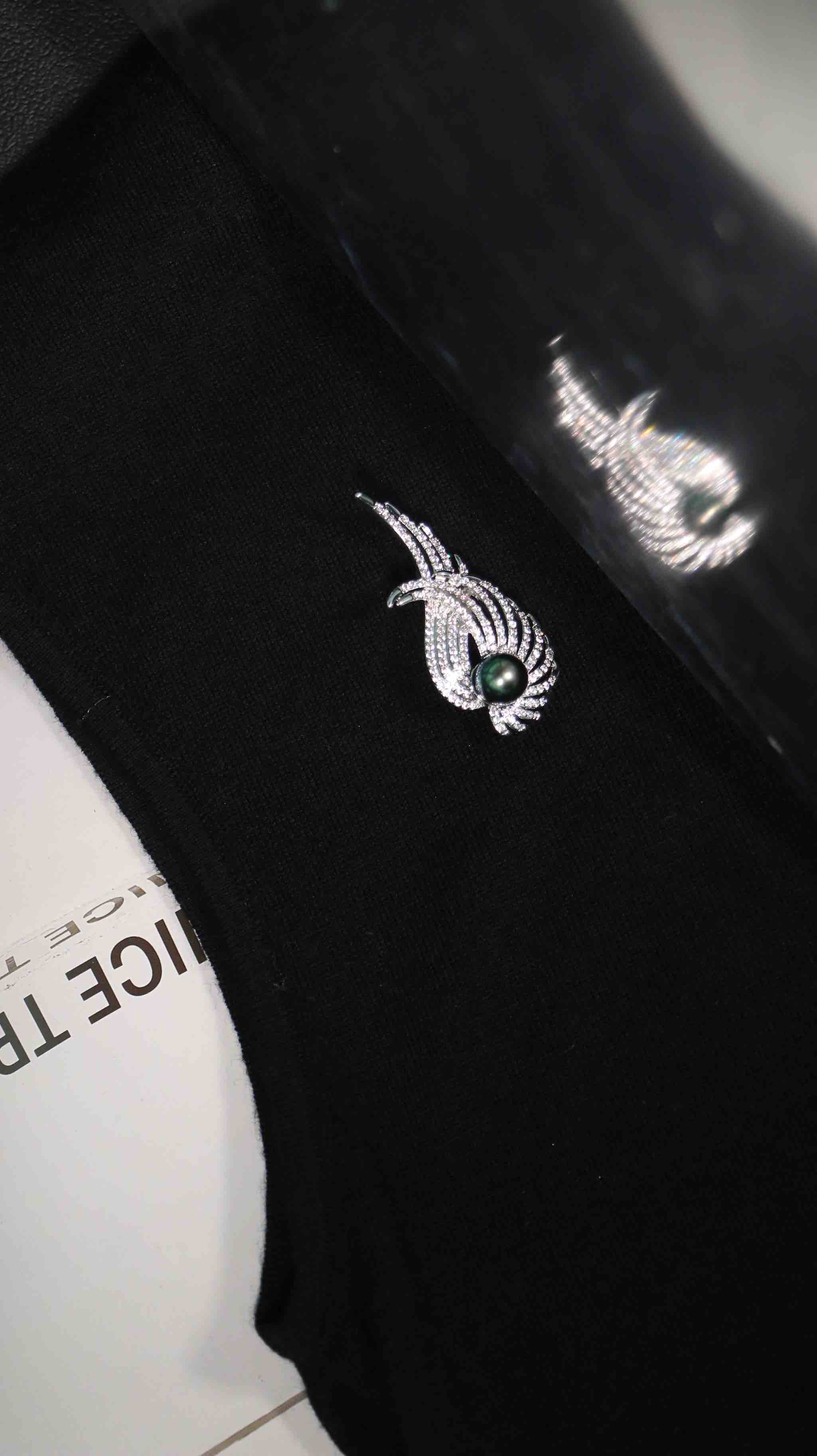 羽翼,大溪地孔雀绿10-11mm,胸针整体约2.5*5cm。