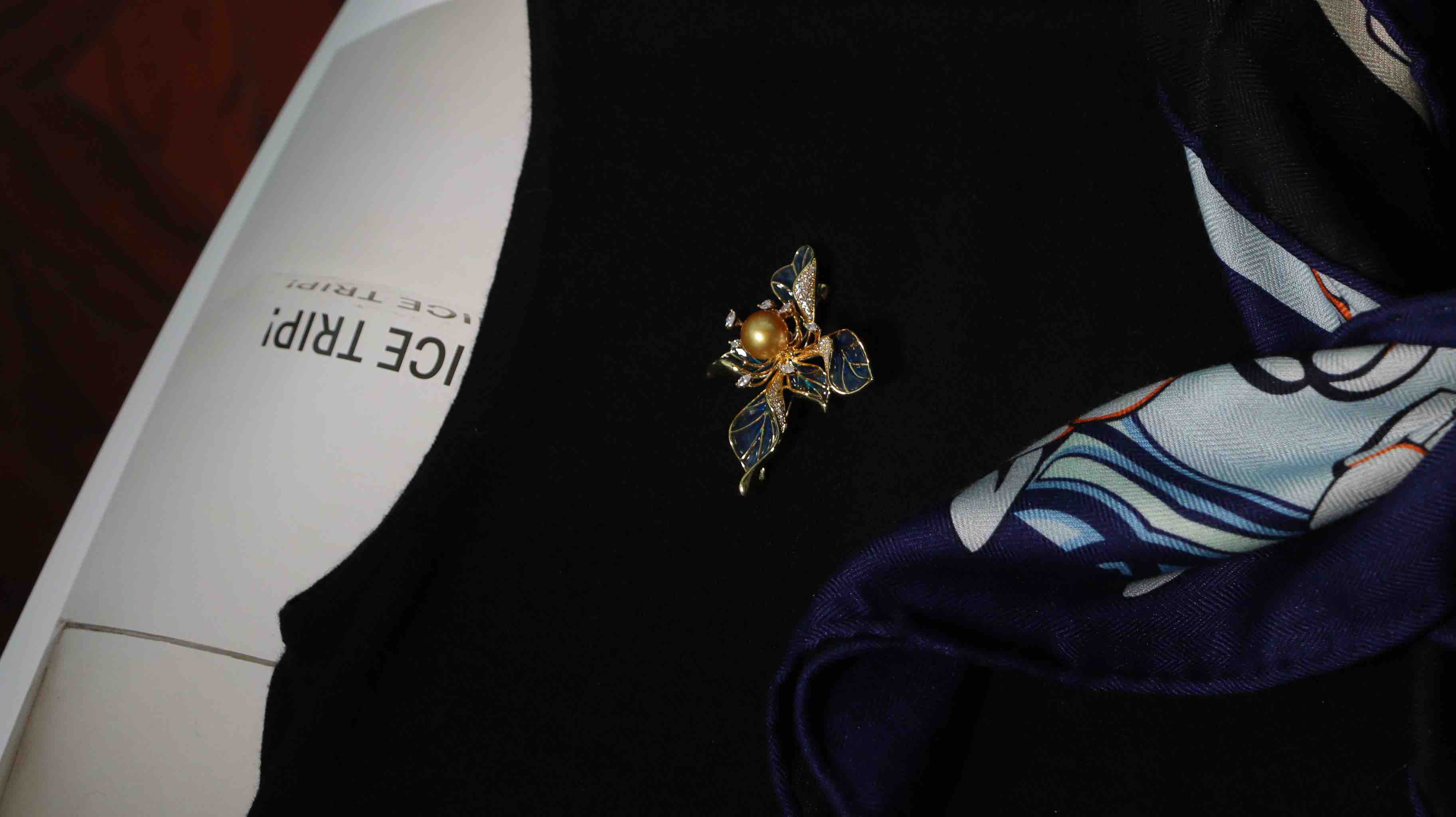 伯爵花,爱迪生珠12-13mm,胸针整体4*5cm(含珍珠坠头)。
