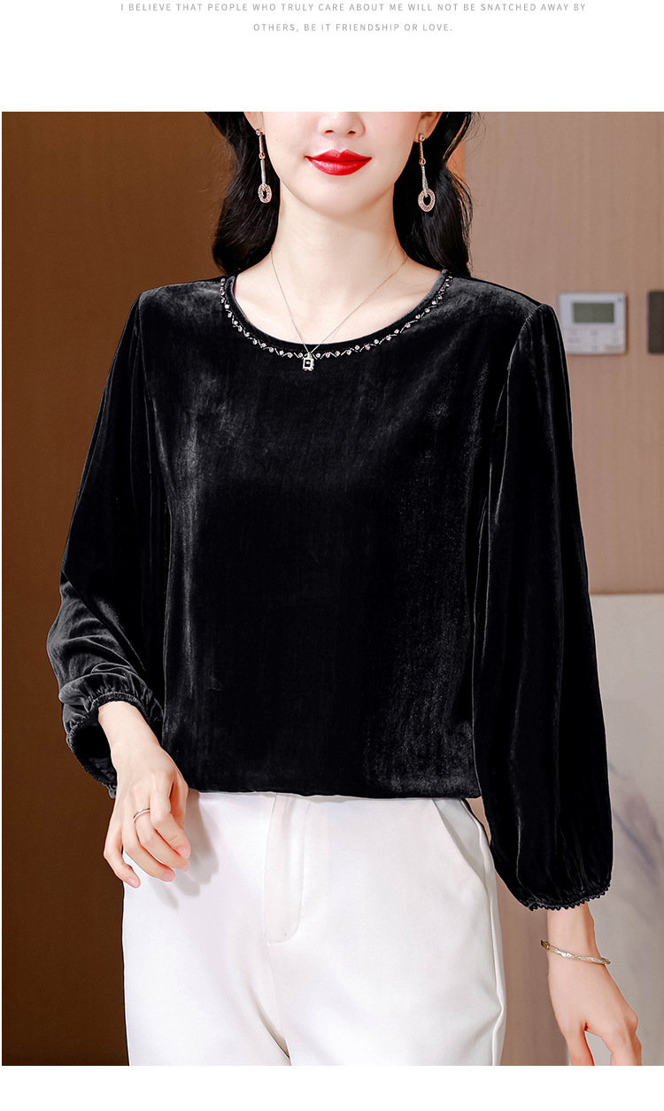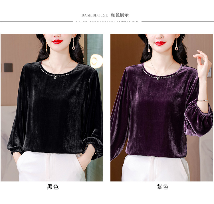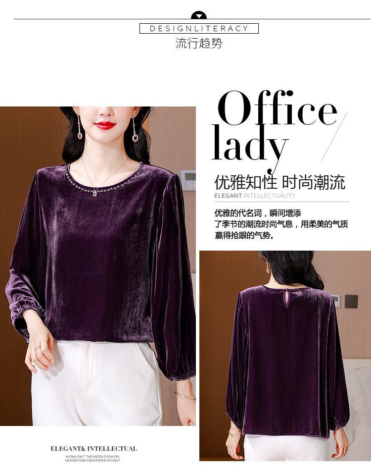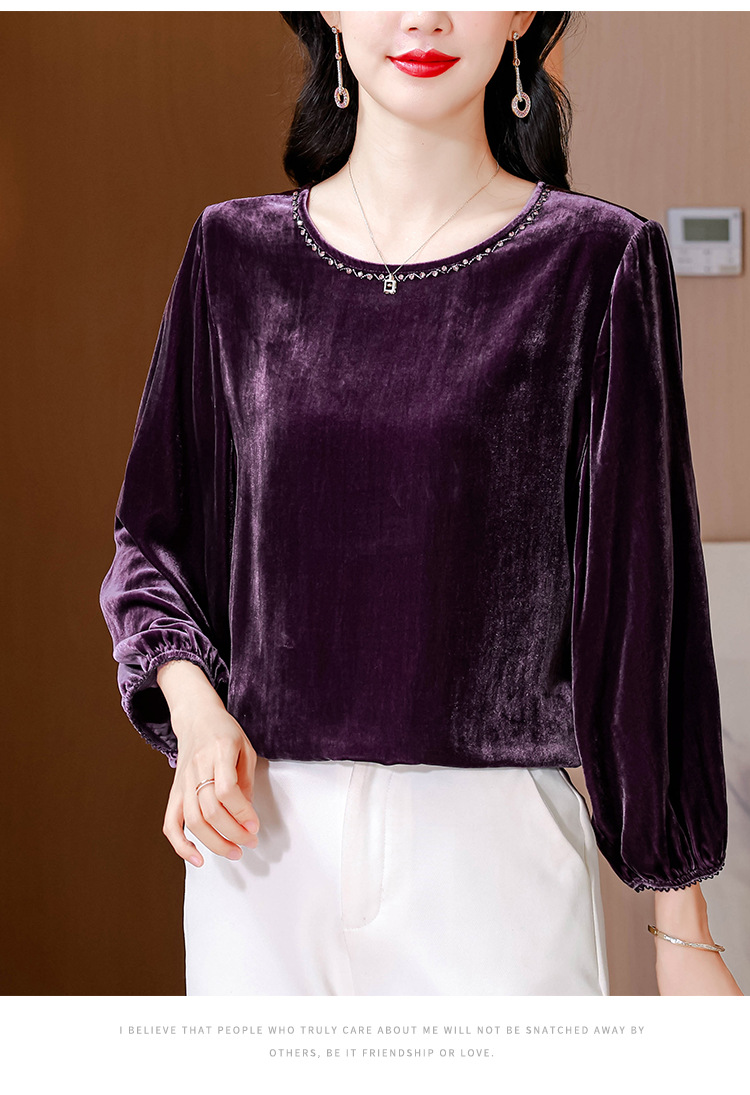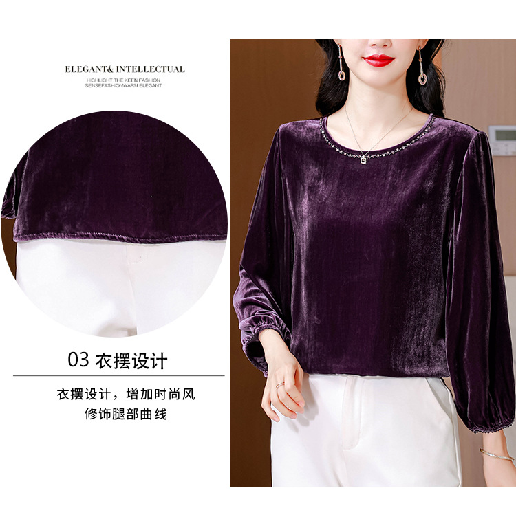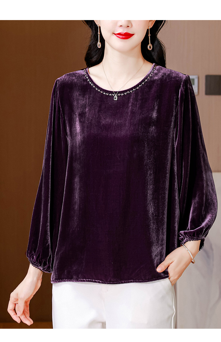 XMZ1220高端丝绒上衣女士长袖2025新款秋冬宽松打底妈妈洋气高贵小衫大码