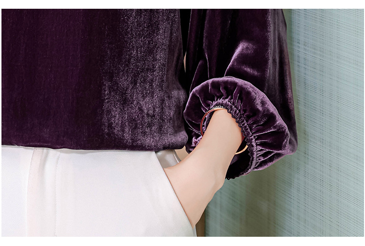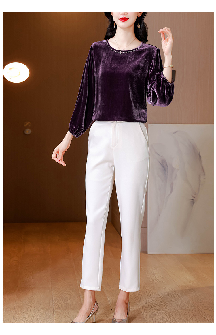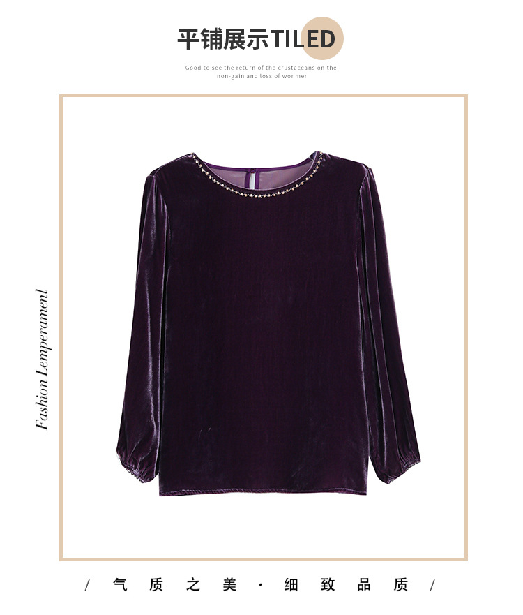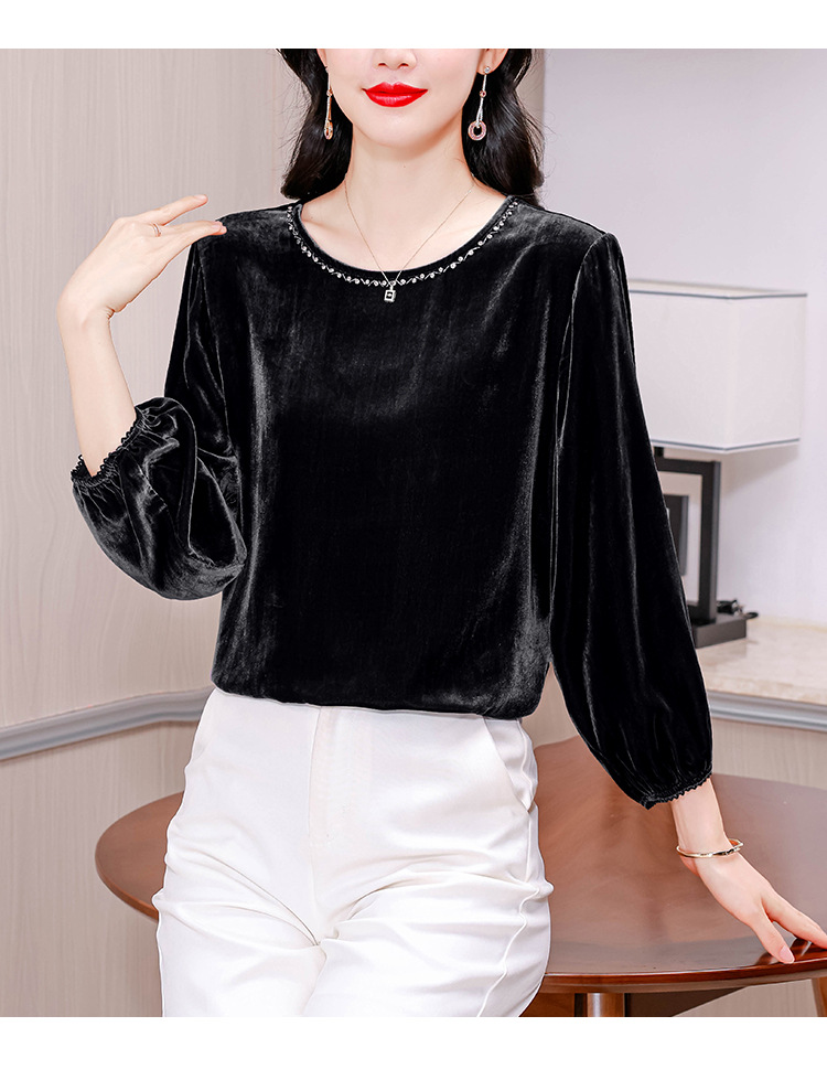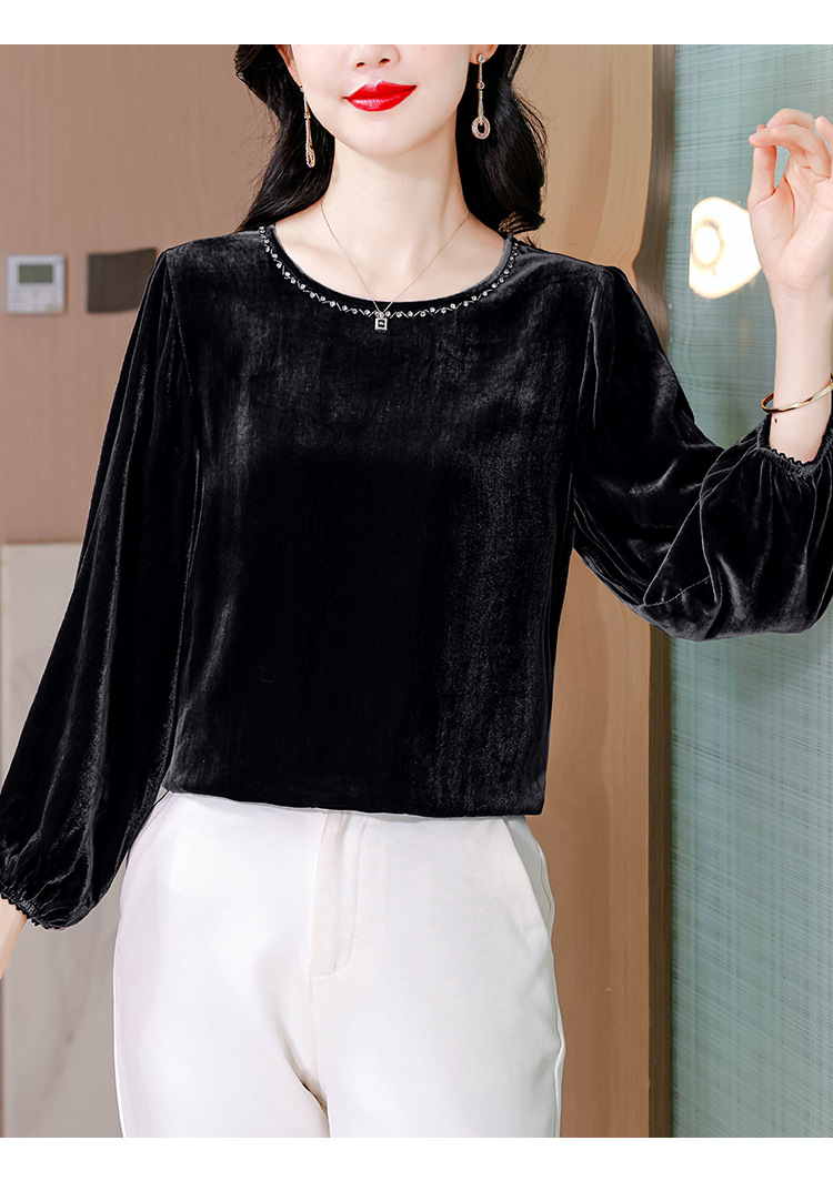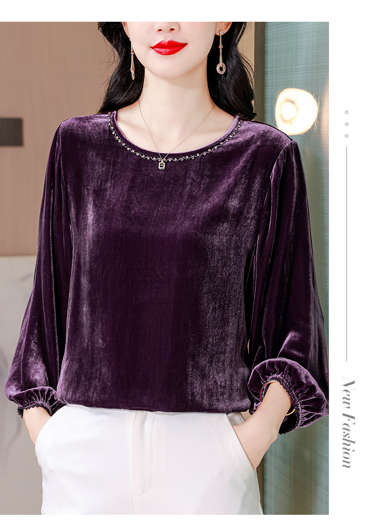 XMZ1220高端丝绒上衣女士长袖2025新款秋冬宽松打底妈妈洋气高贵小衫大码