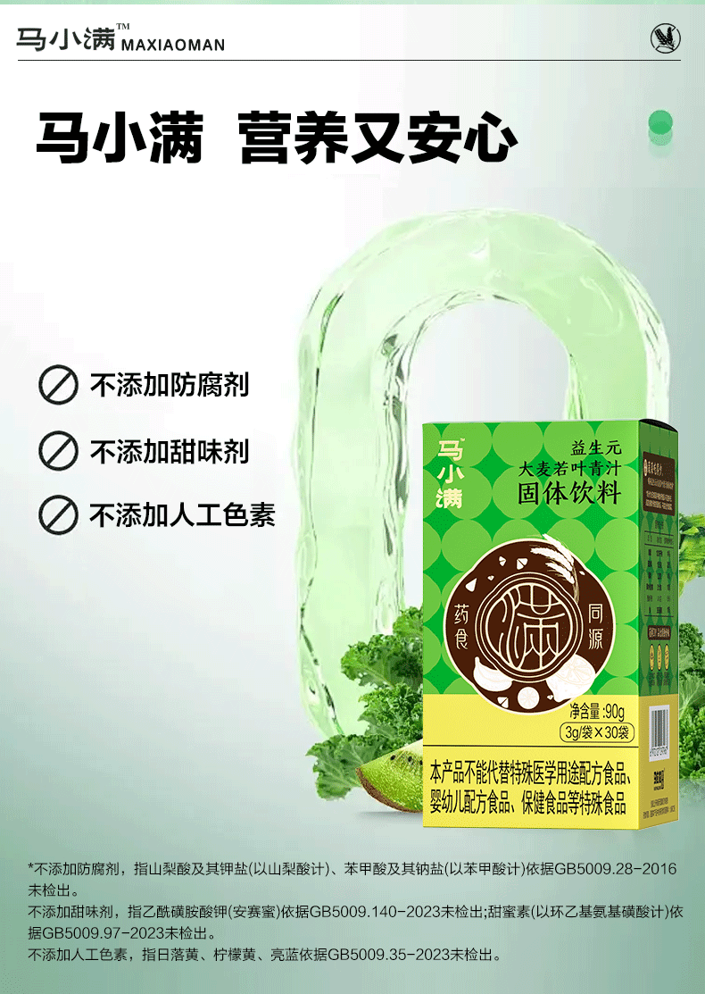 【马应龙-健康】马小满益生元大麦若叶青汁固体饮料150g