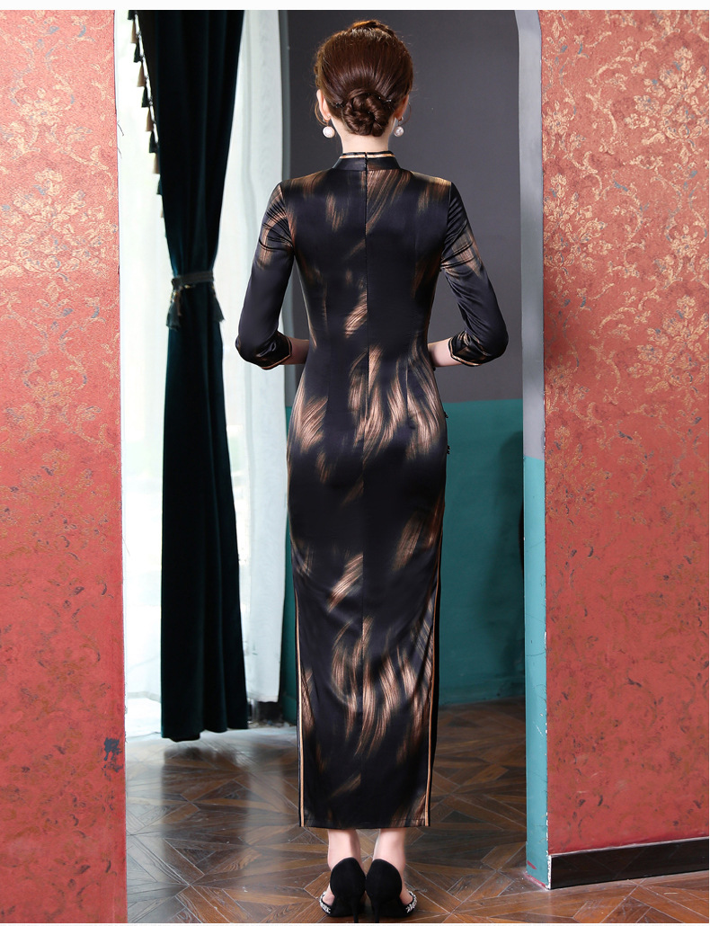 上海旗袍厂WX-2182秋款真丝旗袍新款高贵长款中袖女夏桑蚕丝改良复古气质