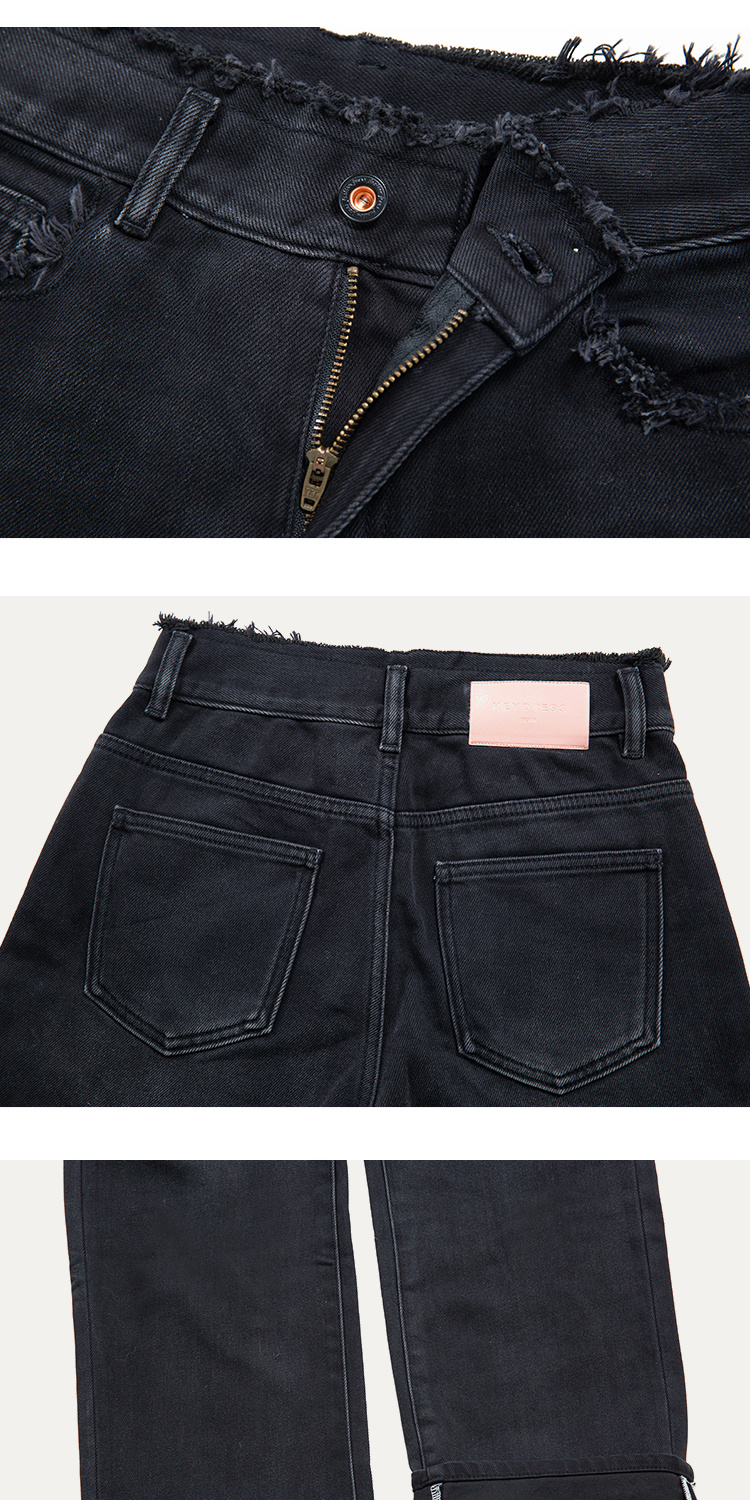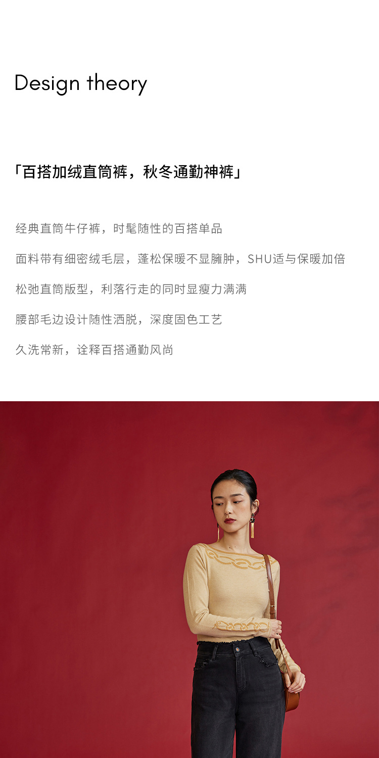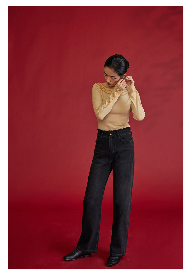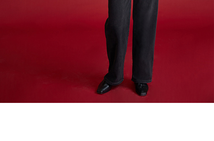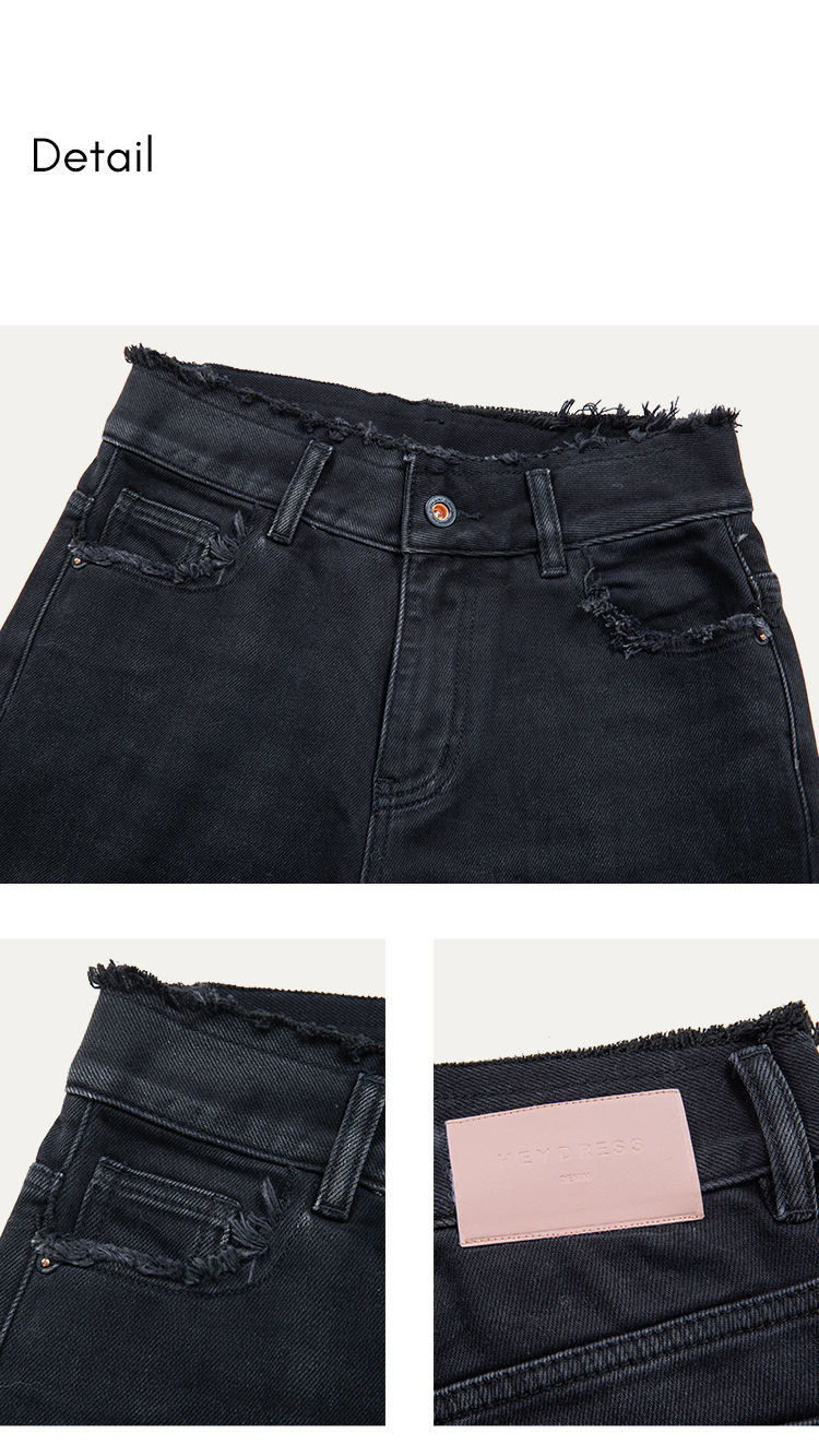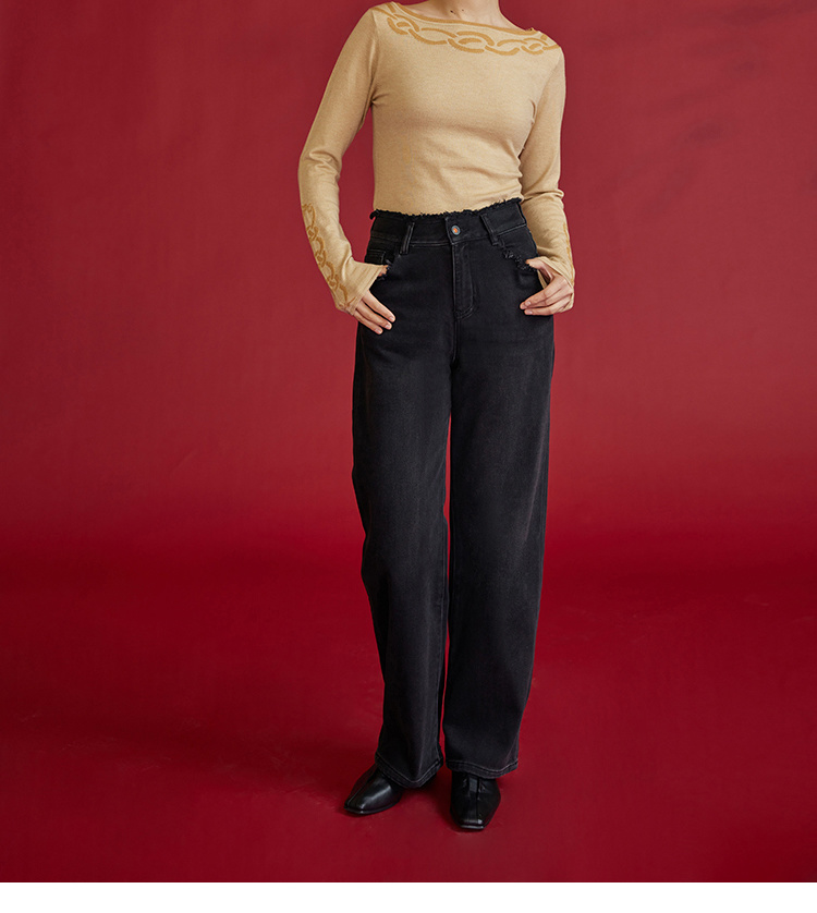 HeyDress加绒牛仔裤女冬季高腰显瘦毛边直筒裤黑色长款休闲裤子