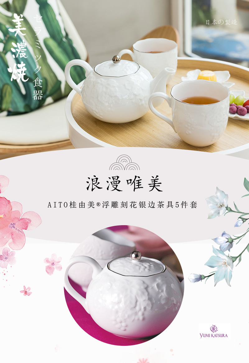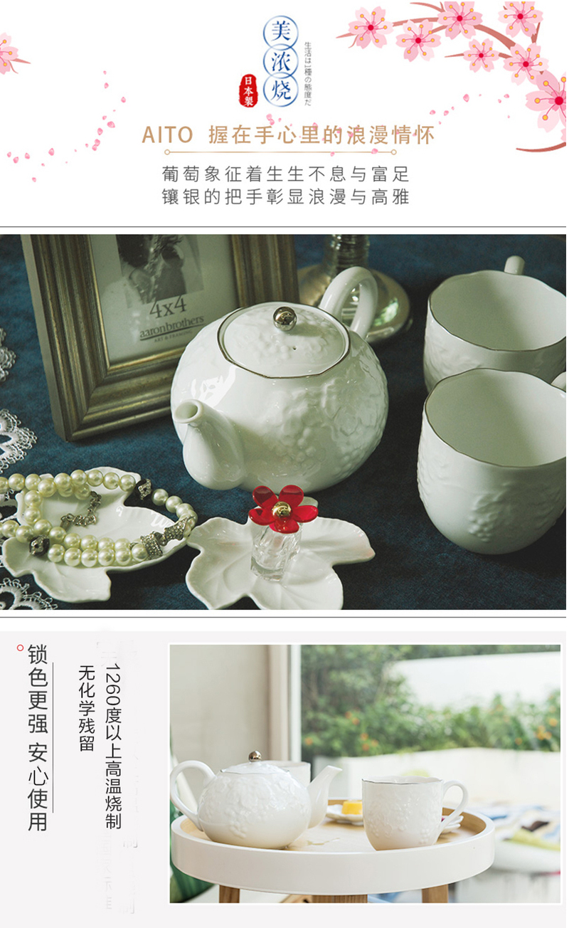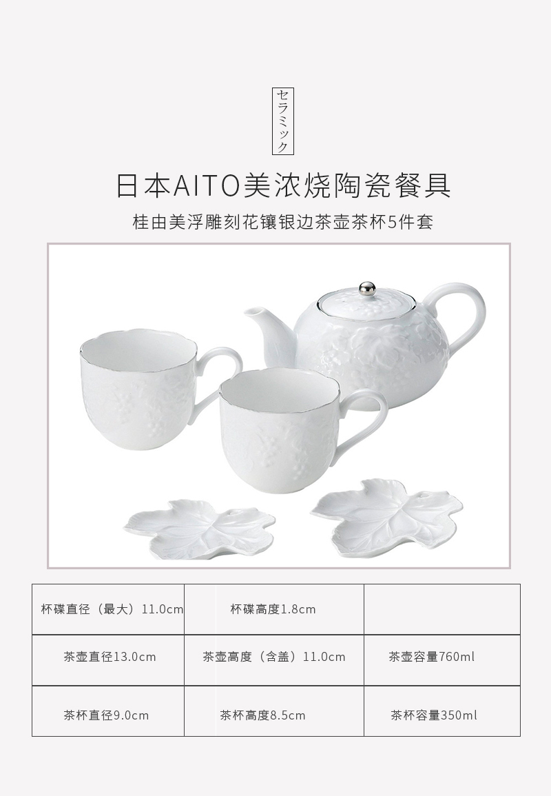 日本原产AITO桂由美浮雕美浓烧陶瓷茶壶茶杯葡萄刻花5件