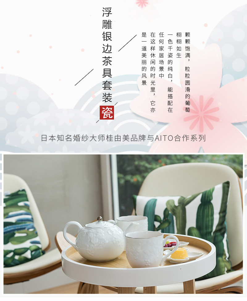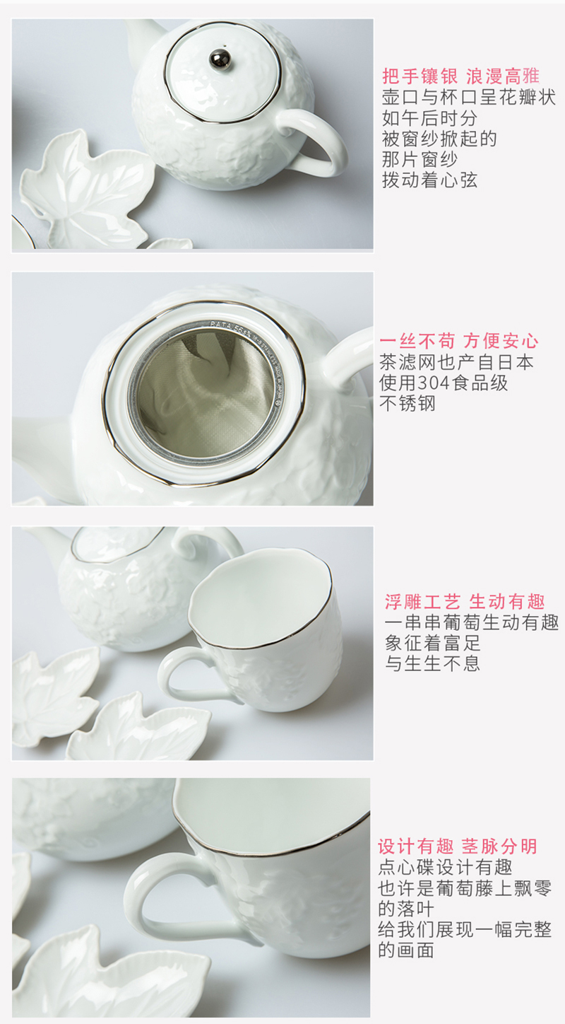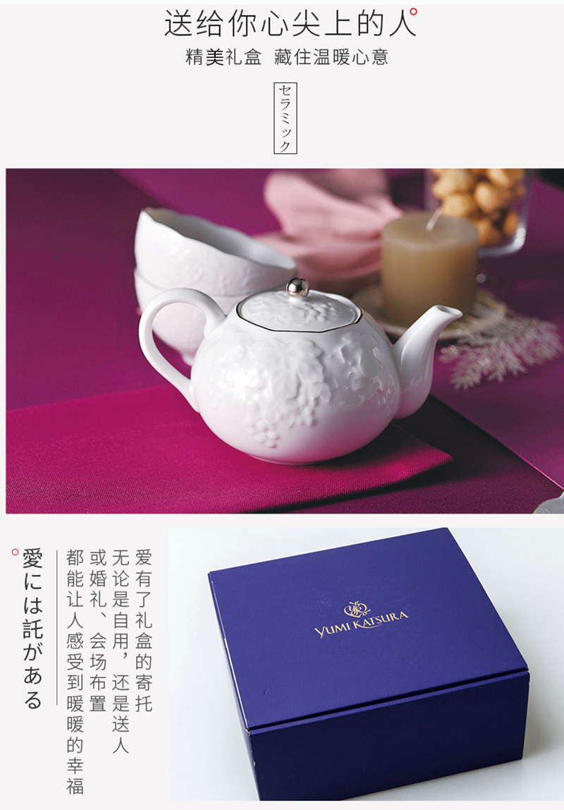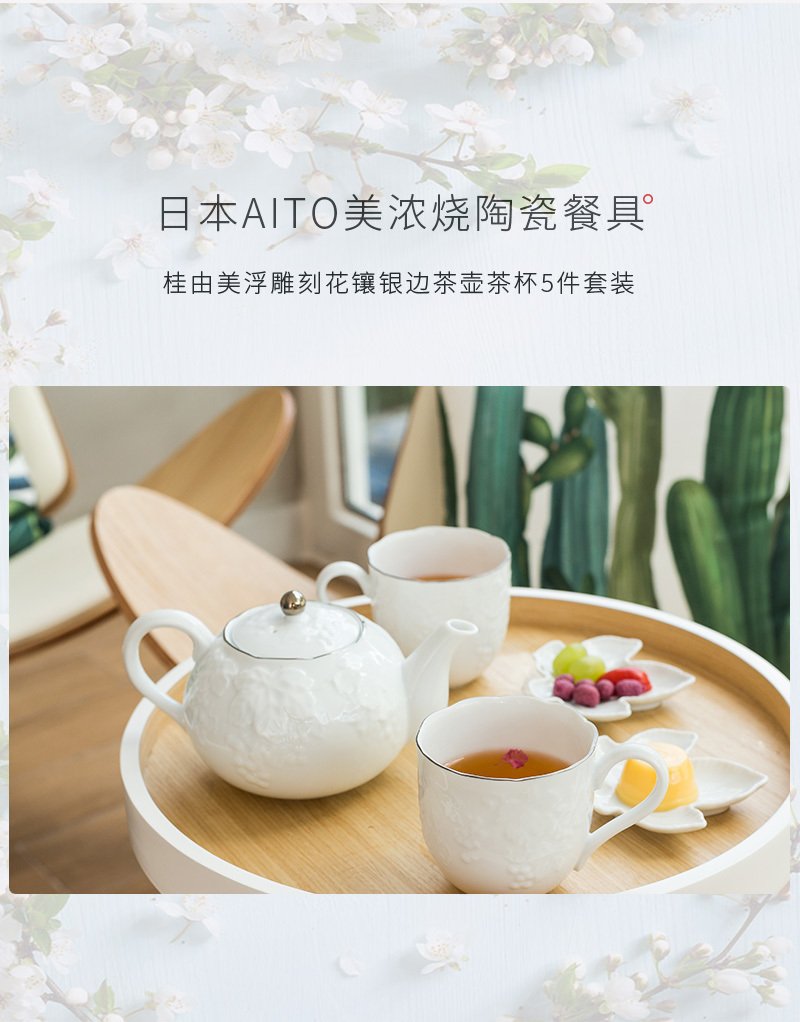 日本原产AITO桂由美浮雕美浓烧陶瓷茶壶茶杯葡萄刻花5件