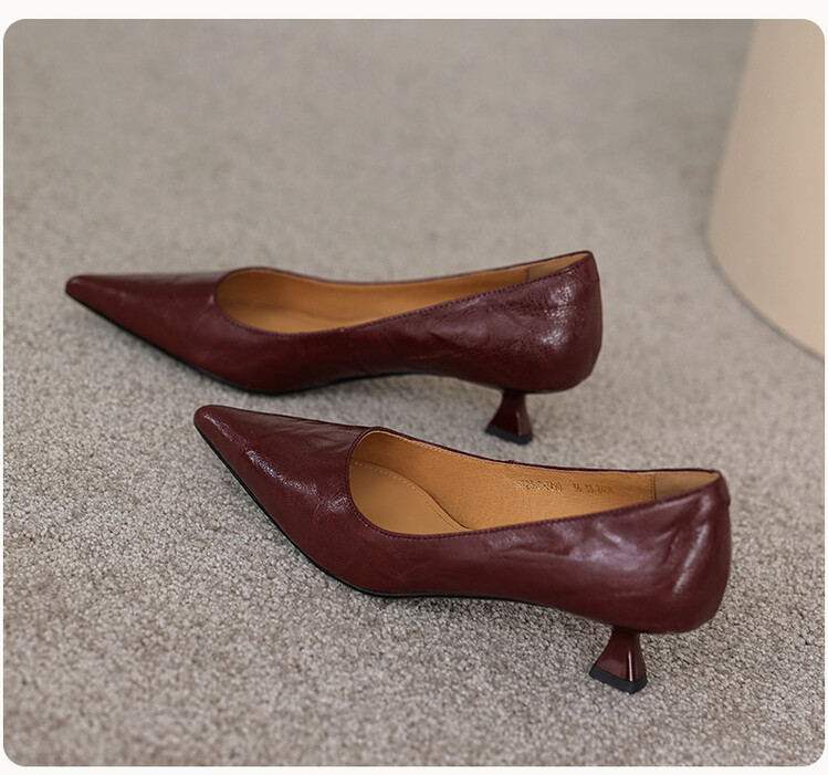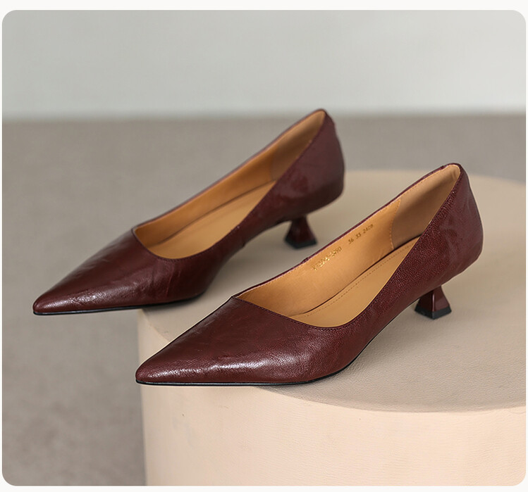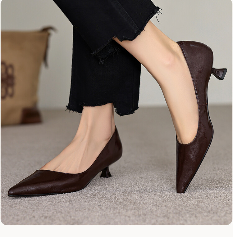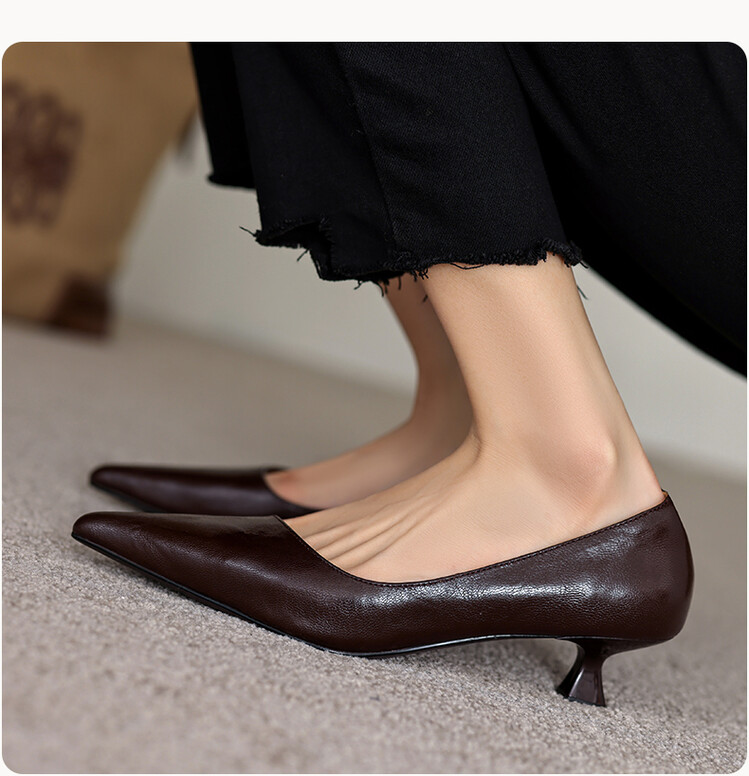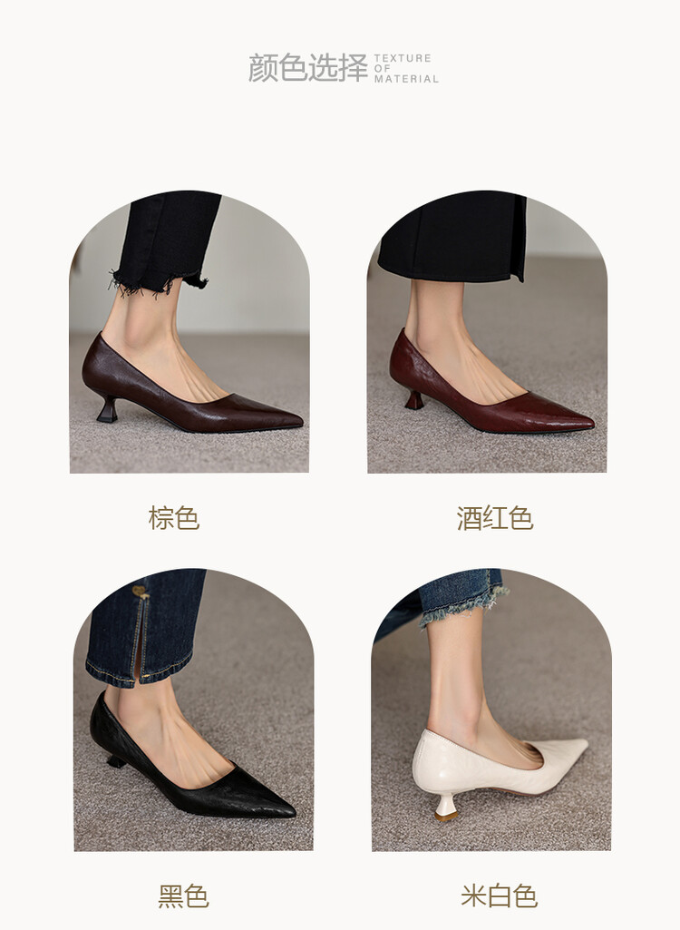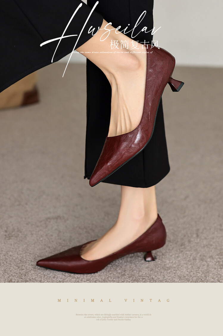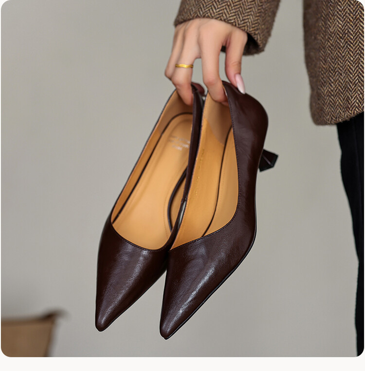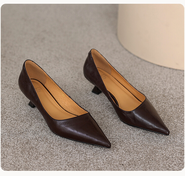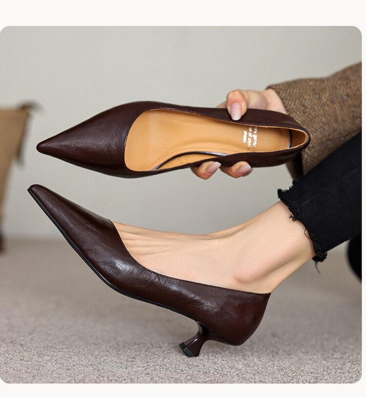 【预售5天】里外全皮!尖头复古低跟棕色单鞋女新款细跟夏季气质中跟小高跟鞋HB&Z490