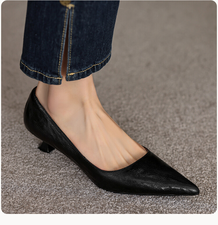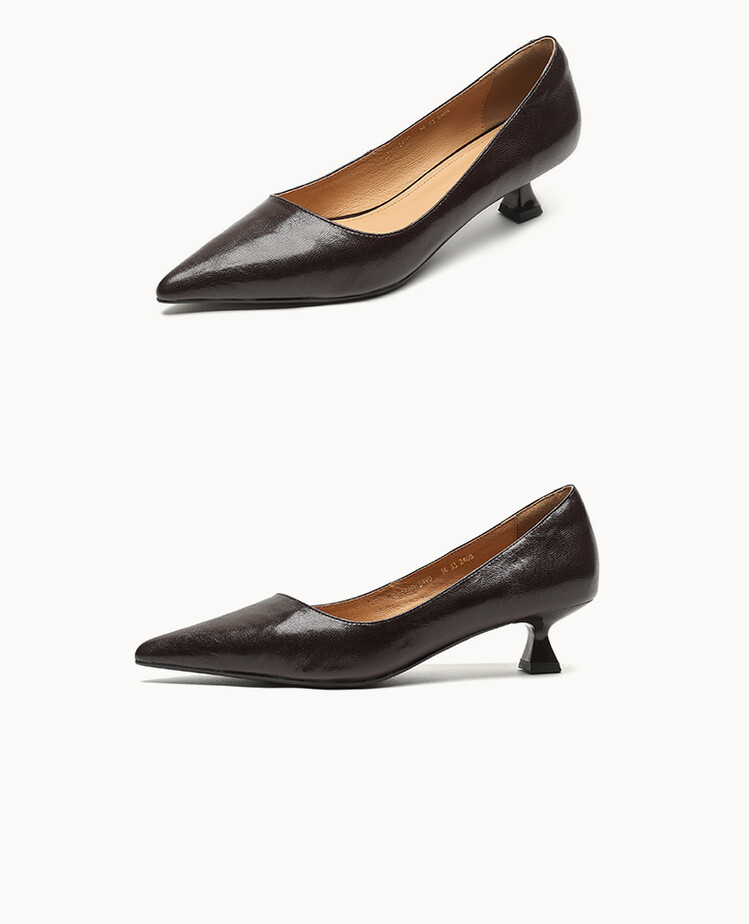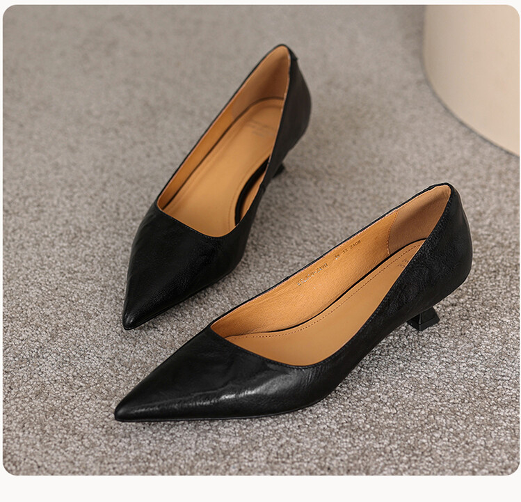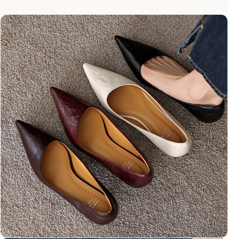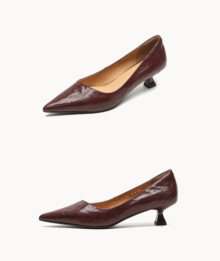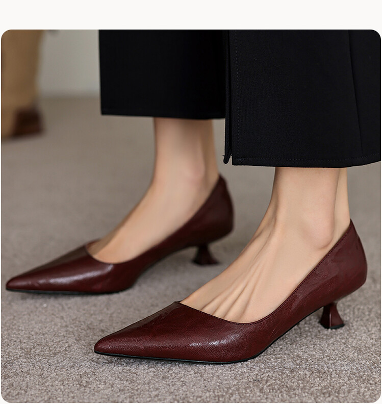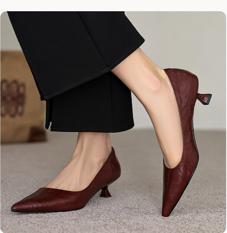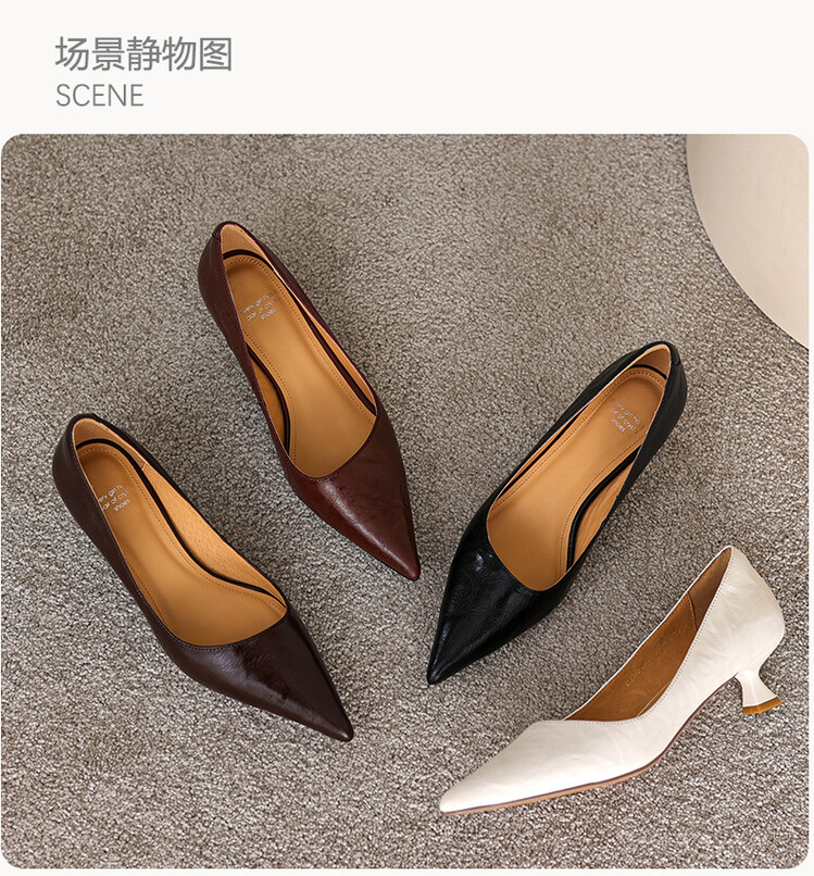 【预售5天】里外全皮!尖头复古低跟棕色单鞋女新款细跟夏季气质中跟小高跟鞋HB&Z490