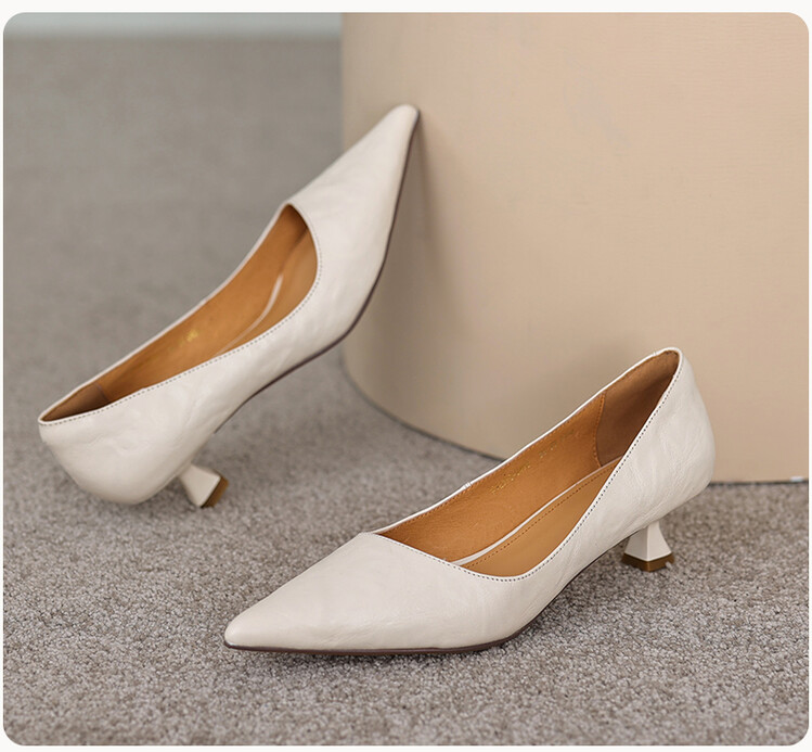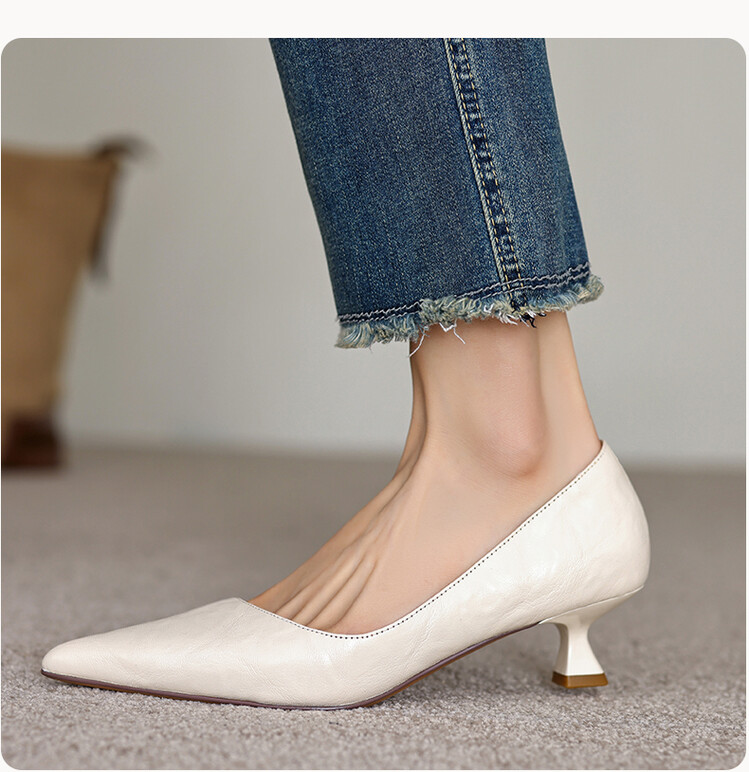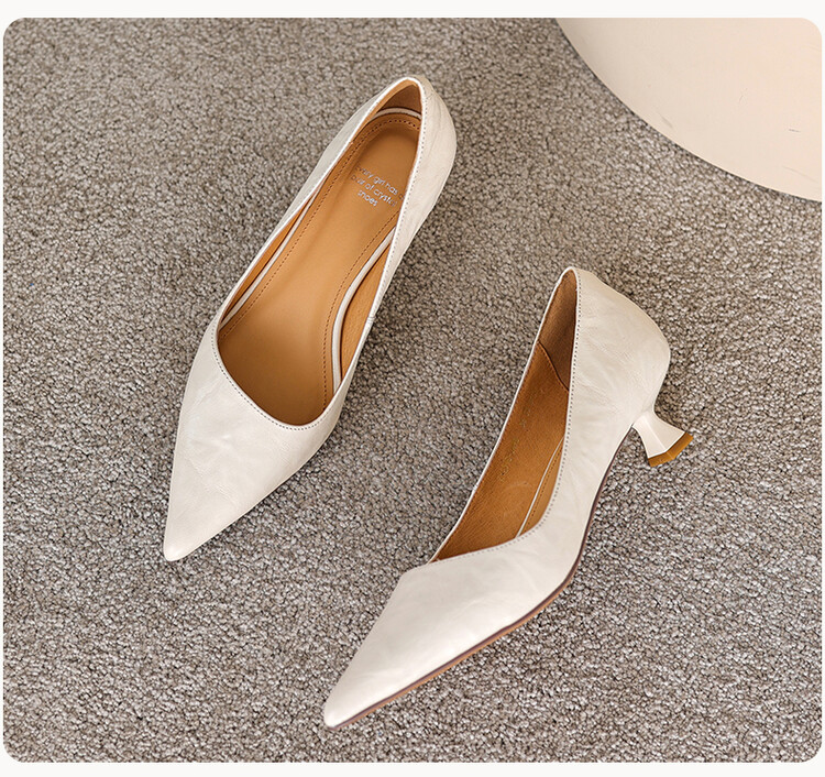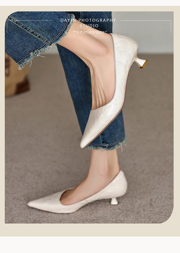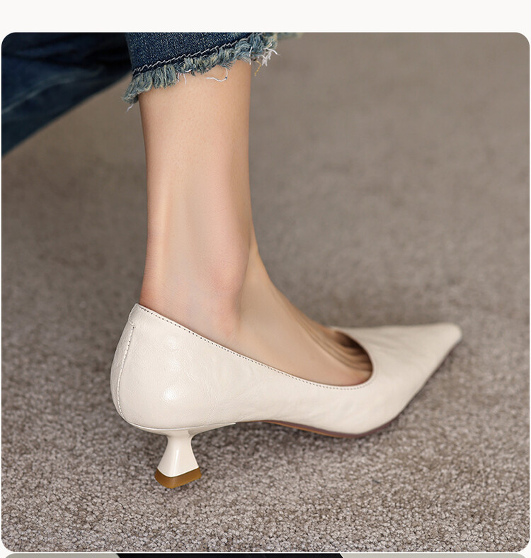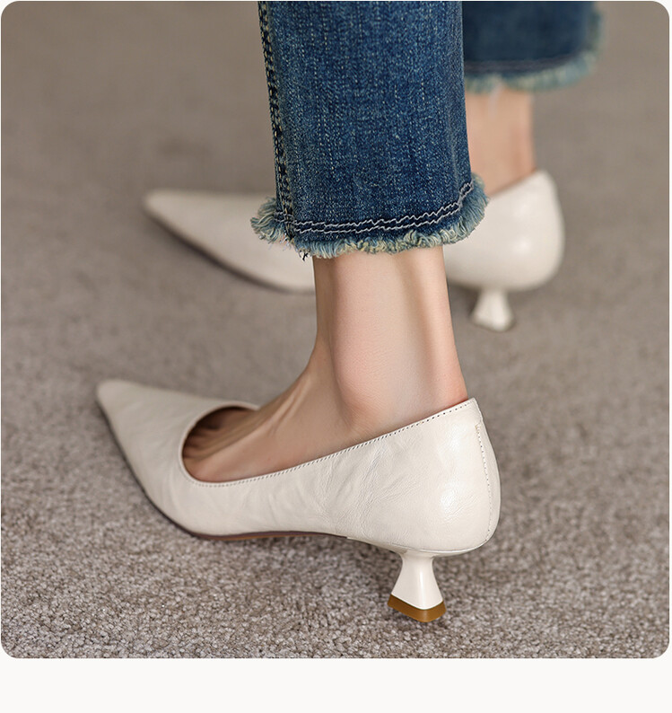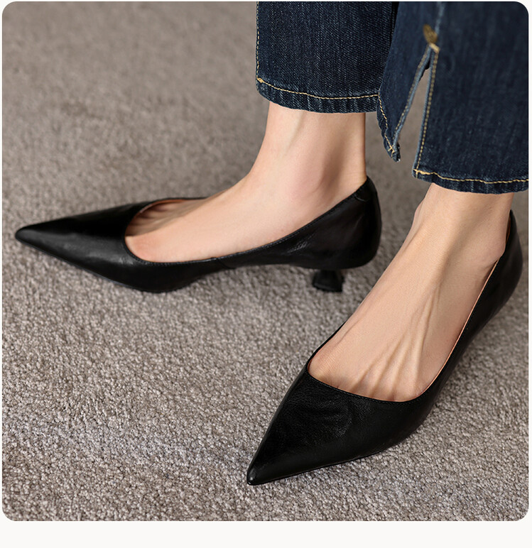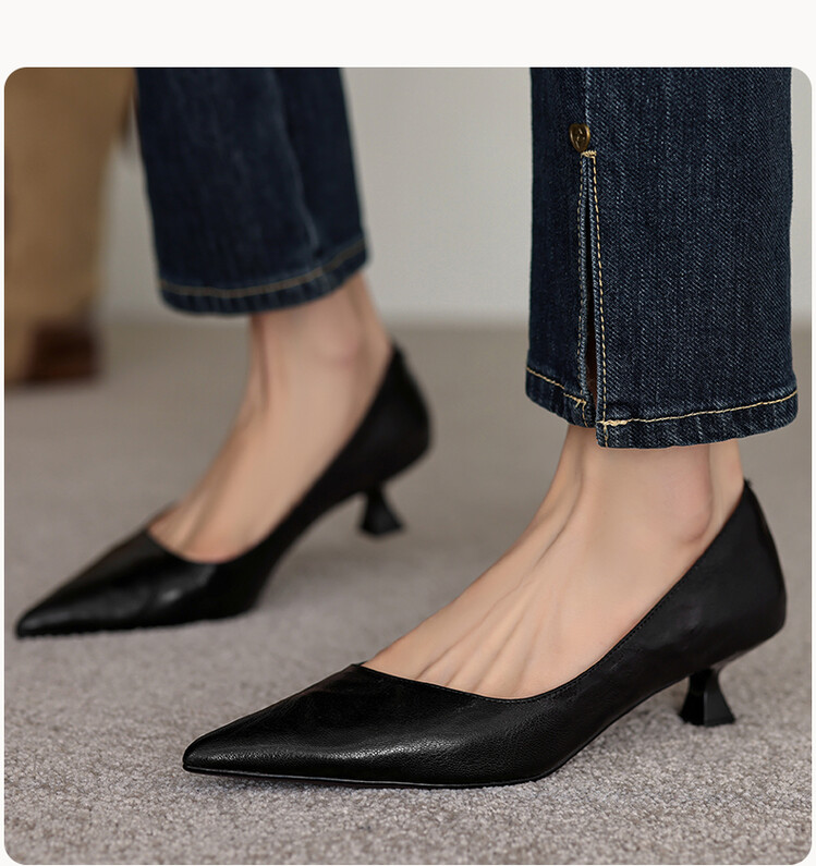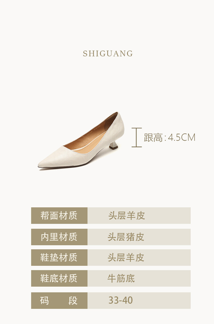 【预售5天】里外全皮!尖头复古低跟棕色单鞋女新款细跟夏季气质中跟小高跟鞋HB&Z490