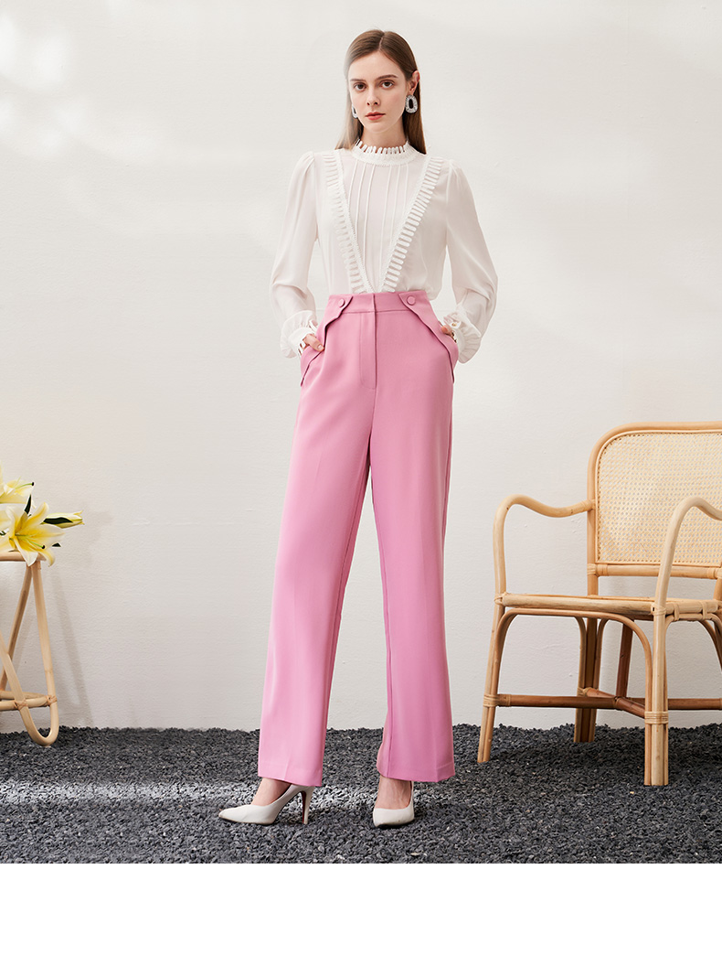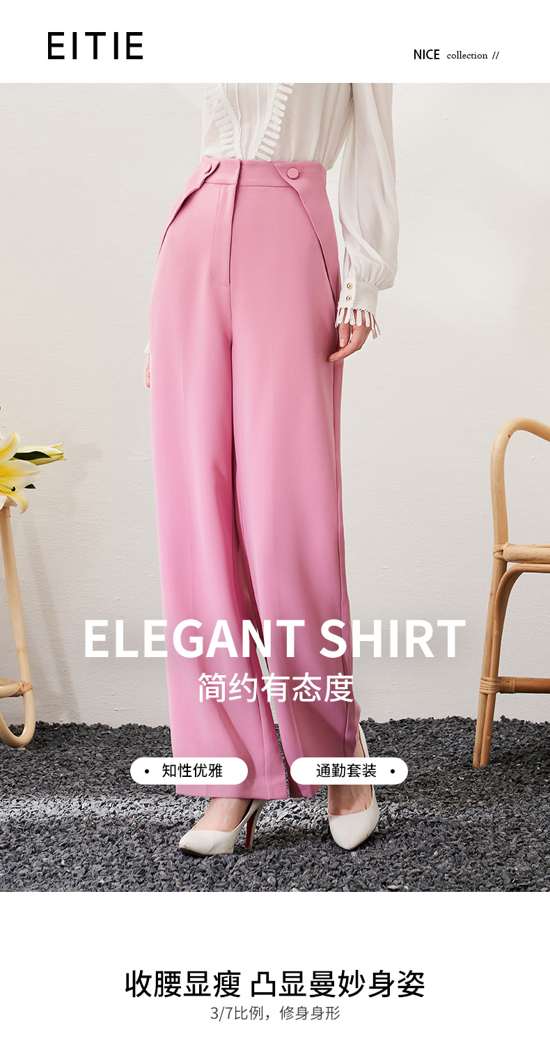 EITIE爱特爱春季新款修身显瘦百搭高腰直筒西装裤子休闲裤6905603