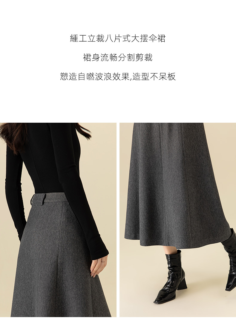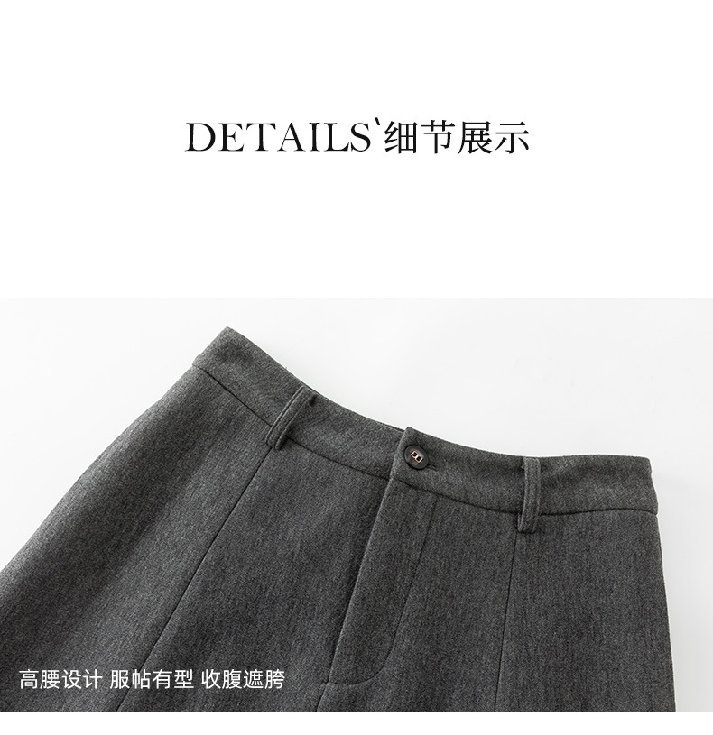 百媚生 醋酸羊毛时尚法式高腰显瘦灰色长款A字伞裙半身裙女64683