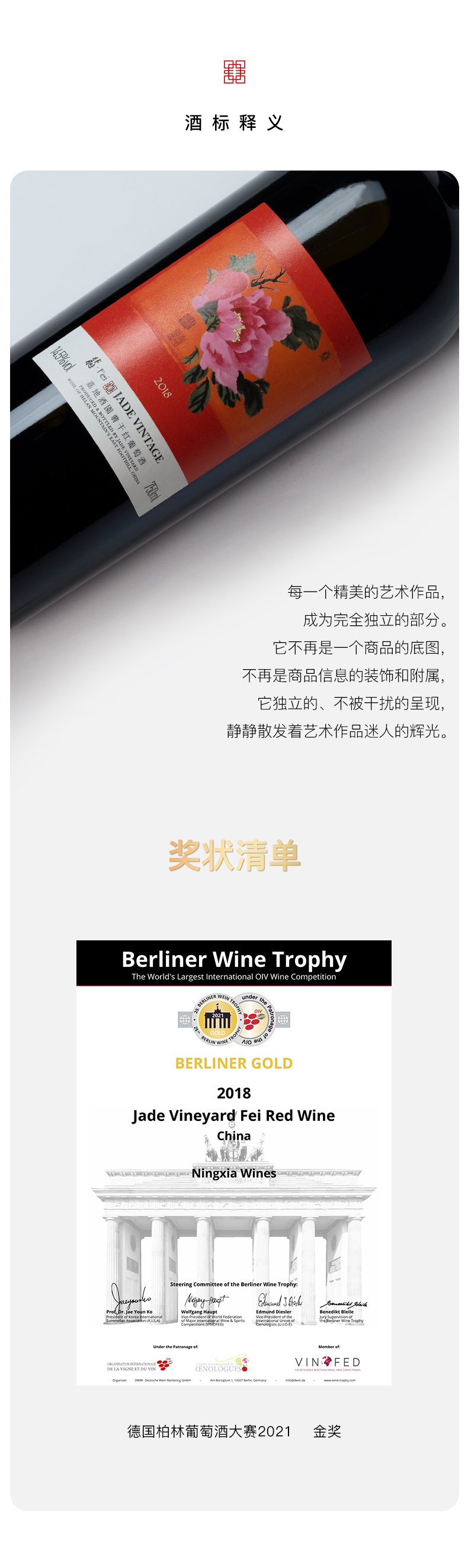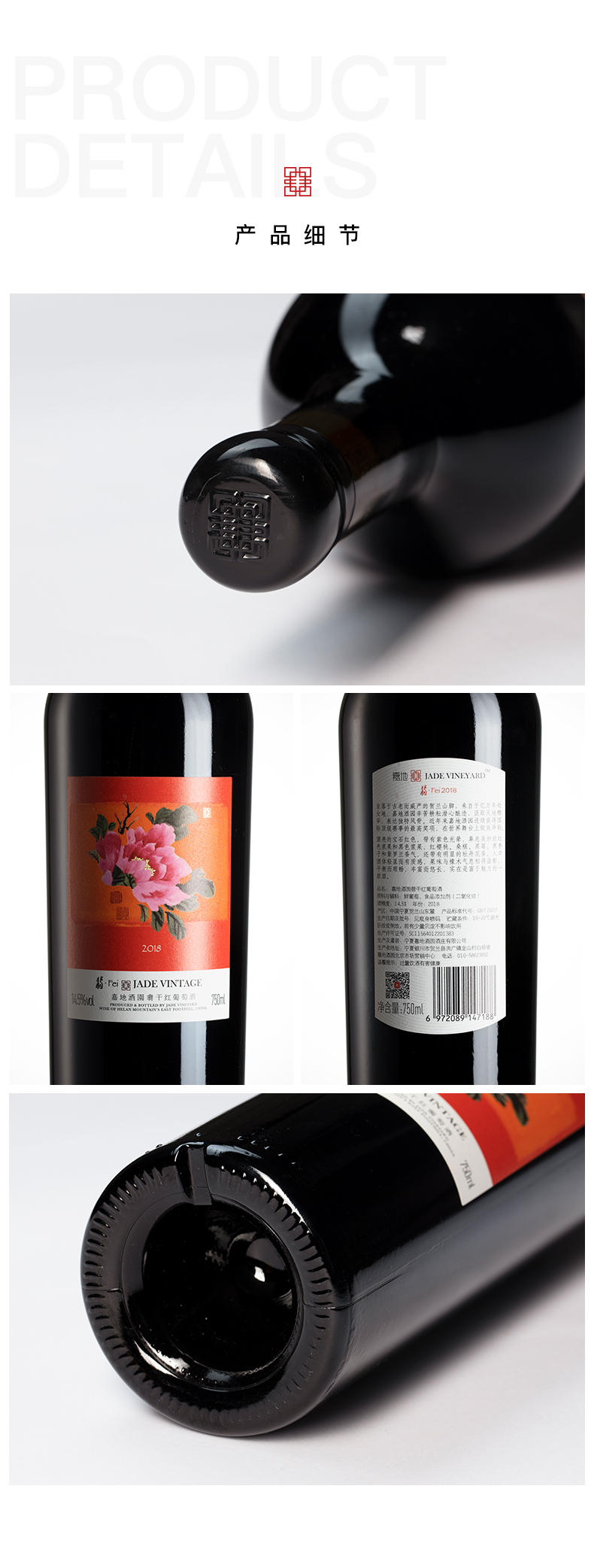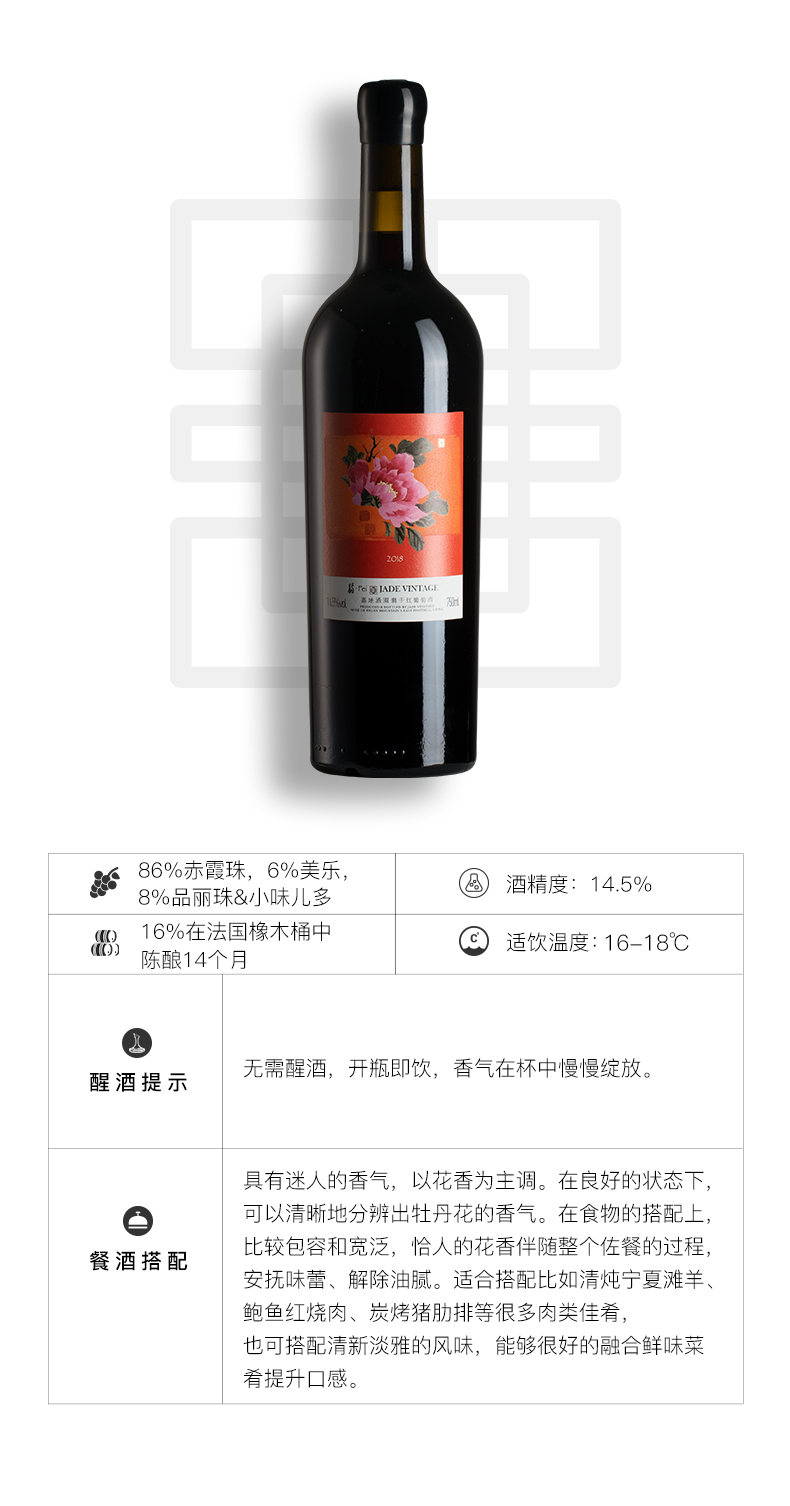 嘉地酒园翡干红葡萄酒2018年赤霞珠梅洛混酿750ML