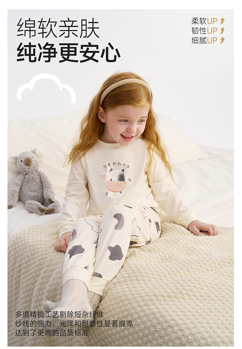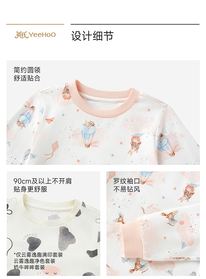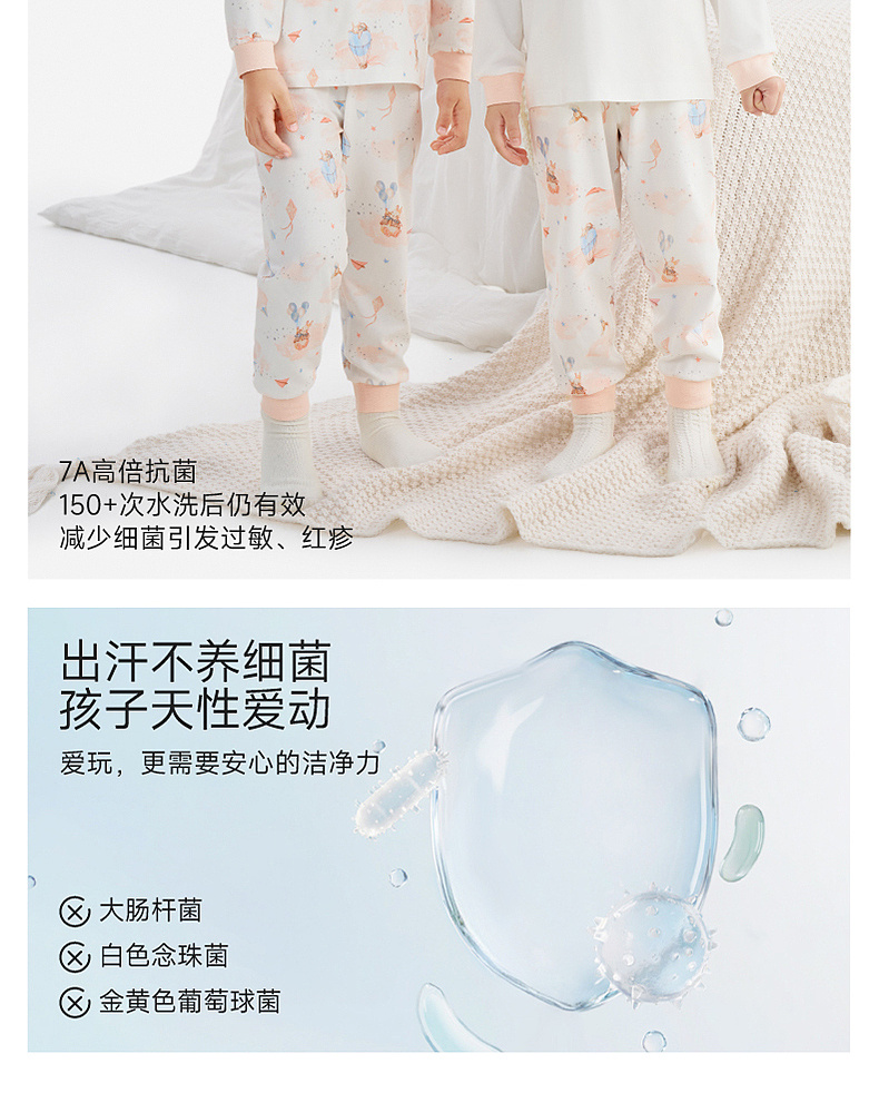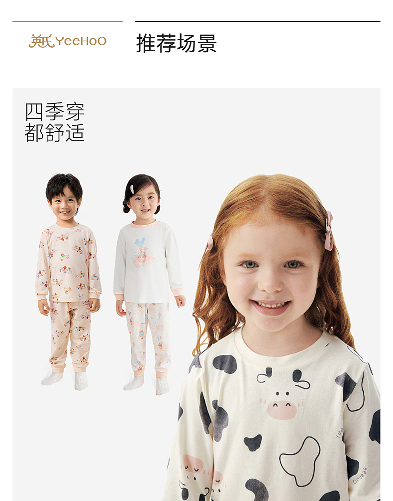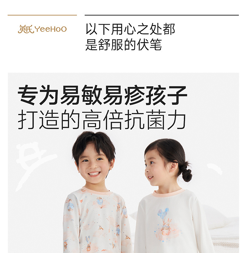 【7A抗菌+优可丝】英氏儿童家居服套装优可丝男童秋衣秋裤女童宝宝睡衣