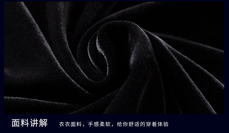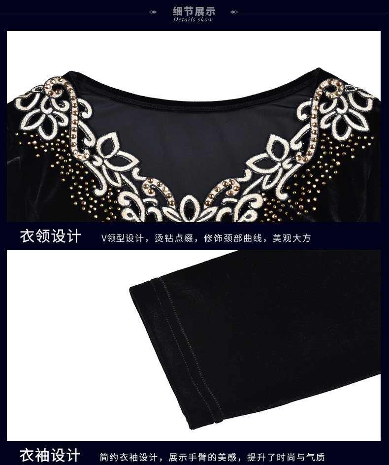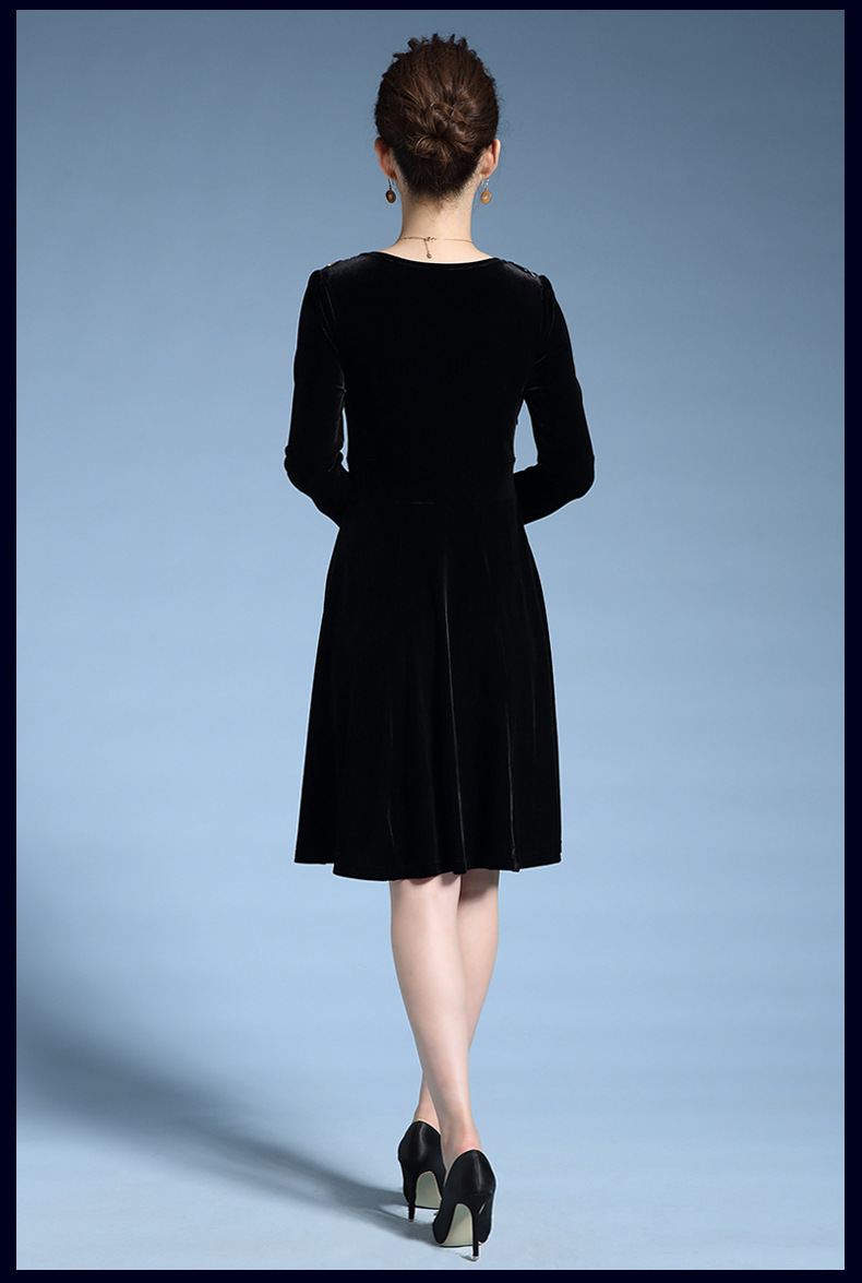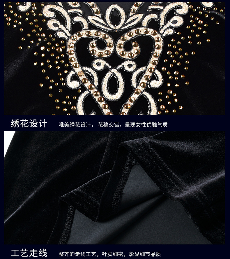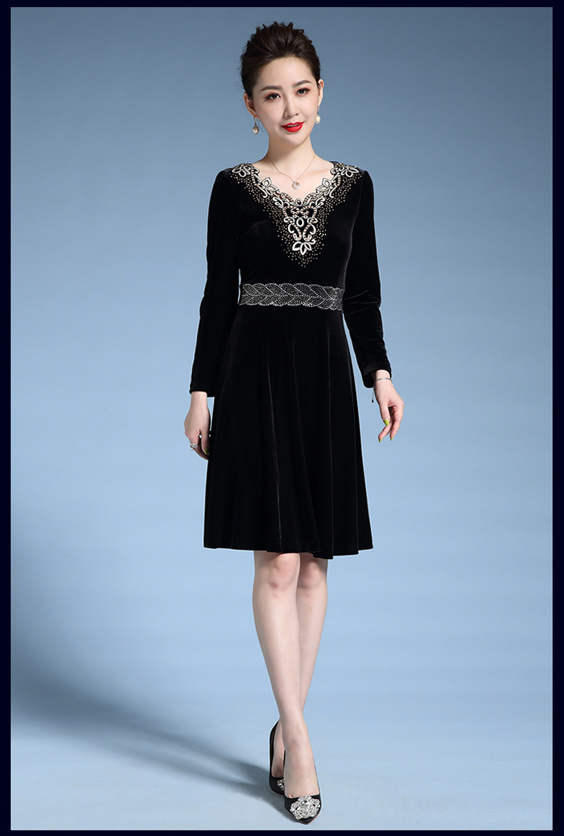 MY-69198丝绒连衣裙大码V领绣花大摆裙