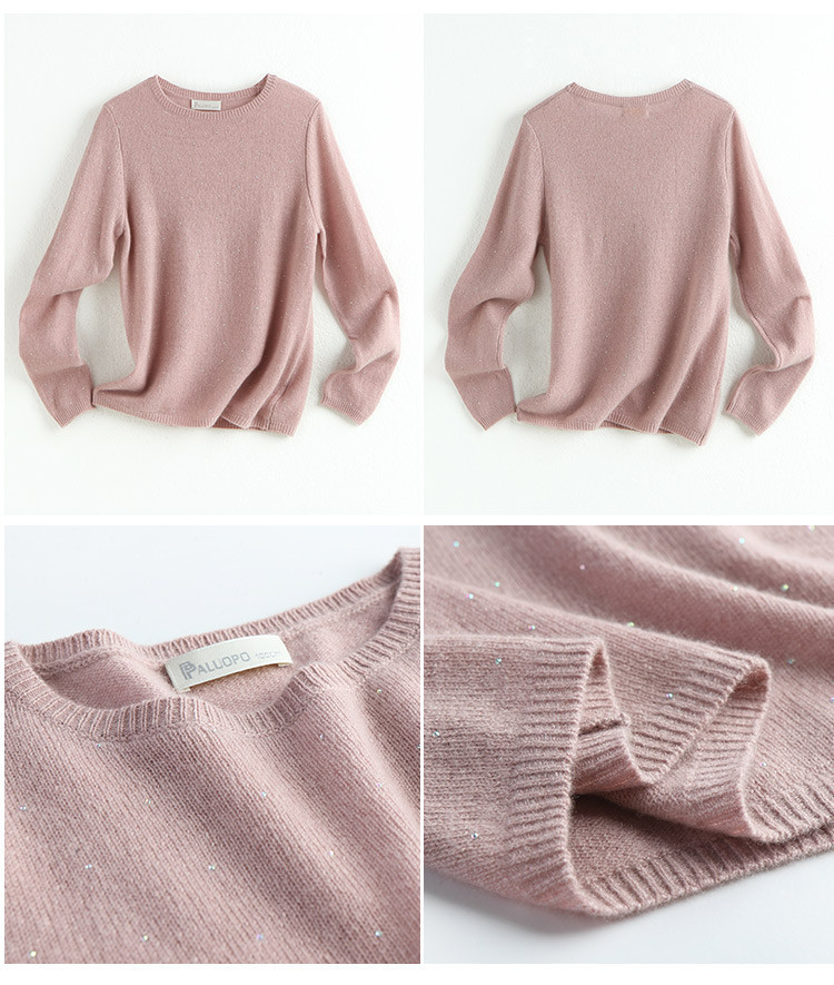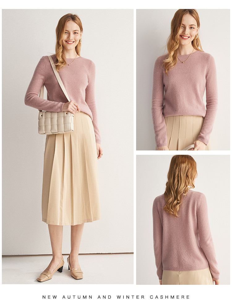 【咕咕同款】PALUOPO/PL100% 山羊绒圆领女款奶茶粉色 细闪 羊绒衫ET20008R-C1帕罗