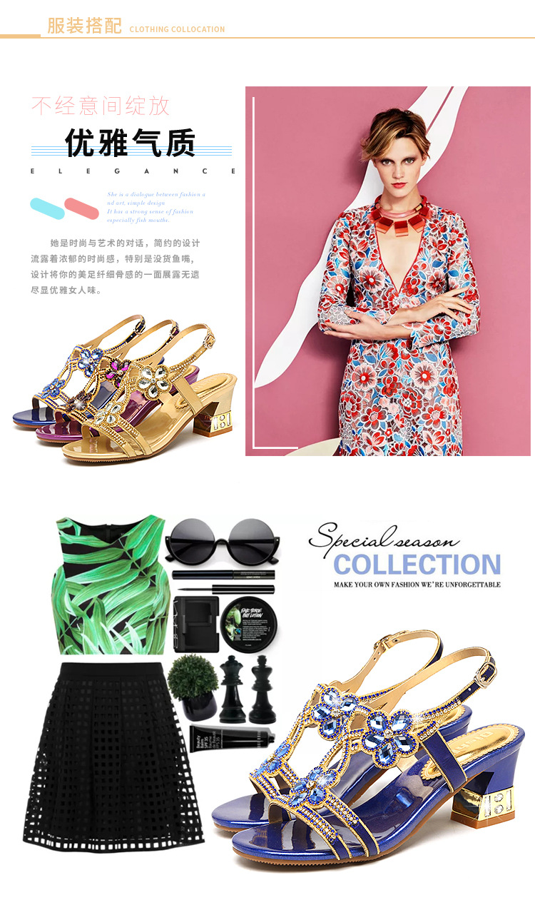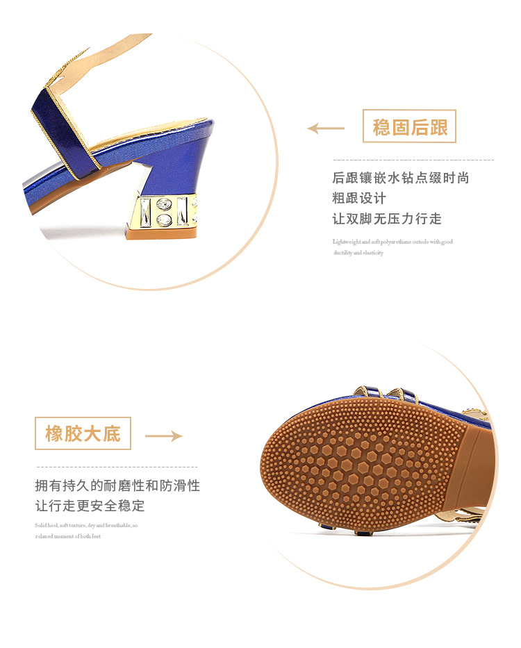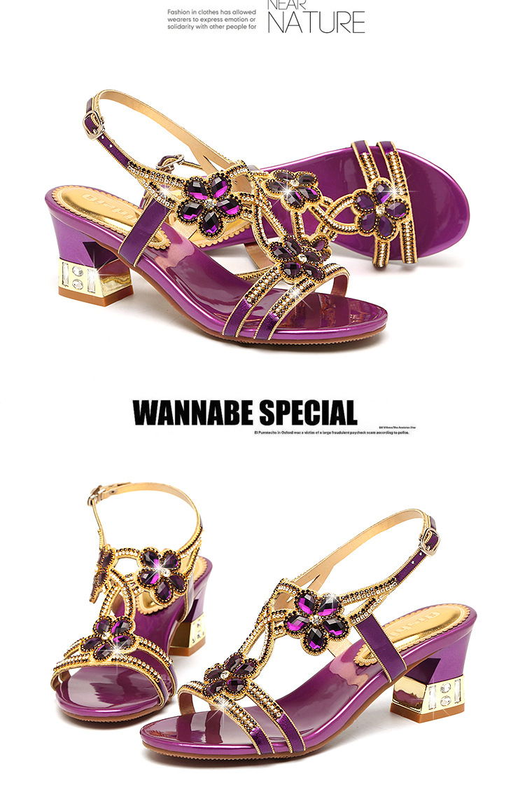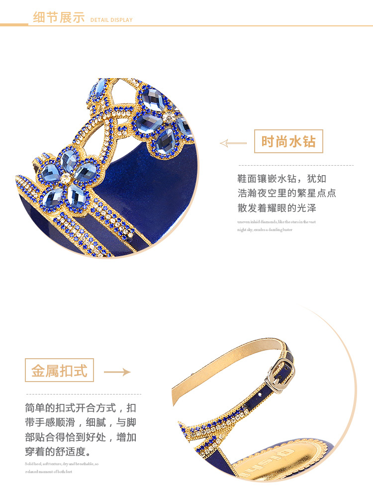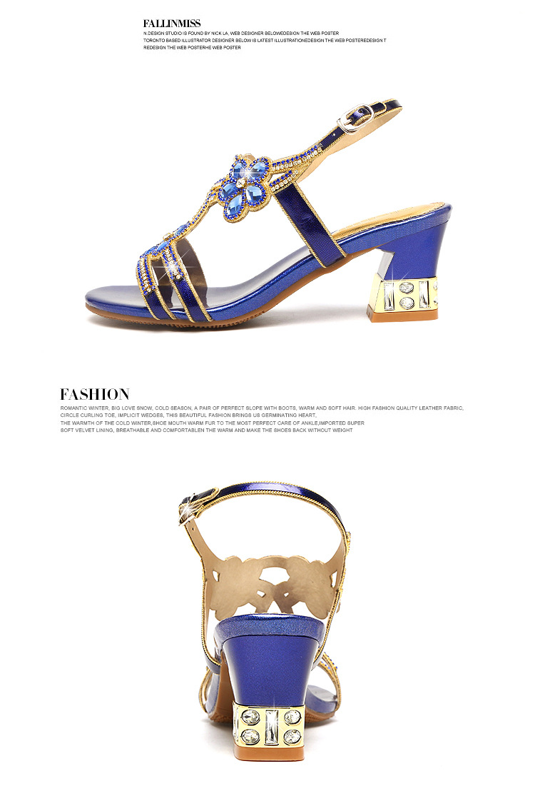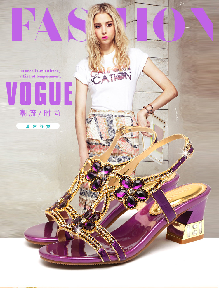 新款水钻平底低跟高跟凉鞋粗跟花朵百搭凉鞋LXa0