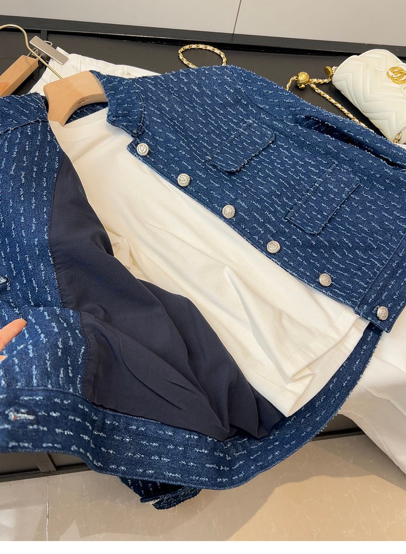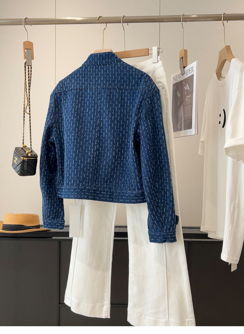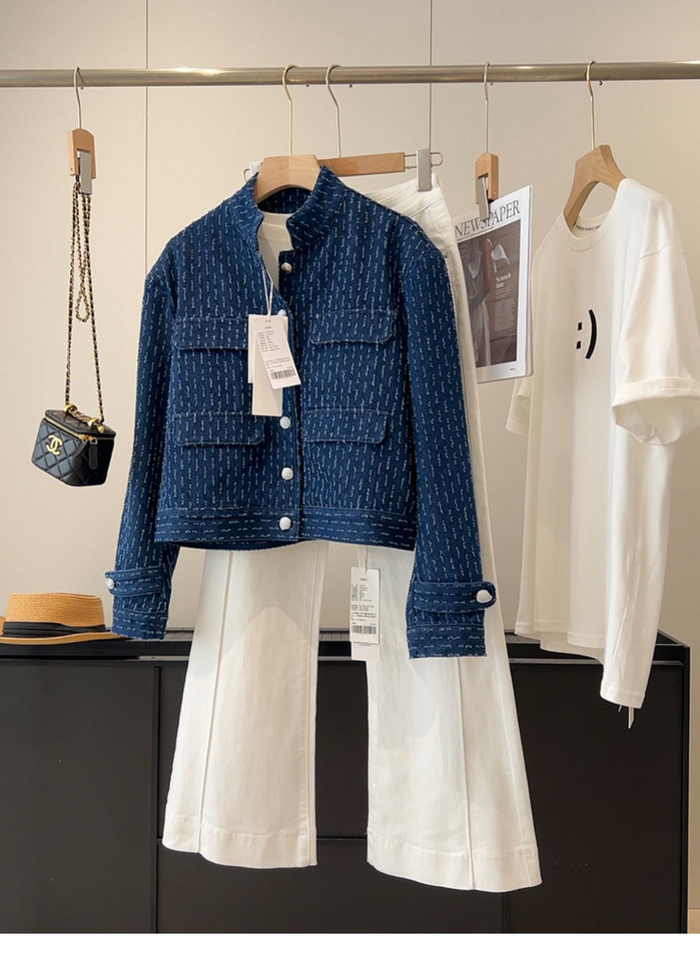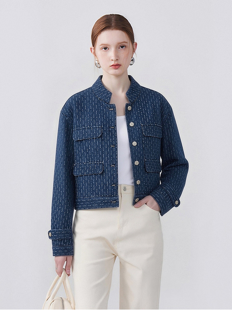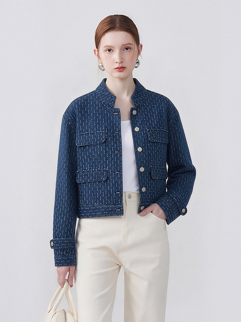 天猫同步【老钱调调~】拉夏贝尔/La Chapelle简约设计立领排扣肌理感小香外套百搭个性牛仔夹克上衣