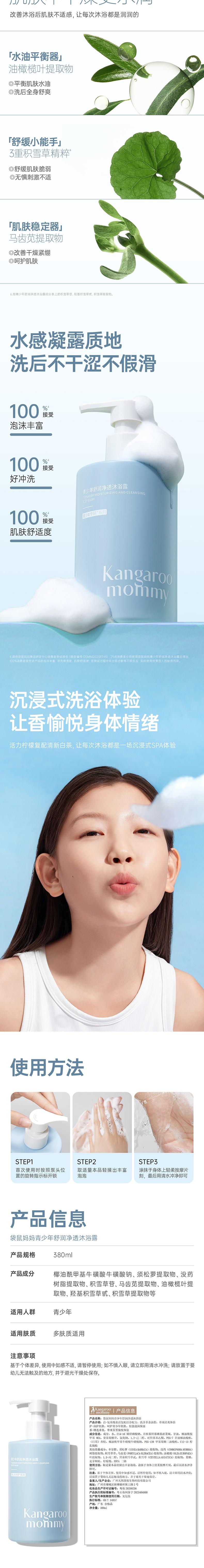 袋鼠妈妈 青少年舒润净透沐浴露380ml A100176505