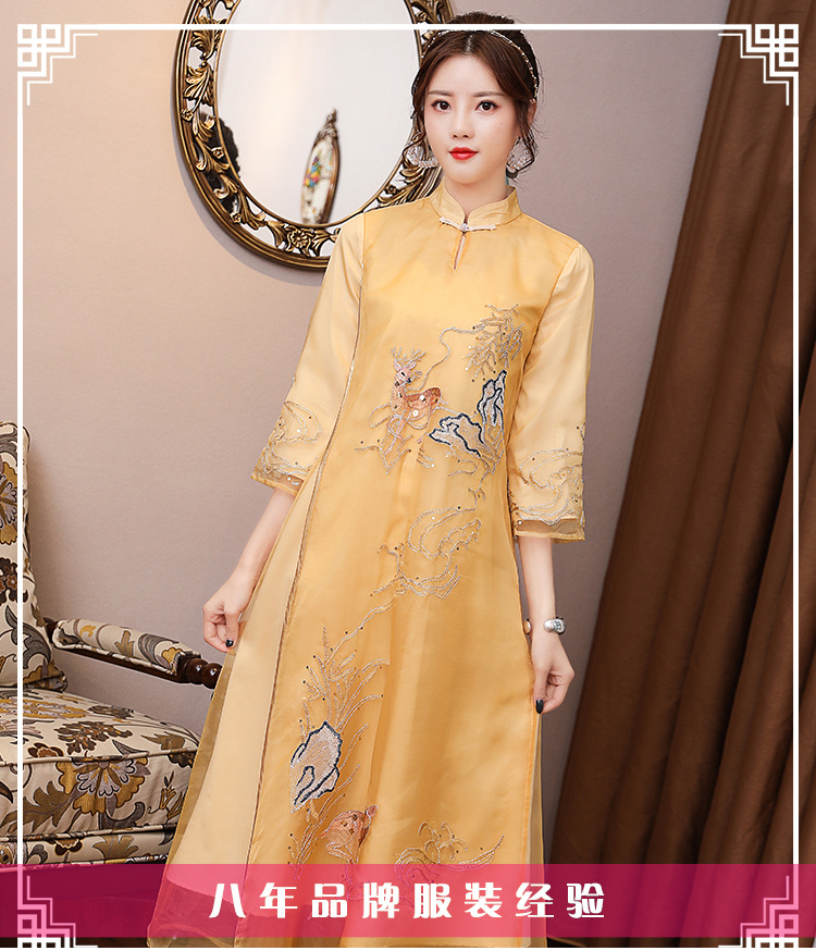 MW-4DT2020爆款2020夏新款刺绣改良旗袍连衣裙