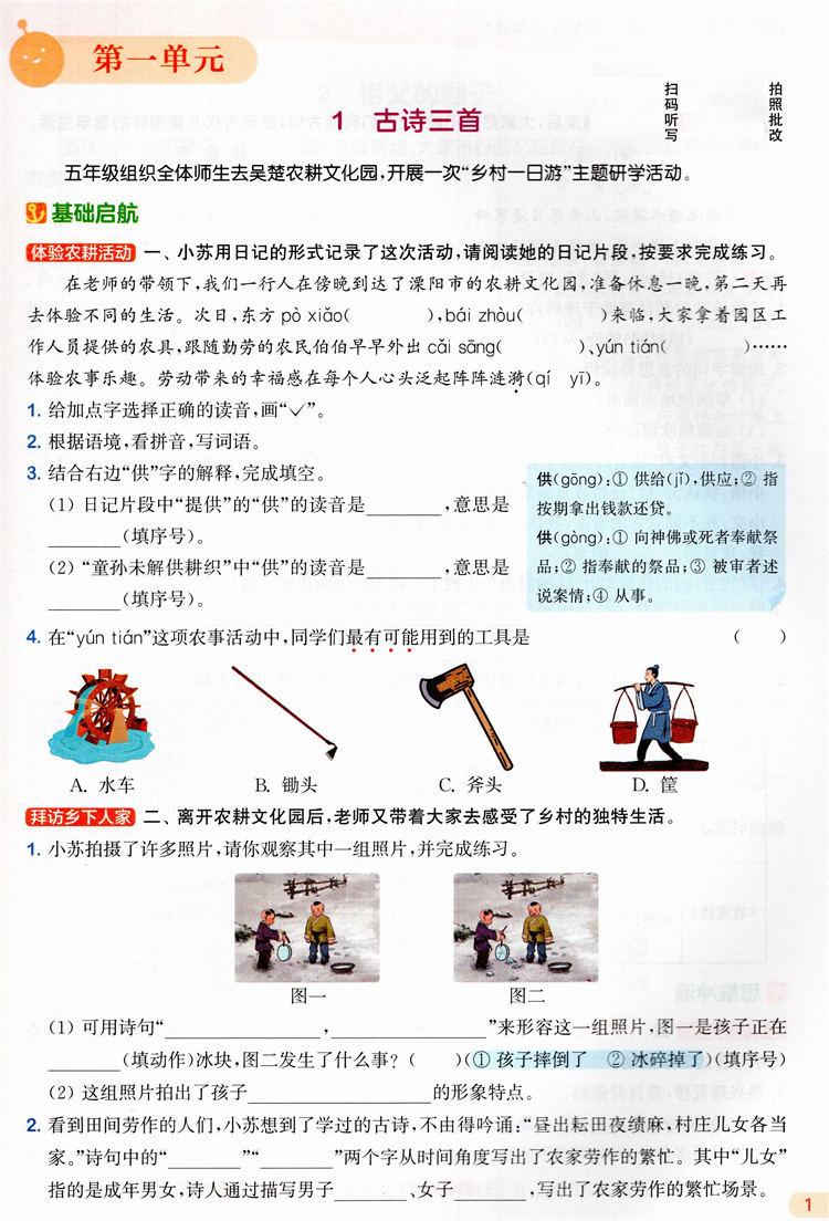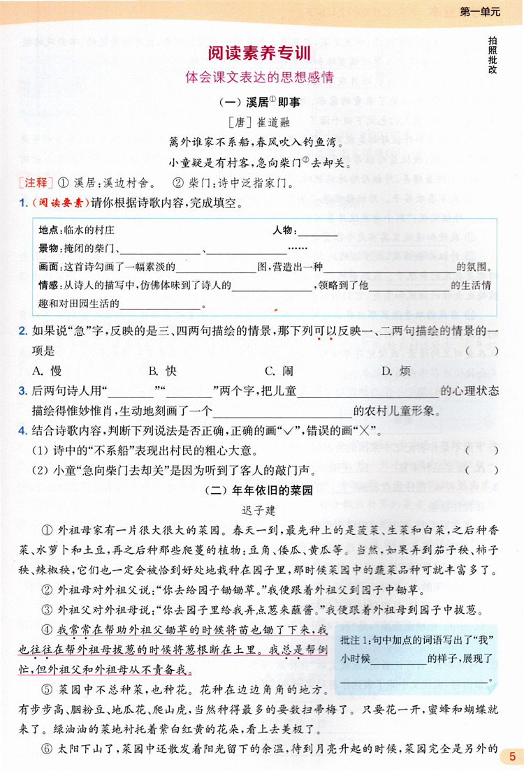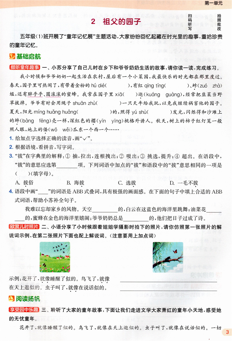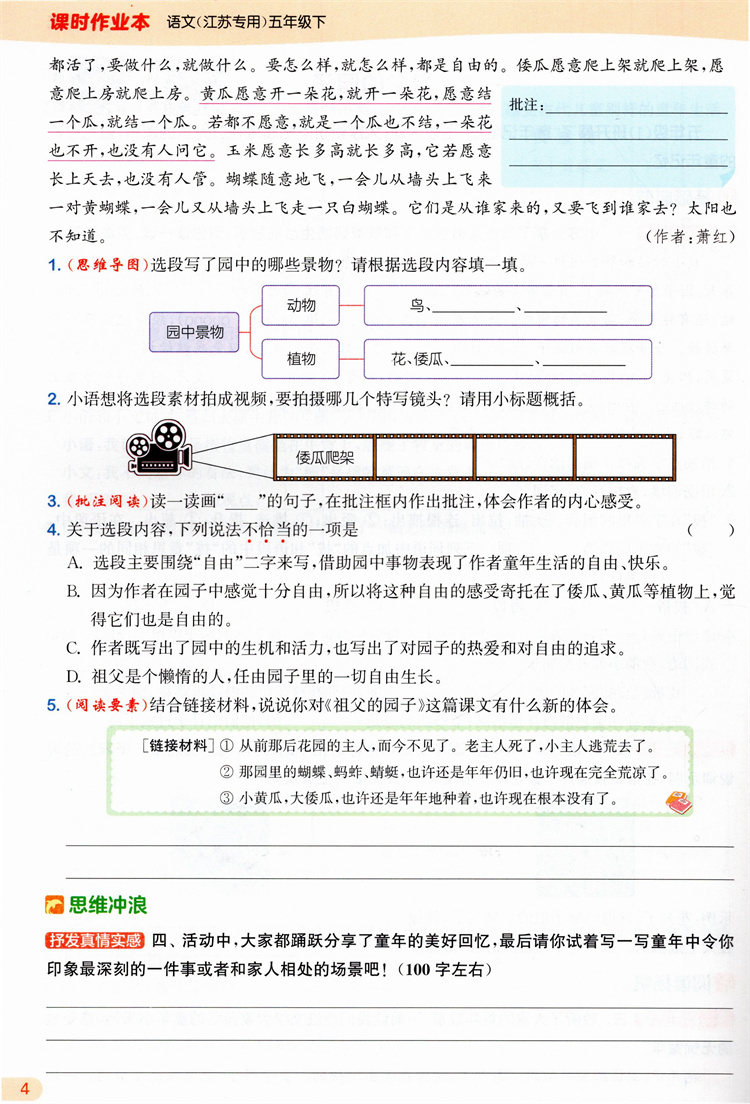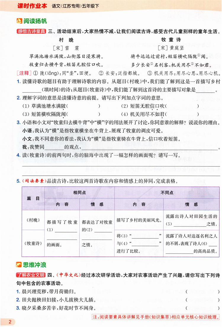 2026年春 语文课时作业本5下 配人教部编版 五年级下册小学同步教辅