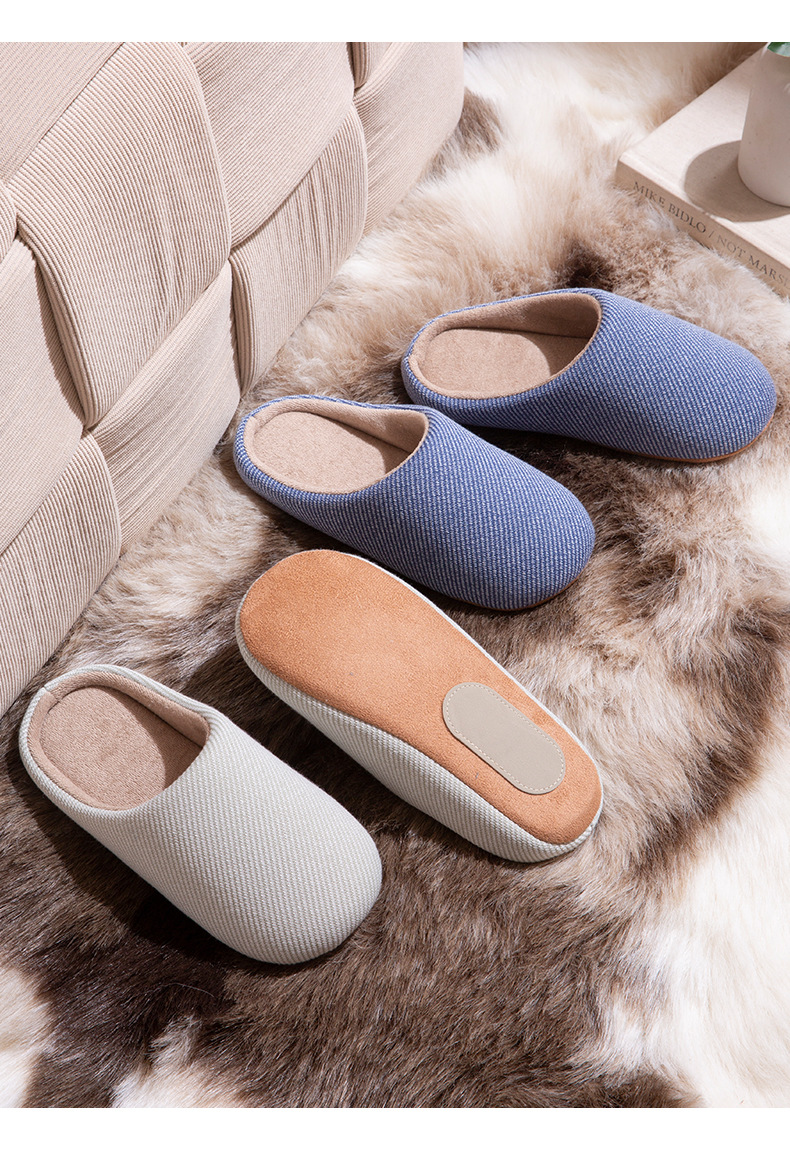雀说 日系条纹拖鞋男女春秋静音保暖室内软底透气家居鞋MT-6502